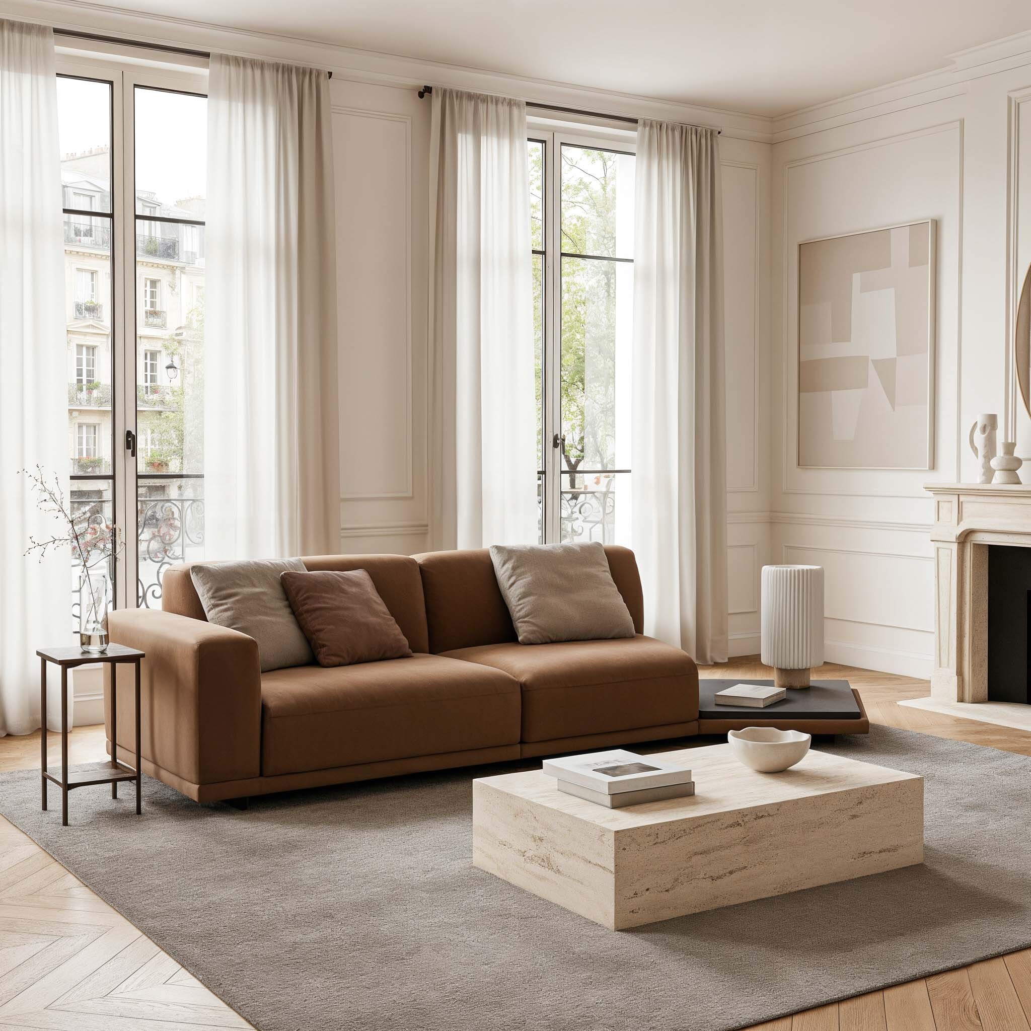 • Модульная система: Собирайте диван любой конфигурации из прямых, угловых секций, модулей-кушеток и лаундж-модулей, которые объединяются