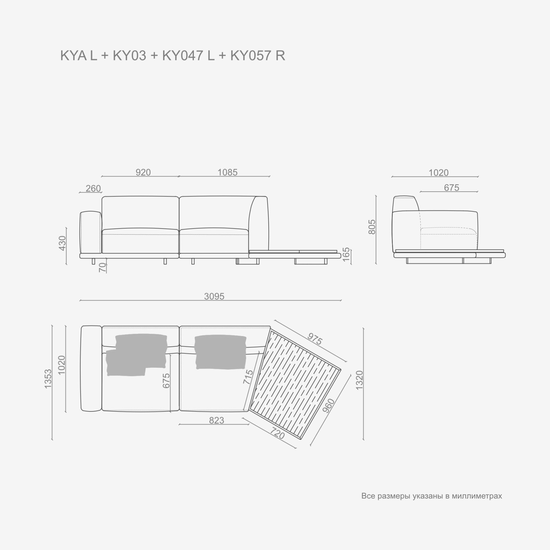 KYOTO — мягкая архитектура вашего дома. Каждый модуль — как иероглиф: самодостаточен и понятен, но в сочетании с другими складывается в выразительную фразу вашего интерьера. Прямые, угловые секции, модули-кушетки и лаундж-модули объединяются в целостную композицию, создавая мягкий и непрерывный рельеф для отдыха.