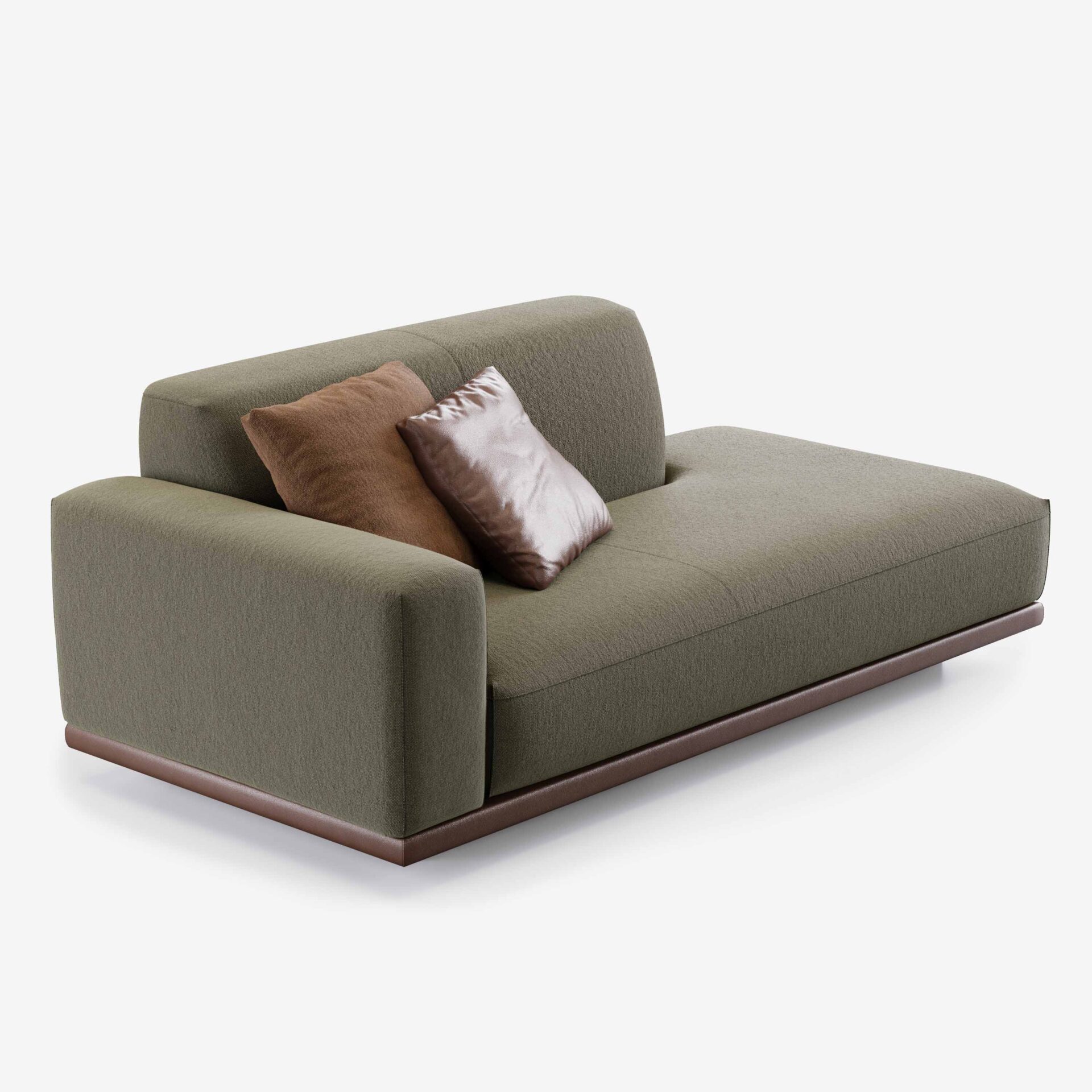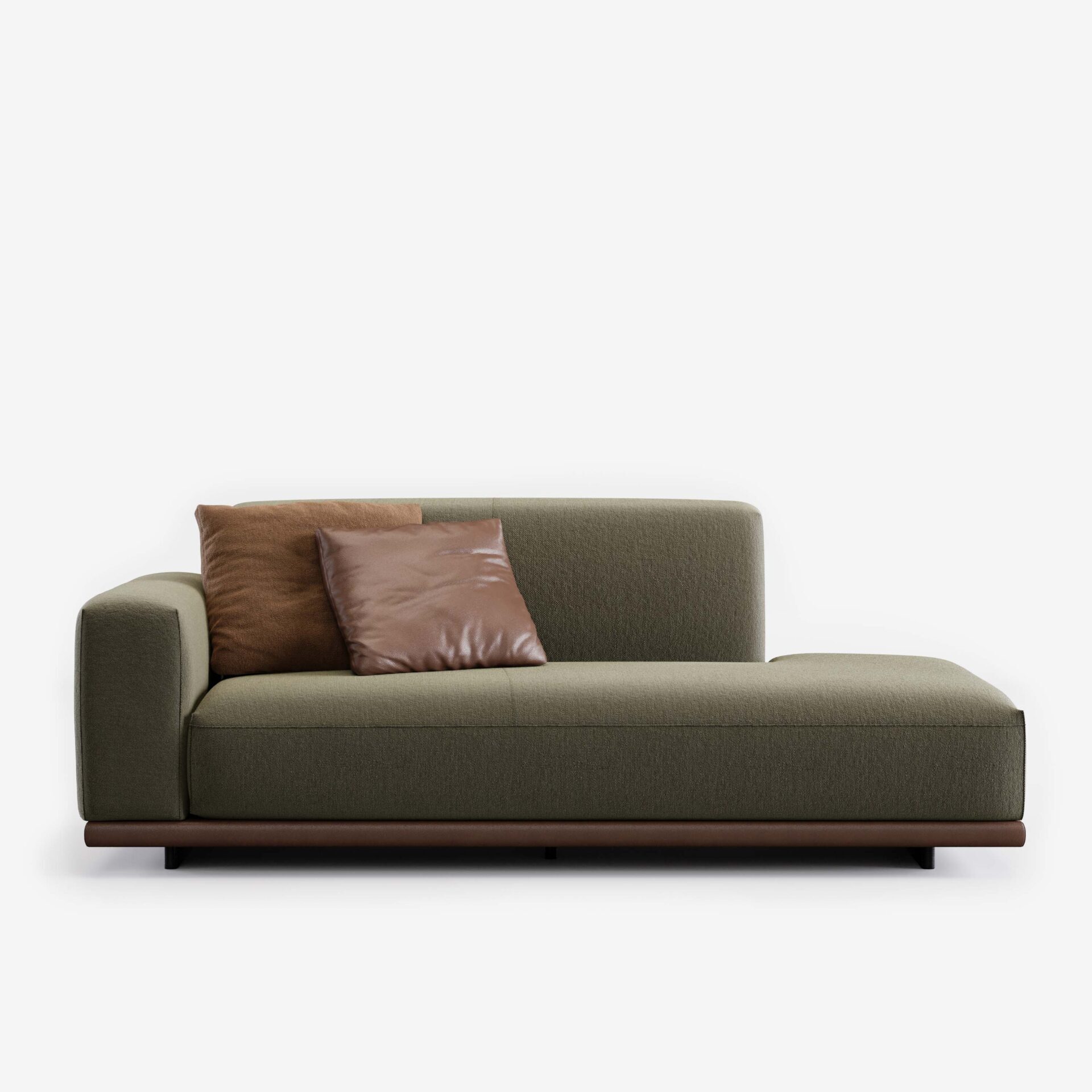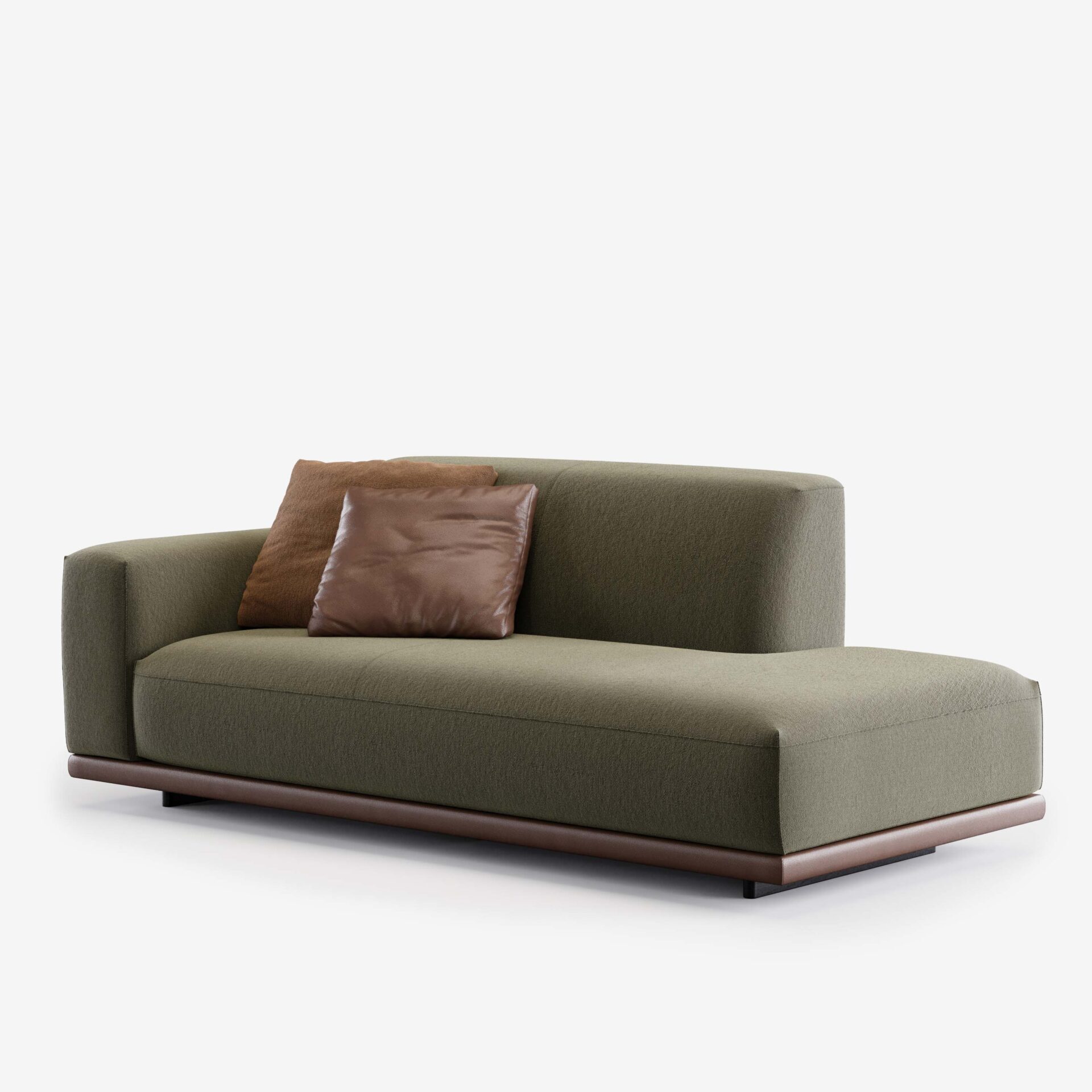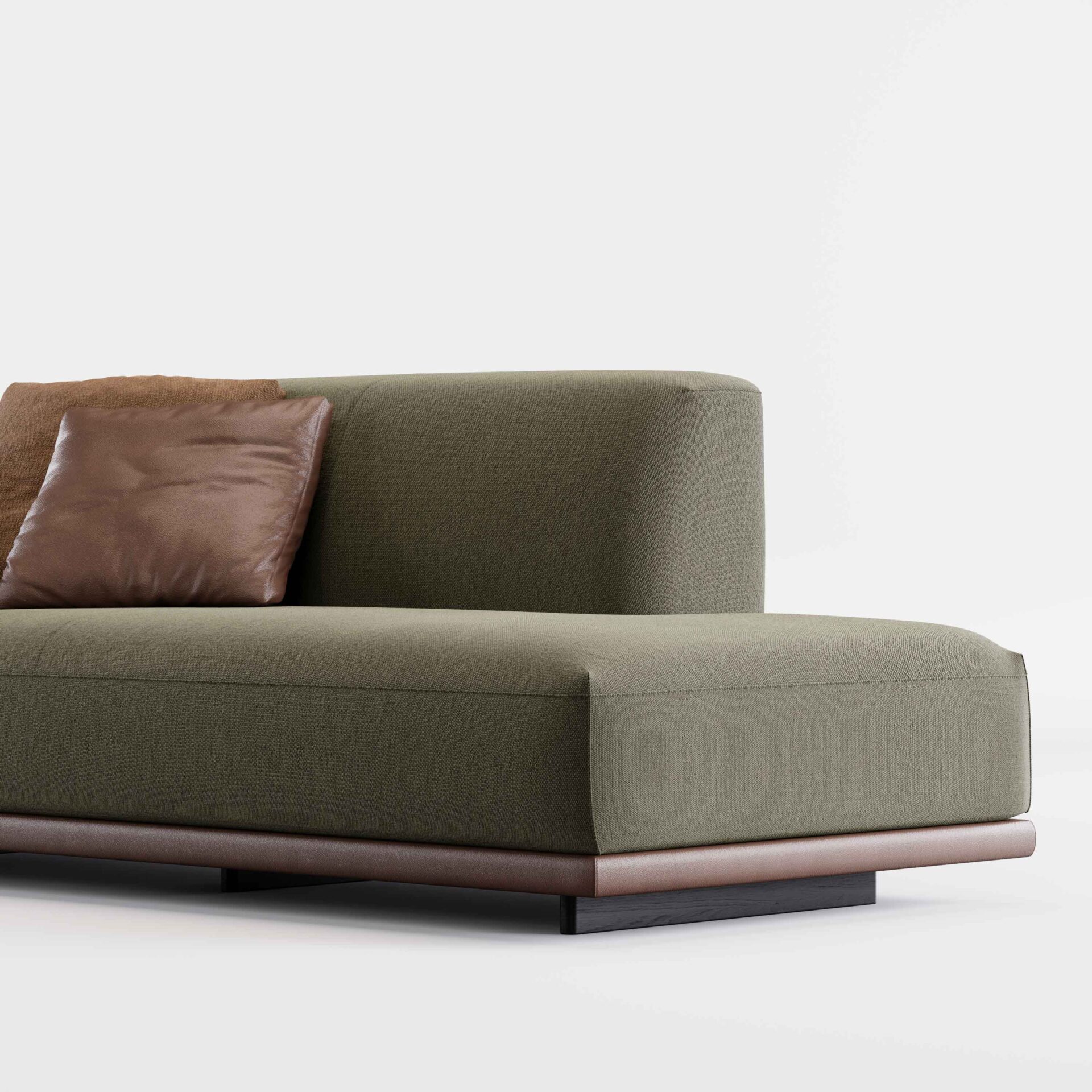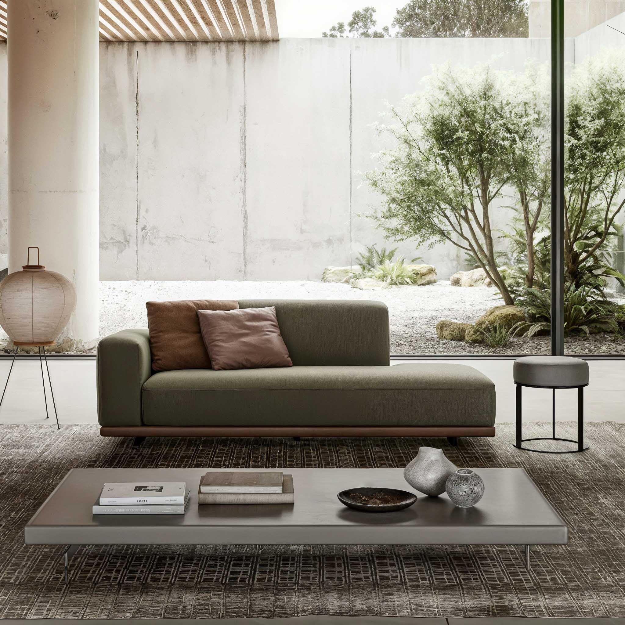 Все модули самостоятельны — их можно комбинировать или использовать по отдельности, создавая именно ту среду, которая вам нужна. Коллекцию дополняют кресла, повторяющие ее пластику, и многофункциональные пуфы-столики с отделкой из шпона дуба. Диван можно персонализировать практичными элементами: подлокотниками, подставками, боковыми столиками и ящиками для хранения, которые легко объединяются с основными модулями.