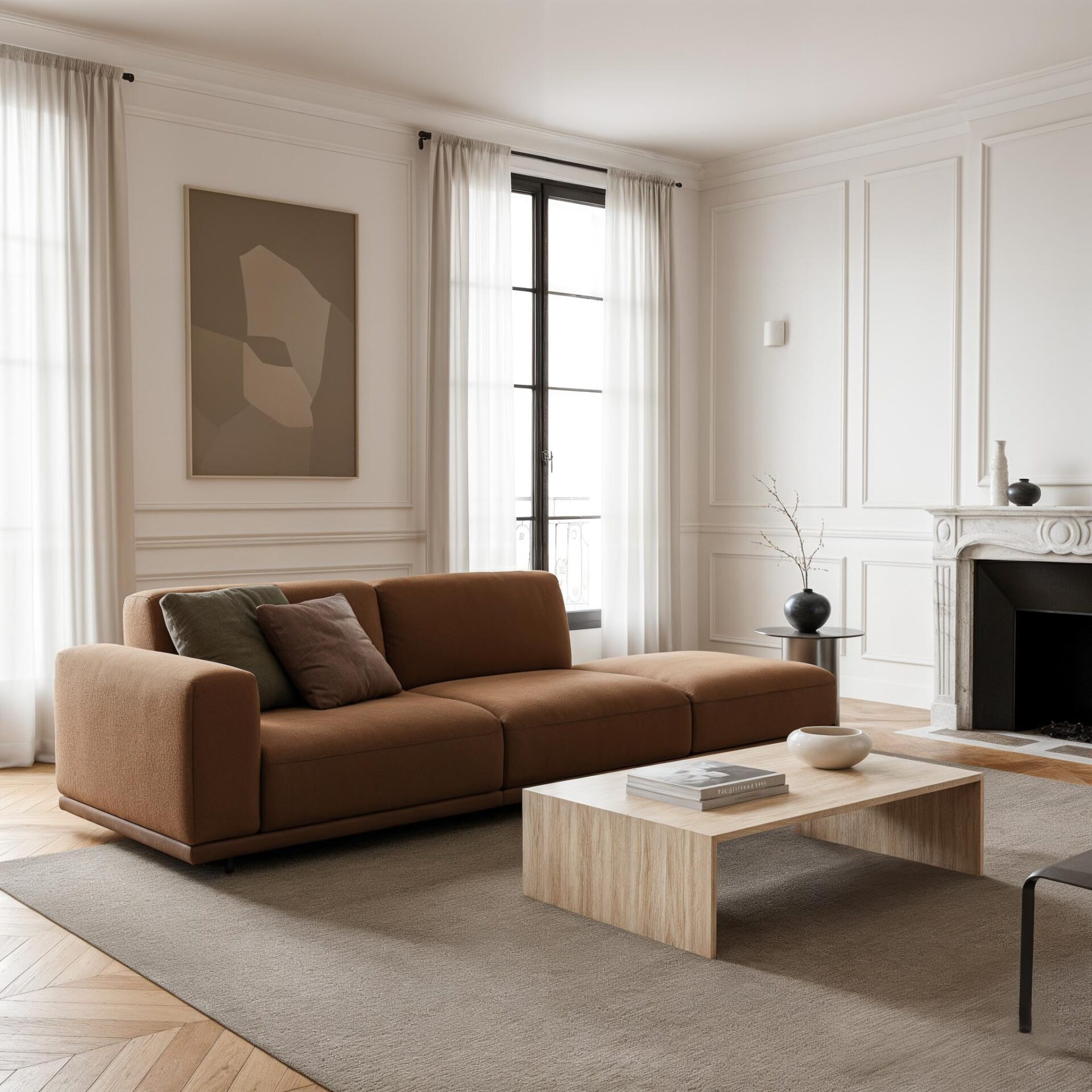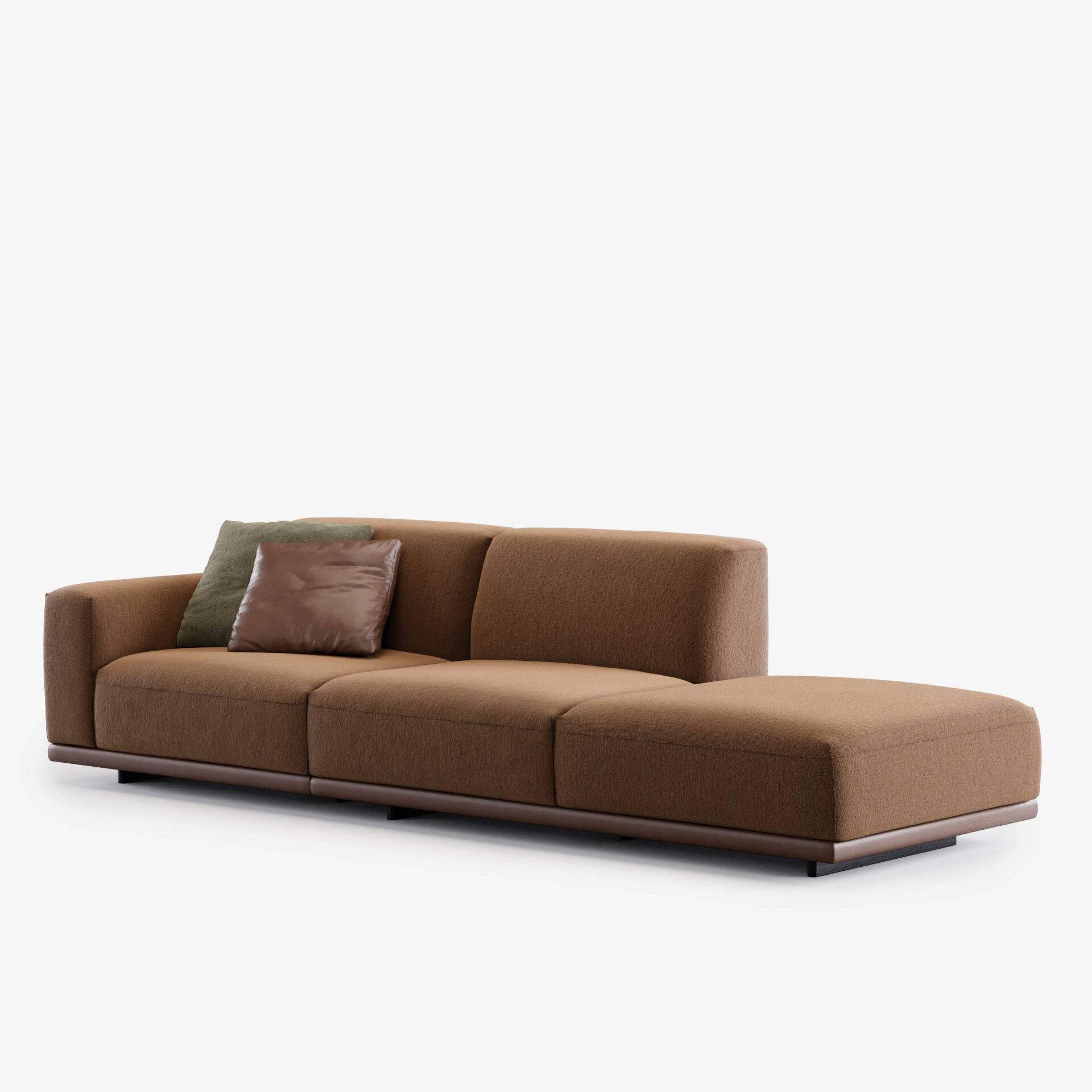 Все модули самостоятельны — их можно комбинировать или использовать по отдельности, создавая именно ту среду, которая вам нужна. Коллекцию дополняют кресла, повторяющие ее пластику, и многофункциональные пуфы-столики с отделкой из шпона дуба. Диван можно персонализировать практичными элементами: подлокотниками, подставками, боковыми столиками и ящиками для хранения, которые легко объединяются с основными модулями.