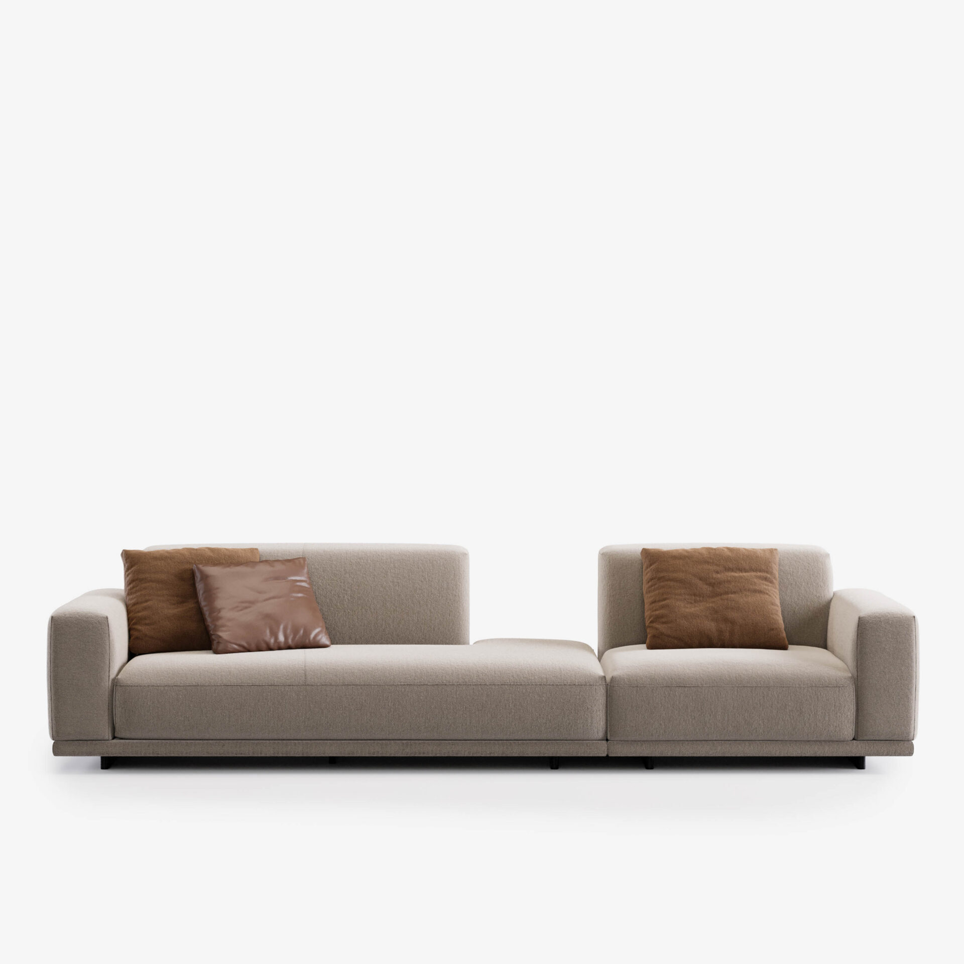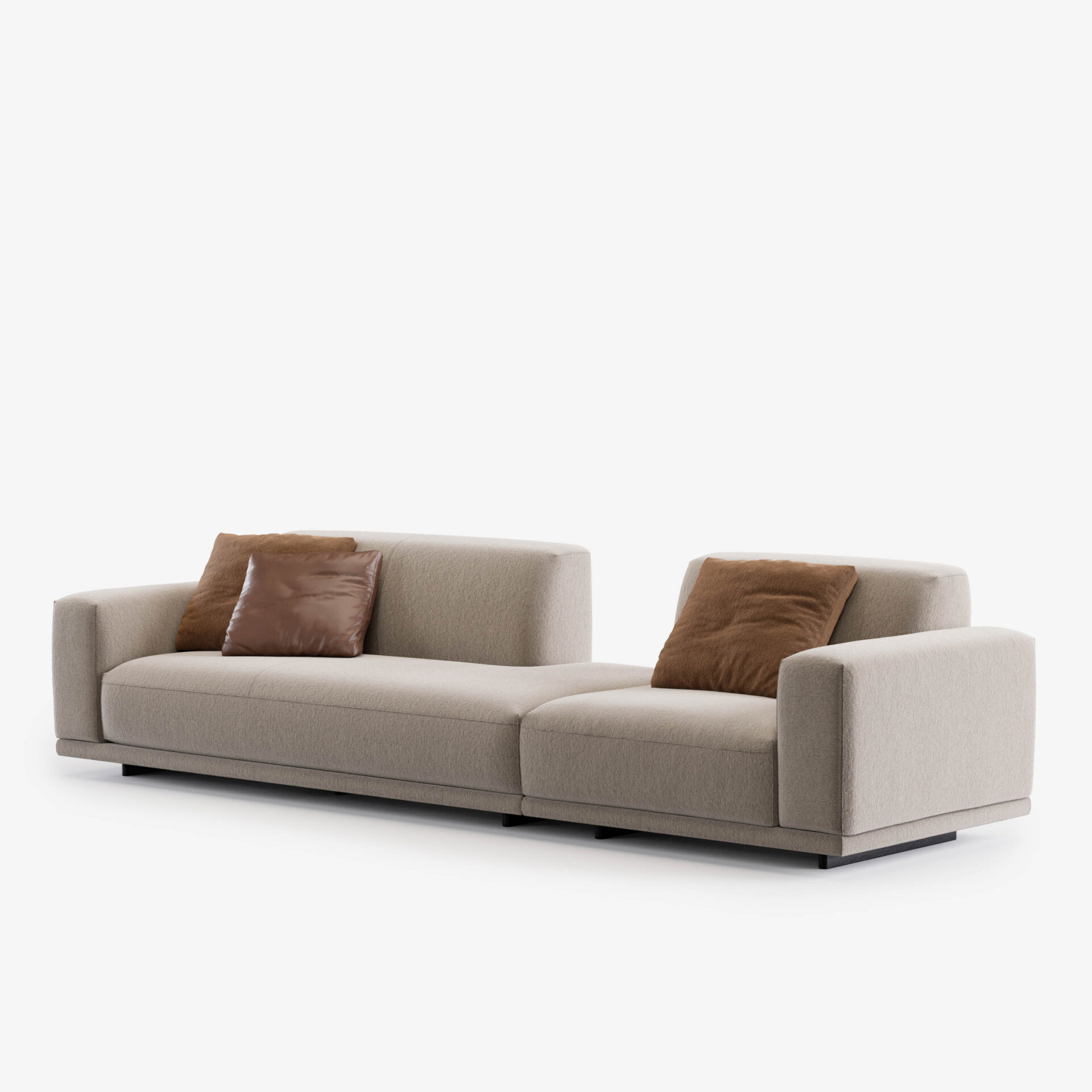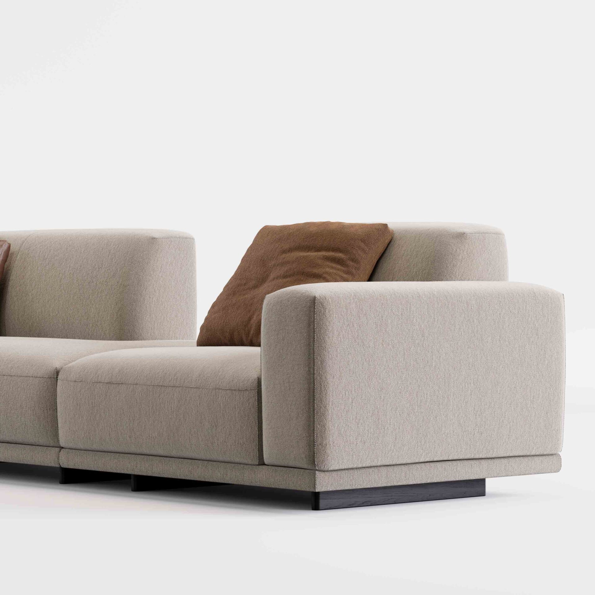 Все модули самостоятельны — их можно комбинировать или использовать по отдельности, создавая именно ту среду, которая вам нужна. Коллекцию дополняют кресла, повторяющие ее пластику, и многофункциональные пуфы-столики с отделкой из шпона дуба. Диван можно персонализировать практичными элементами: подлокотниками, подставками, боковыми столиками и ящиками для хранения, которые легко объединяются с основными модулями.