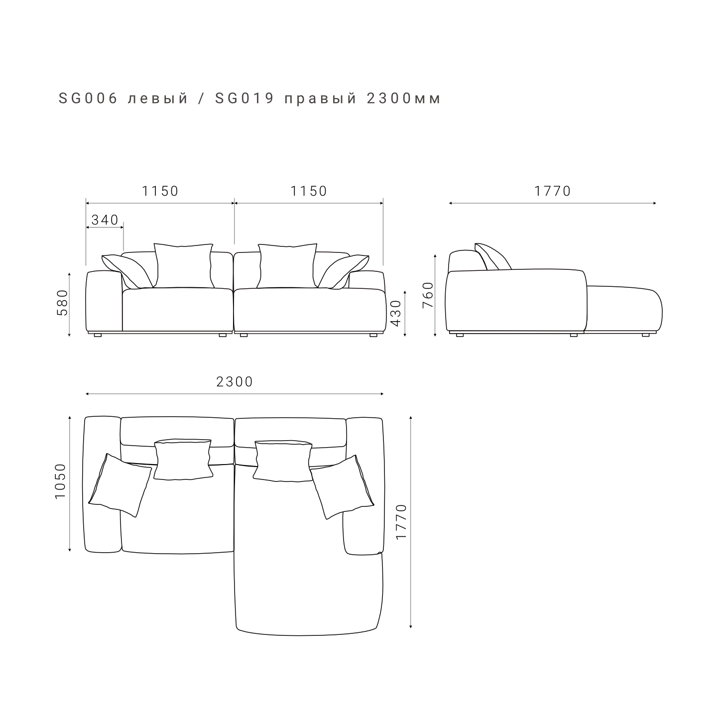 В комплекте с каждым модулем поставляется декоративная подушка в цвет основной ткани дивана.