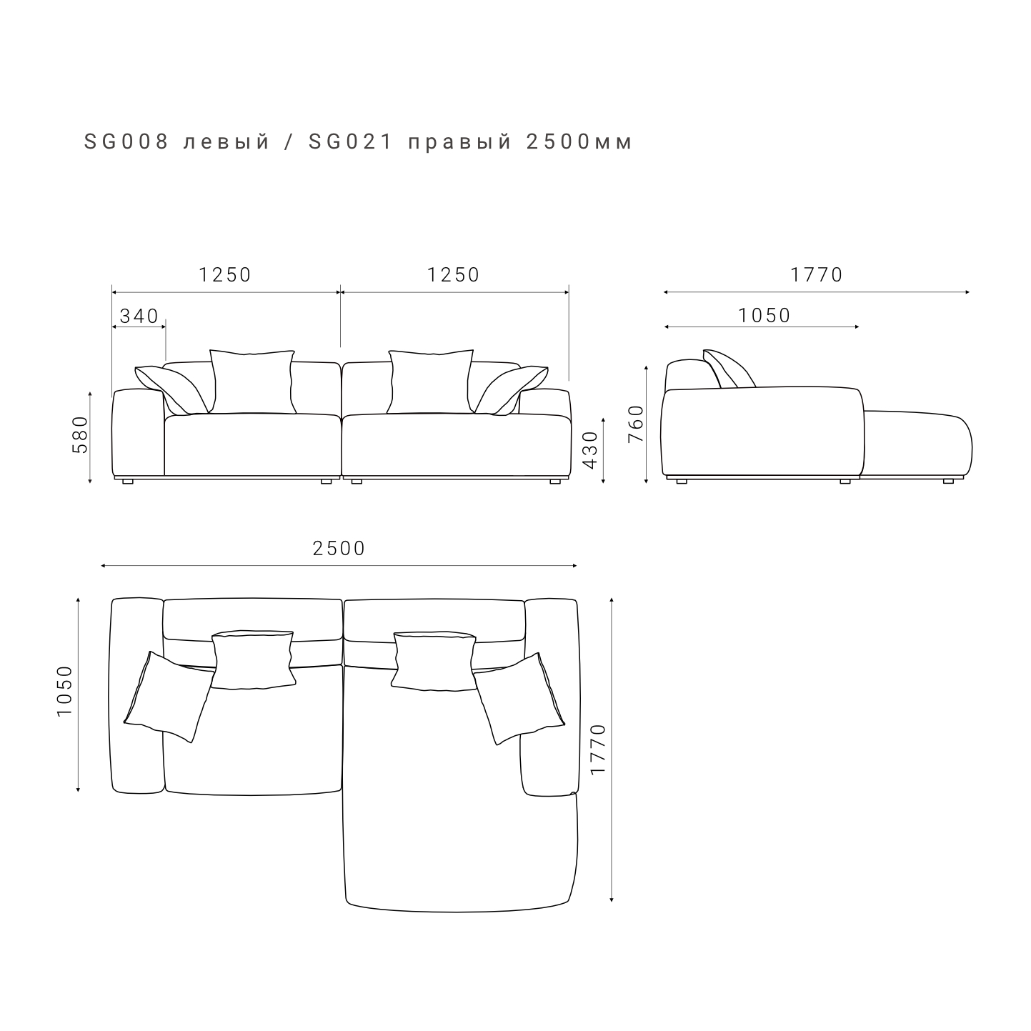 В комплекте с каждым модулем поставляется декоративная подушка в цвет основной ткани дивана.