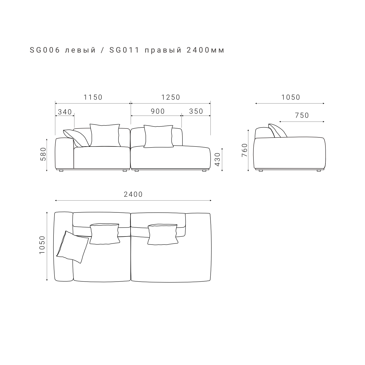 В комплекте с каждым модулем поставляется декоративная подушка в цвет основной ткани дивана.