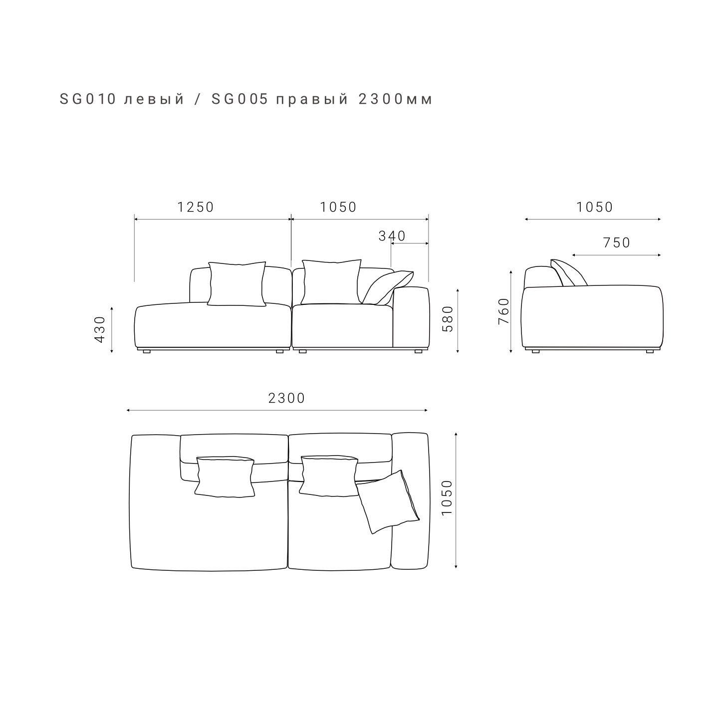 В комплекте с каждым модулем поставляется декоративная подушка в цвет основной ткани дивана.