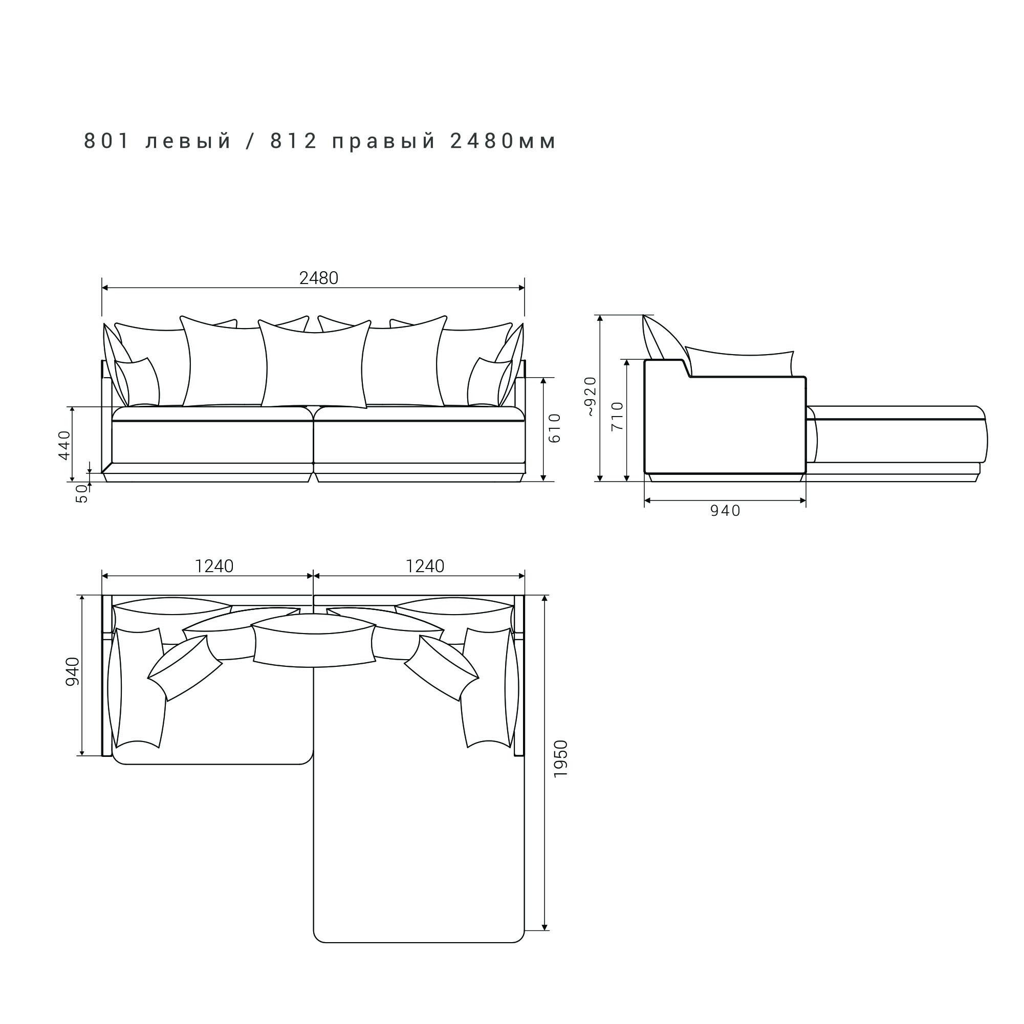 4-х местный нераскладной диван с кушеткой SOHO 801/812