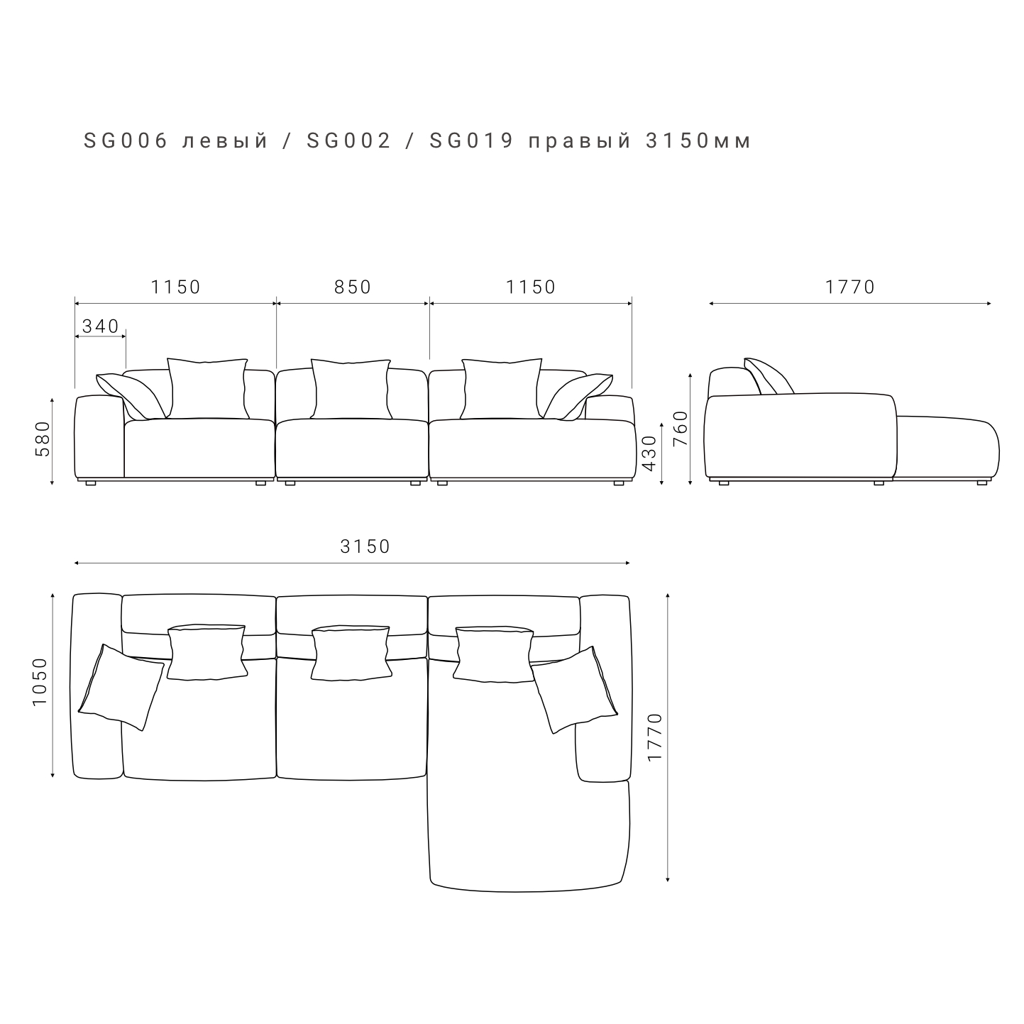 В комплекте с каждым модулем поставляется декоративная подушка в цвет основной ткани дивана.