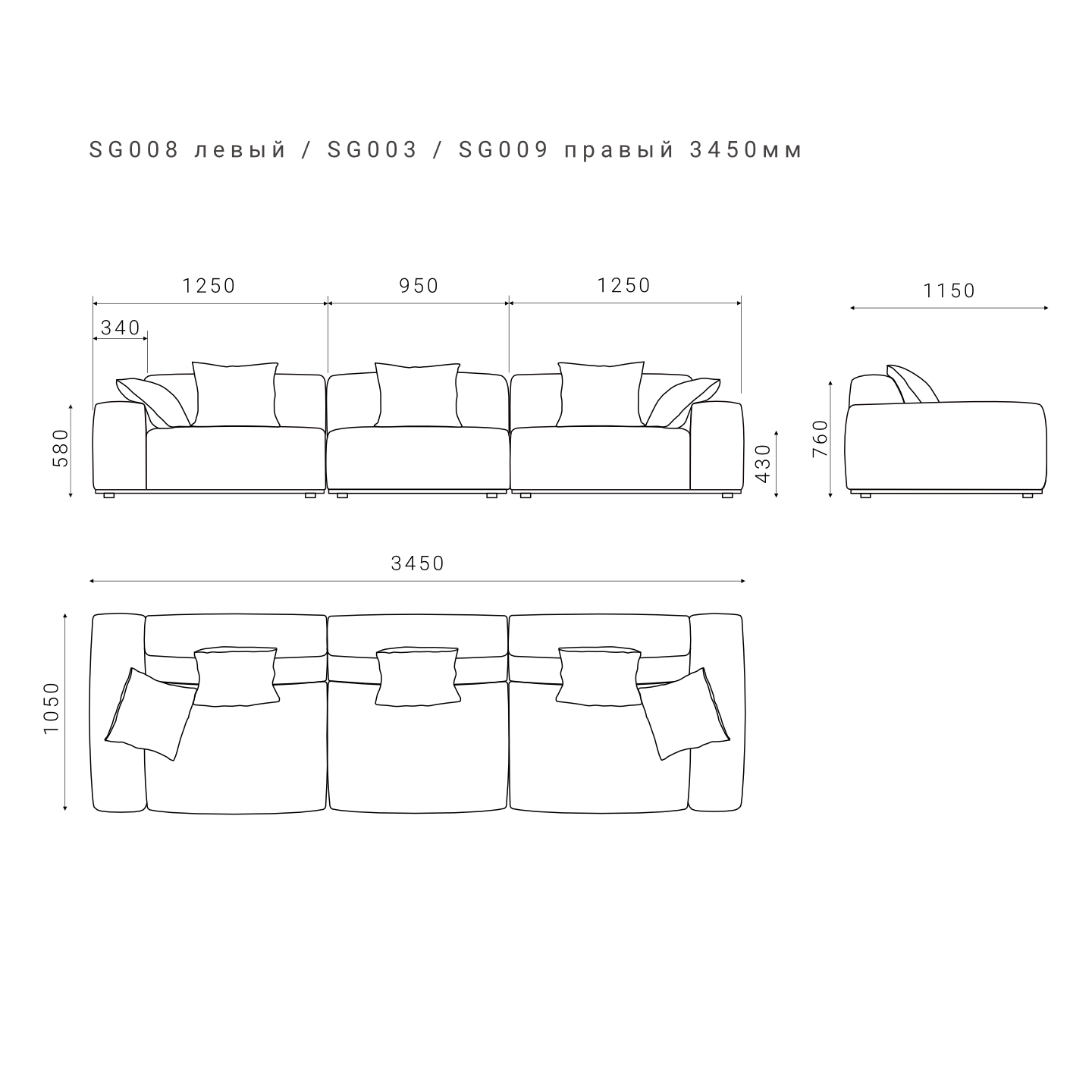 В комплекте с каждым модулем поставляется декоративная подушка в цвет основной ткани дивана.