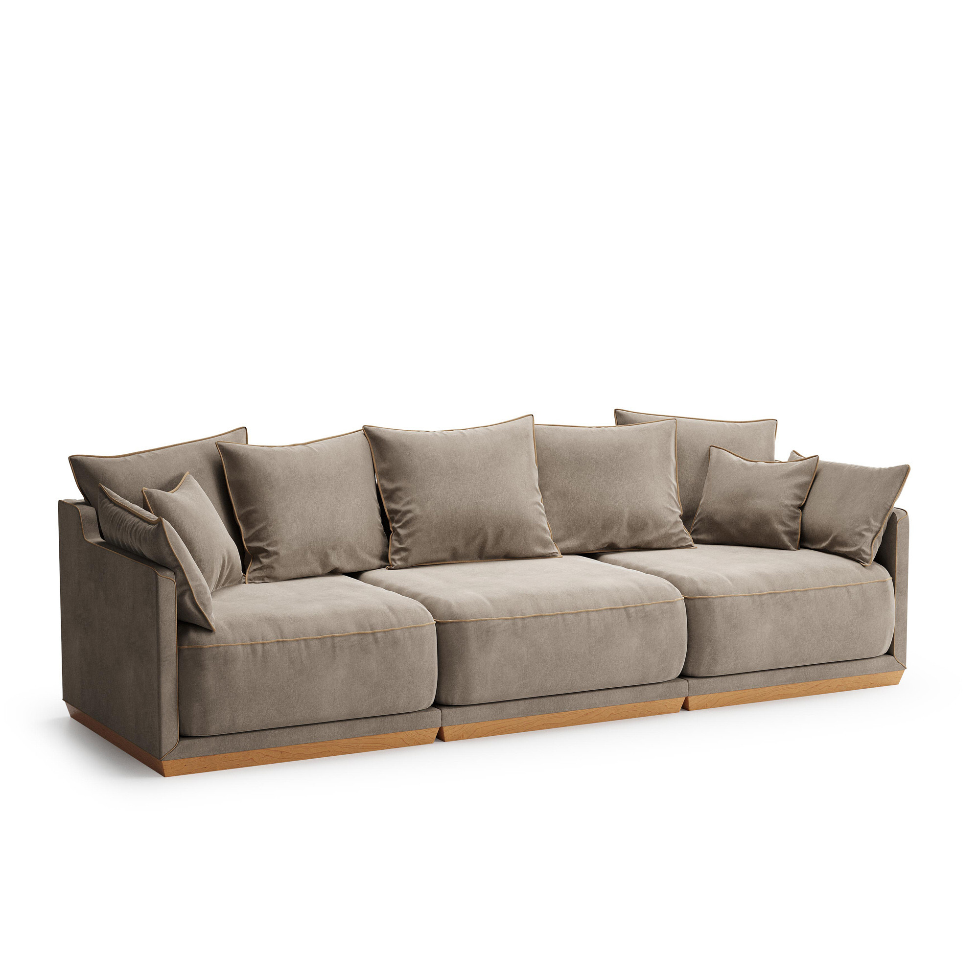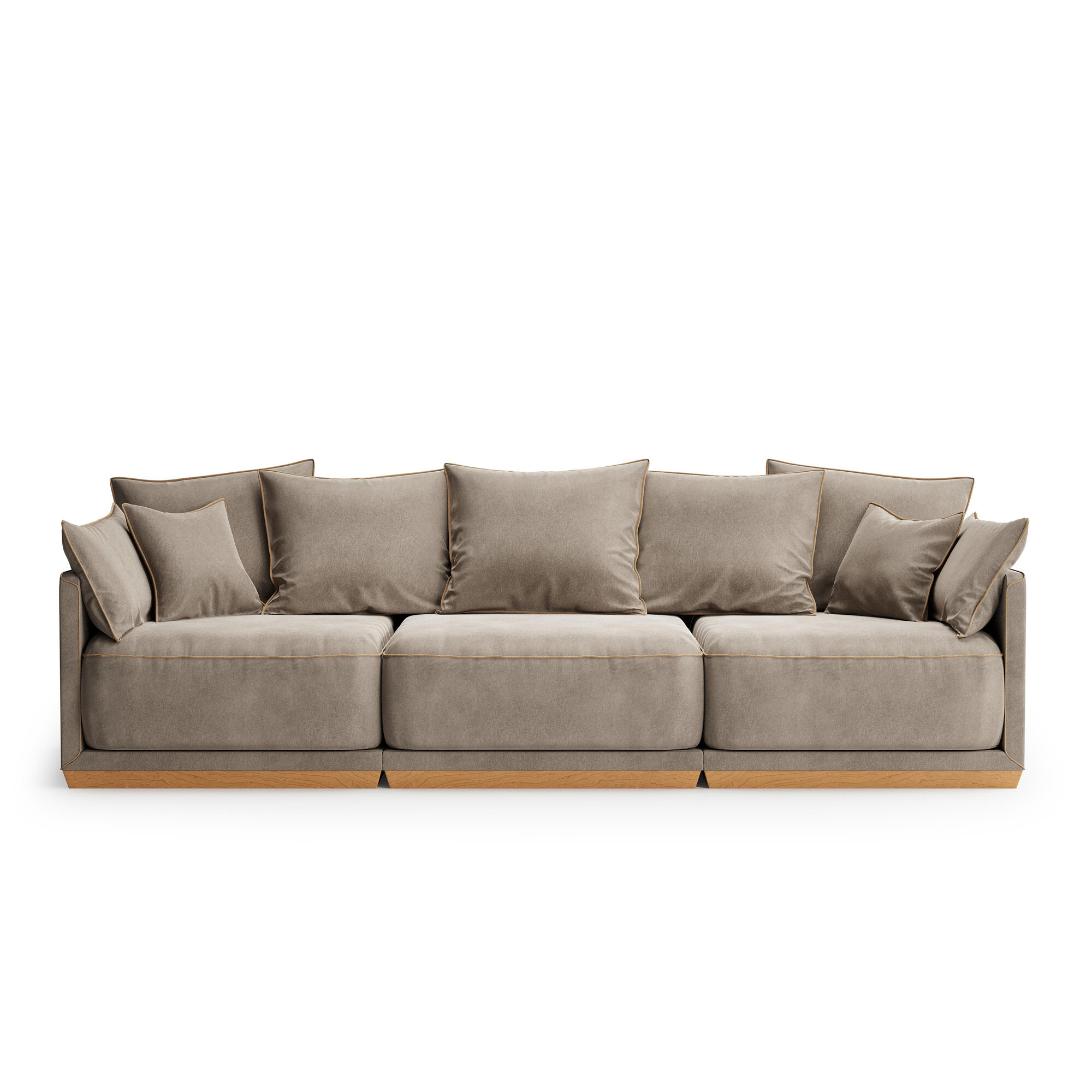 В коллекции модульных диванов SOHO гармонично сочетаются мягкие пуховые подушки, удобные и глубокие нижние подушки, основательный цоколь и прочный каркас из массива березы. Изюминкой коллекции являются декоративные канты, цвет которых можно выбрать наравне с основной тканью диванов из палитры The IDEA. Плавные изгибы боковых линий каркаса и декоративные подушки дополняют образ и без того комфортных диванов для ценителей стиля и респектабельности. Особенности: Большое количество и особенная мягкость подушек этого трехместного дивана обеспечивают эталонный комфорт и поддержку; Элегантные канты по периметру каркаса дивана и на каждой декоративной подушке; Простая сборка – секции соединяются винтами в скрытых местах крепления; Диван может быть установлен в центре комнаты или открытого пространства, так как не имеет обратной стороны; Ткань легко чистится в домашних условиях