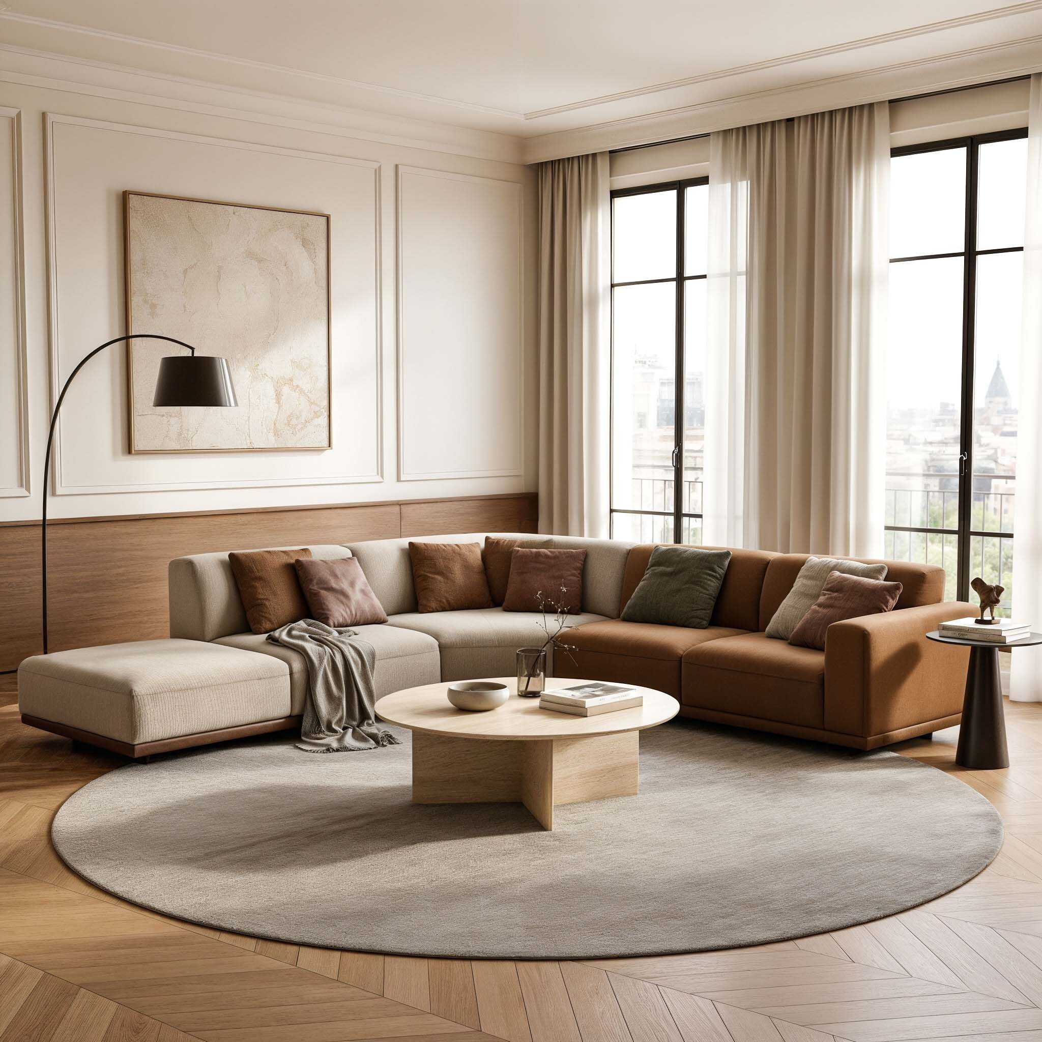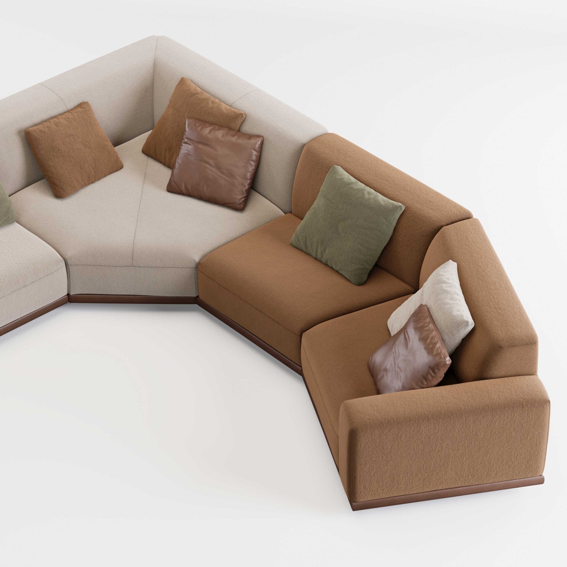 • Модульная система: Собирайте диван любой конфигурации из прямых, угловых секций, модулей-кушеток и лаундж-модулей, которые объединяются
