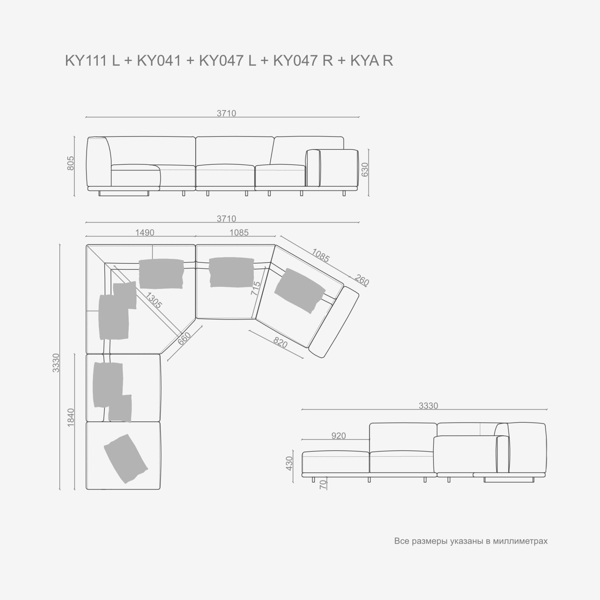 KYOTO — мягкая архитектура вашего дома. Каждый модуль — как иероглиф: самодостаточен и понятен, но в сочетании с другими складывается в выразительную фразу вашего интерьера. Прямые, угловые секции, модули-кушетки и лаундж-модули объединяются в целостную композицию, создавая мягкий и непрерывный рельеф для отдыха.