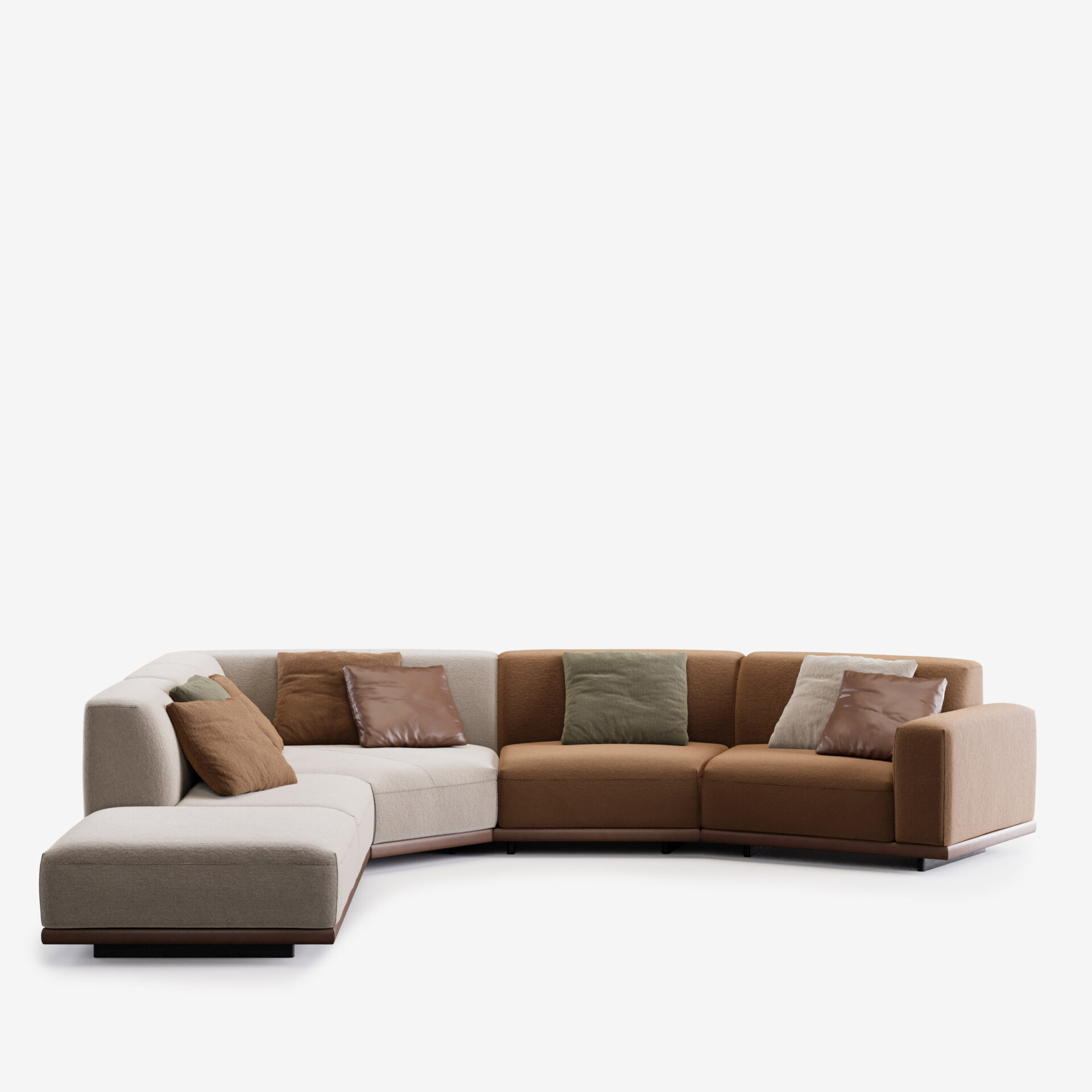 Все модули самостоятельны — их можно комбинировать или использовать по отдельности, создавая именно ту среду, которая вам нужна. Коллекцию дополняют кресла, повторяющие ее пластику, и многофункциональные пуфы-столики с отделкой из шпона дуба. Диван можно персонализировать практичными элементами: подлокотниками, подставками, боковыми столиками и ящиками для хранения, которые легко объединяются с основными модулями.