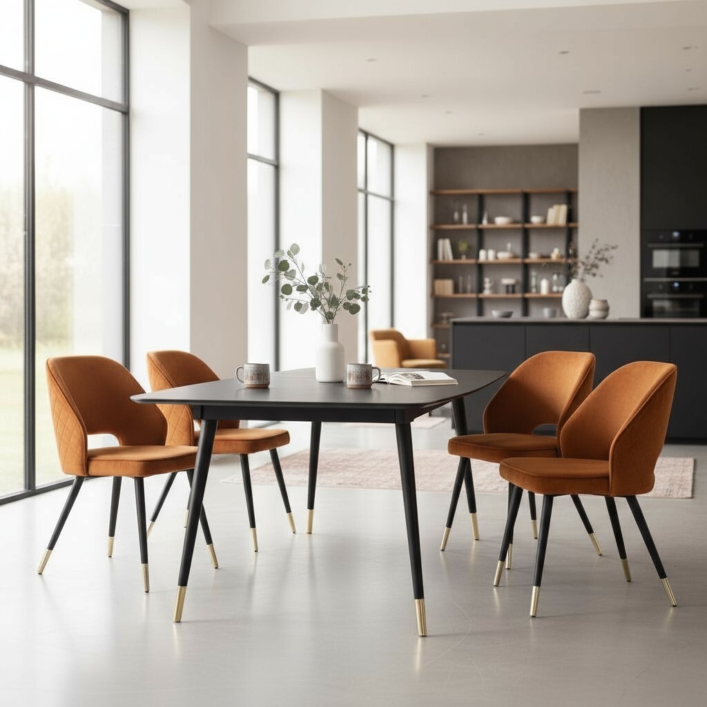 Крышка: 8 мм закаленное стекло, 3 мм керамика, выдвижные боковые части - керамика; ножки - металл, декоративные наконечники - полированная сталь в цвете розового золота