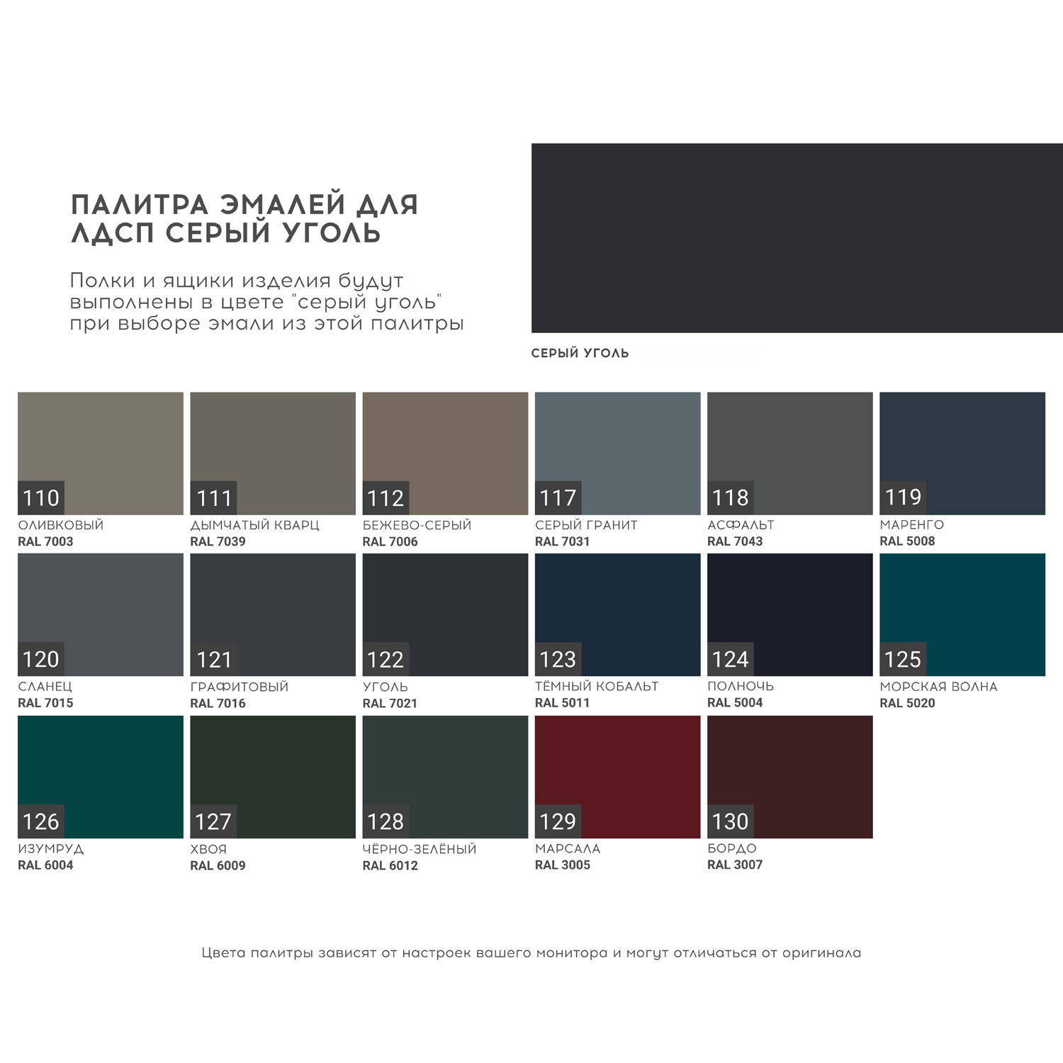 Внутренне наполнение нижней секции из прочного ЛДСП в 2–х оттенках: серый уголь, светло-серый согласно палитре эмалей;