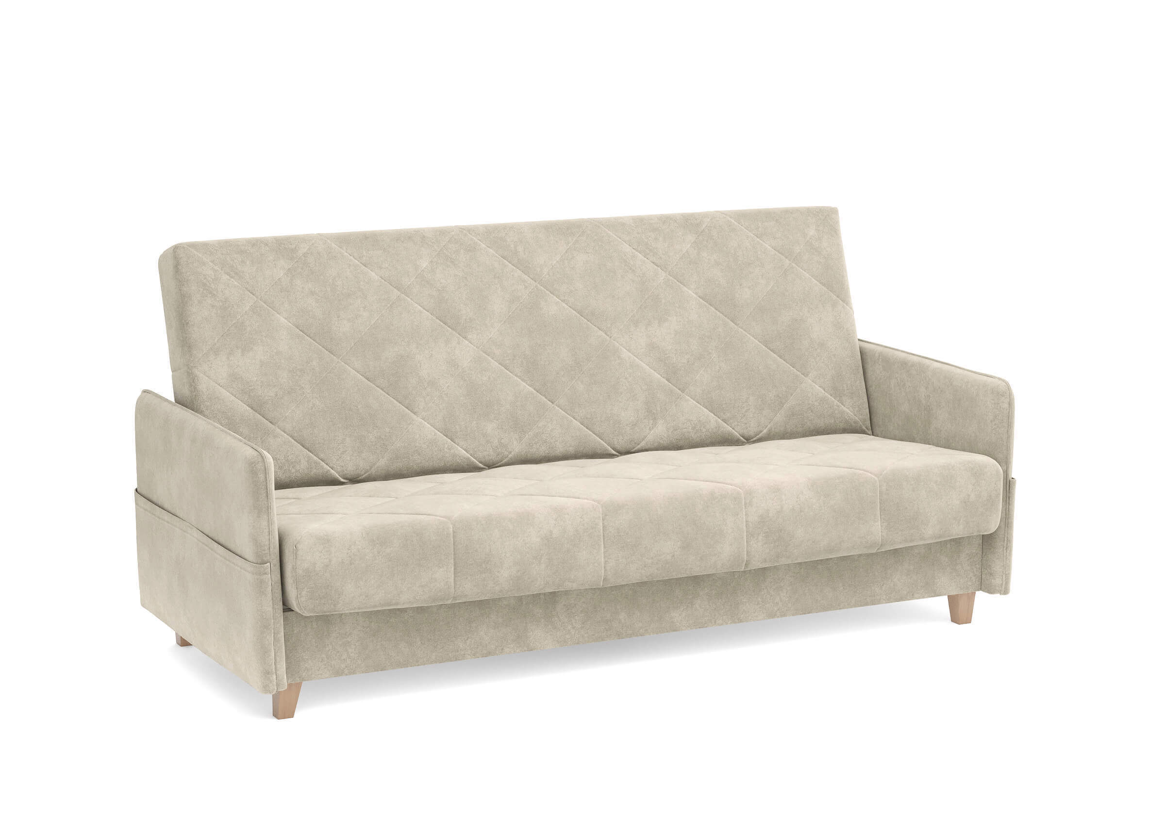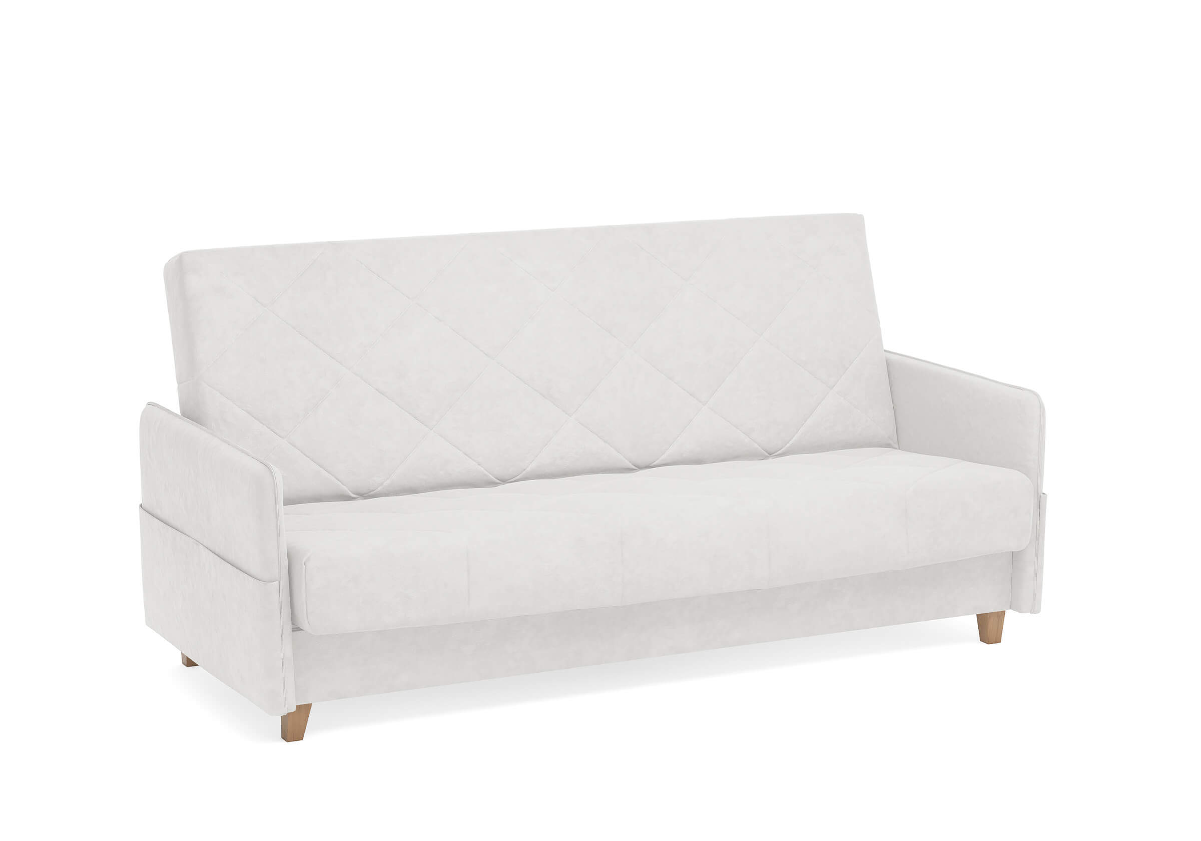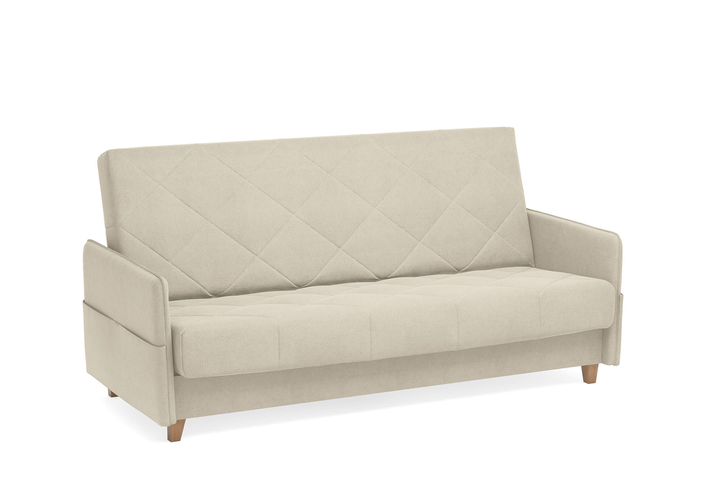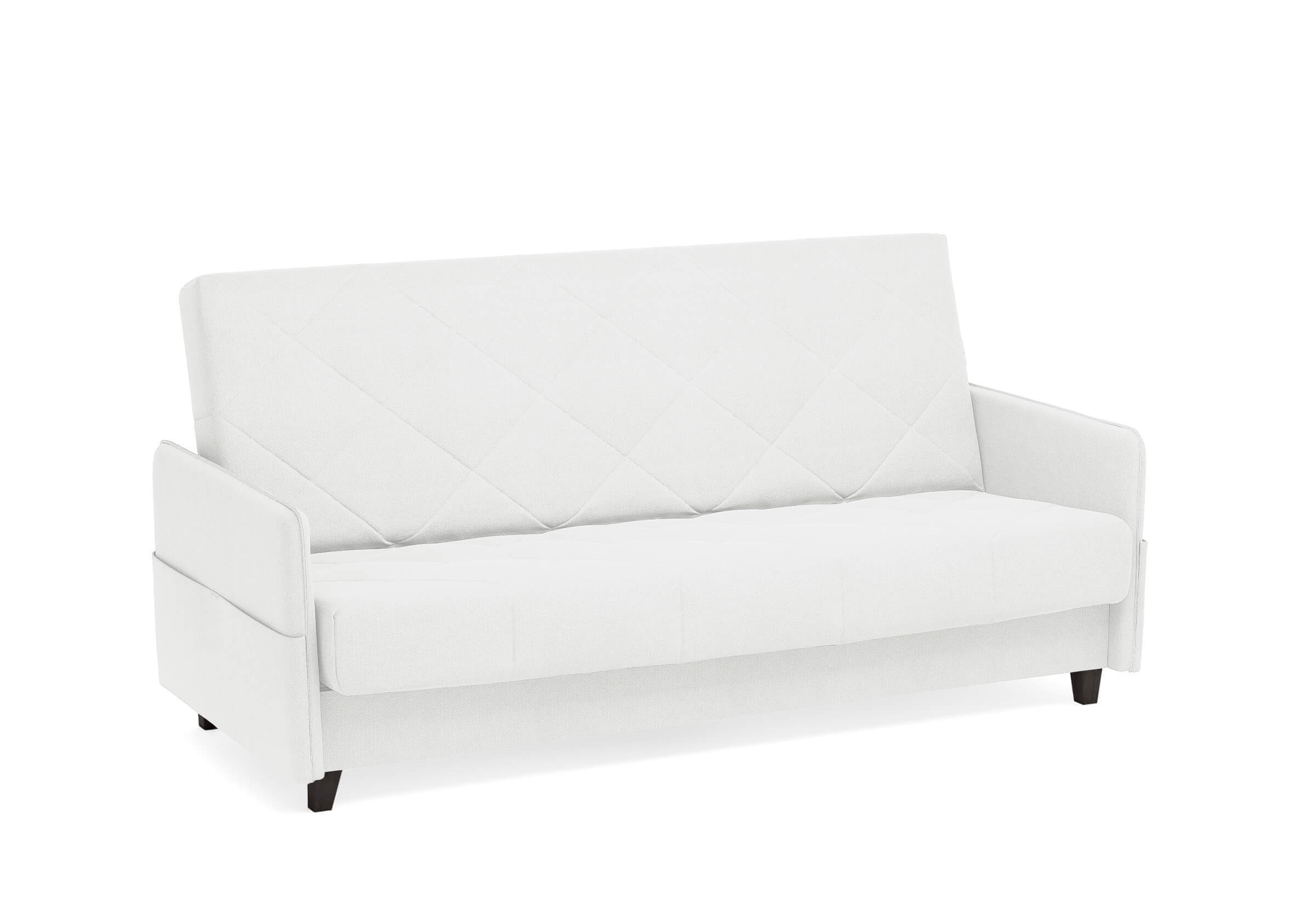 Диван для сна в скандинавском стиле с механизмом трансформации «клик-кляк», тонкими подлокотниками и коробом для хранения. Основание дивана металлическое, с ламелями. Матрас анатомический с независимым пружинным блоком. Благодаря съемному чехлу с объемной стежкой в форме ромбов, диван органично впишется в современные интерьеры в скандинавском стиле и стиле минимализм. Благодаря тонким подлокотникам у дивана минимальные габариты как в сложенном, так и разложенном виде. Широкие карманы-органайзеры на подлокотниках позволят хранить в доступе необходимые вещи. Forest имеет 3 положения трансформации: диван, кровать, релакс. Диван оборудован вместительным коробом для хранения. Опоры деревянные, натурального цвета, просвет над полом способствует легкой уборке под диваном, в том числе роботом-пылесосом.Размер спального места: 140-200