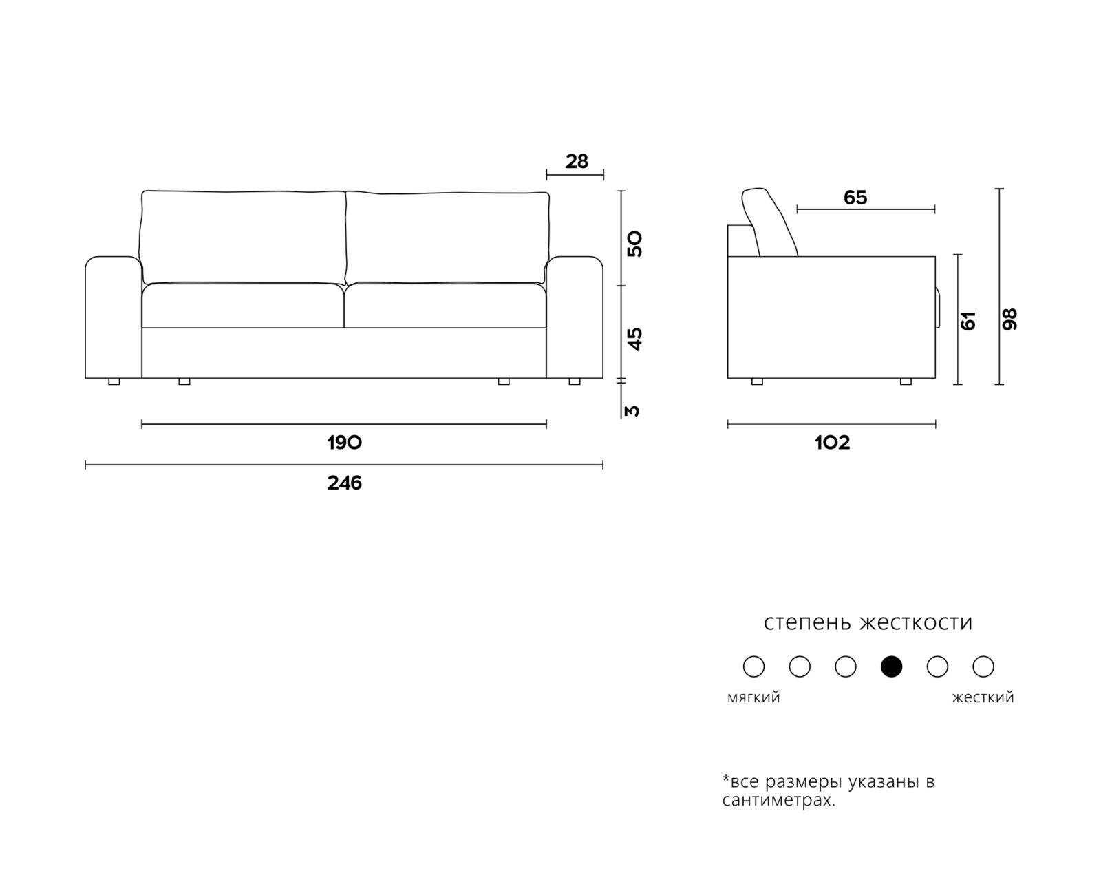 3-х местный нераскладной диван LEGRAN с глубокими сиденьями, увеличенными и объёмными приспинными подушками. Особую изюминку модели придаёт закруглённая форма мягких и широких подлокотников, на которые можно с комфортом прилечь. Все края и соединительные элементы прошиты декоративной двойной строчкой. Диван оснащён скрытыми ножками.
