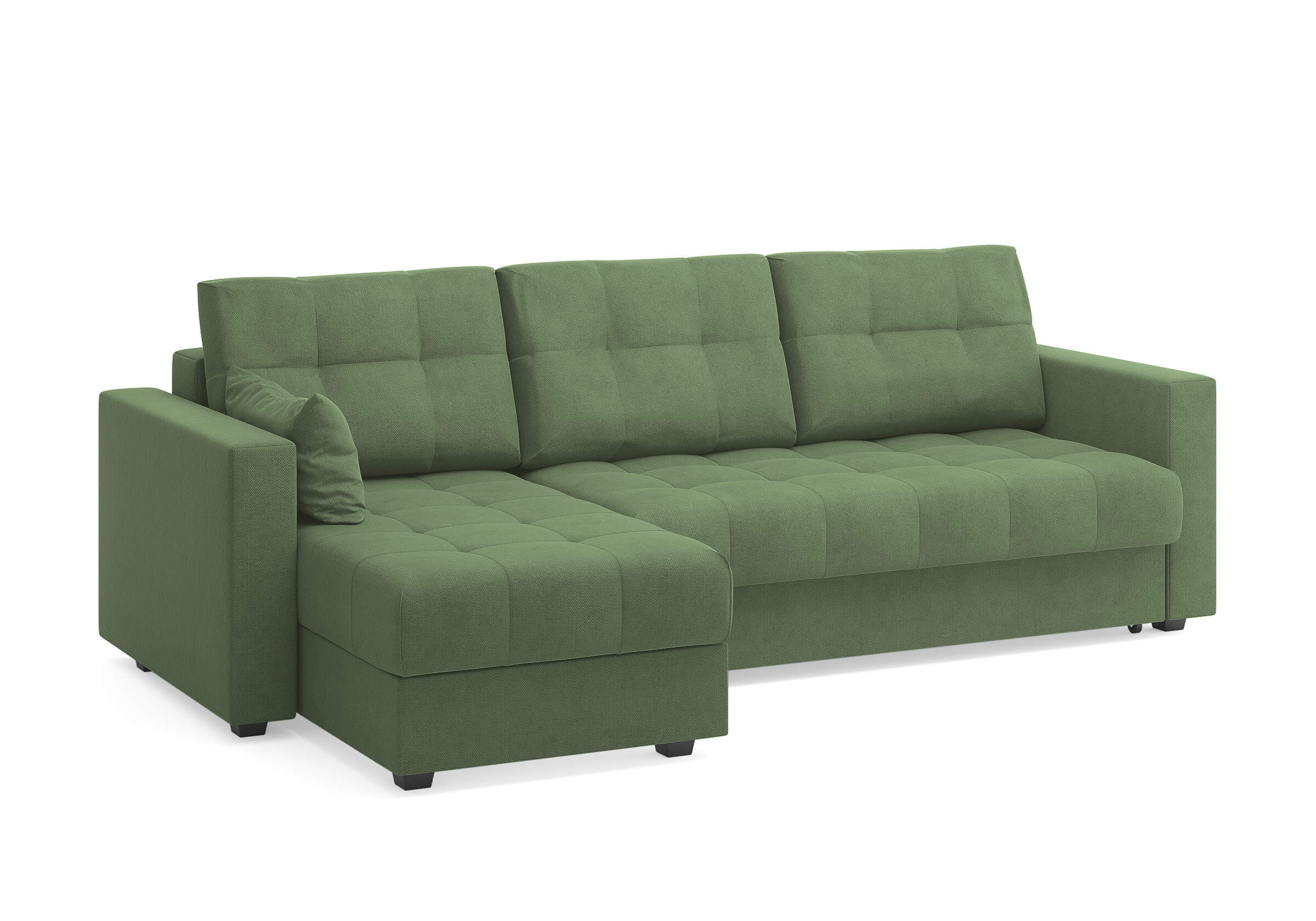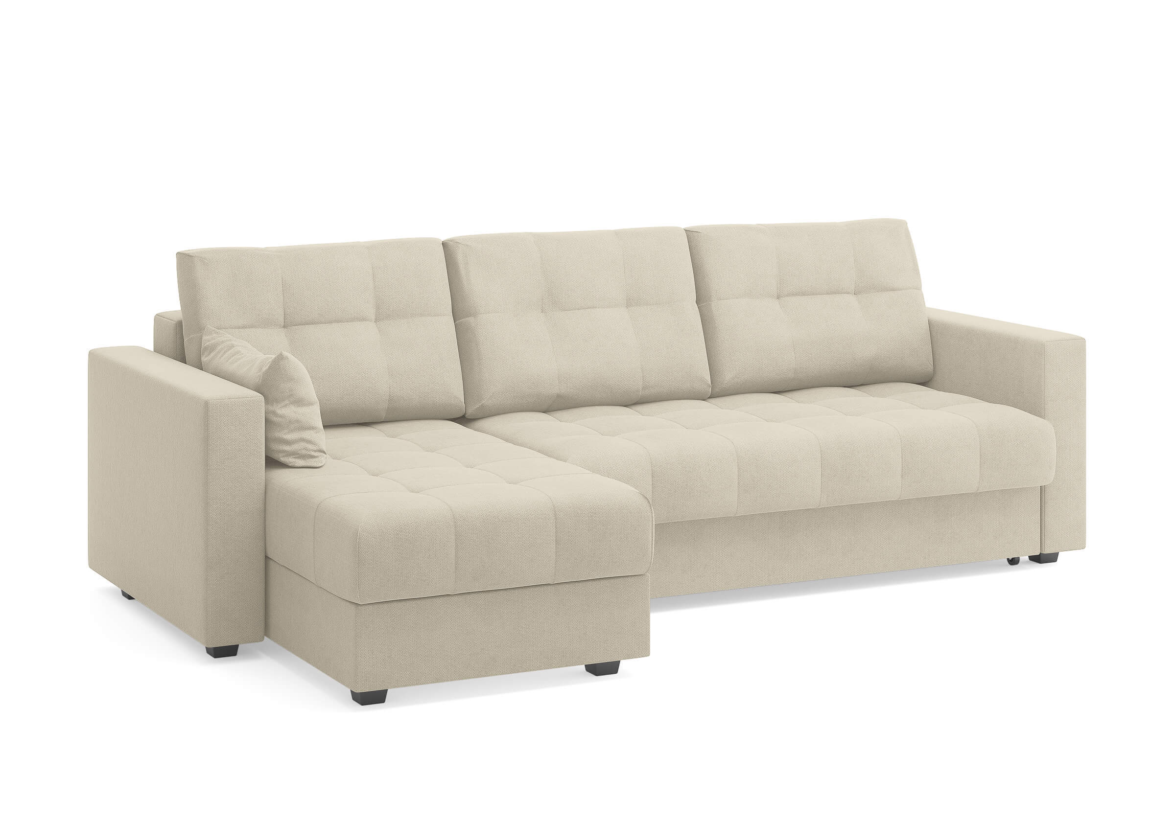Современный и комфортный диван с механизмом трансформации "еврокнижка". Этот диван станет отличным выбором для дома, сочетая в себе стиль, функциональность и удобство. Диван имеет угловую конфигурацию, что позволяет ему идеально вписаться в любой интерьер. Угловая секция, или оттоманка, устанавливается как справа, так и слева, в зависимости от предпочтений и особенностей планировки комнаты, делая диван универсальным решением для любого пространства. Модель оснащена вместительным бельевым коробом, что позволяет эффективно использовать пространство и хранить постельные принадлежности или другие вещи. Матрас средней жесткости обеспечивает оптимальную поддержку и комфорт во время сна, что важно для ежедневного использования. Задняя спинка дивана защищает от прикосновения со стеной, предотвращая возможные повреждения и загрязнения. В комплект дивана входит декоративная подушка размером 30x50 см, которая добавляет уют и завершает образ интерьера.Размер спального места: 150-225