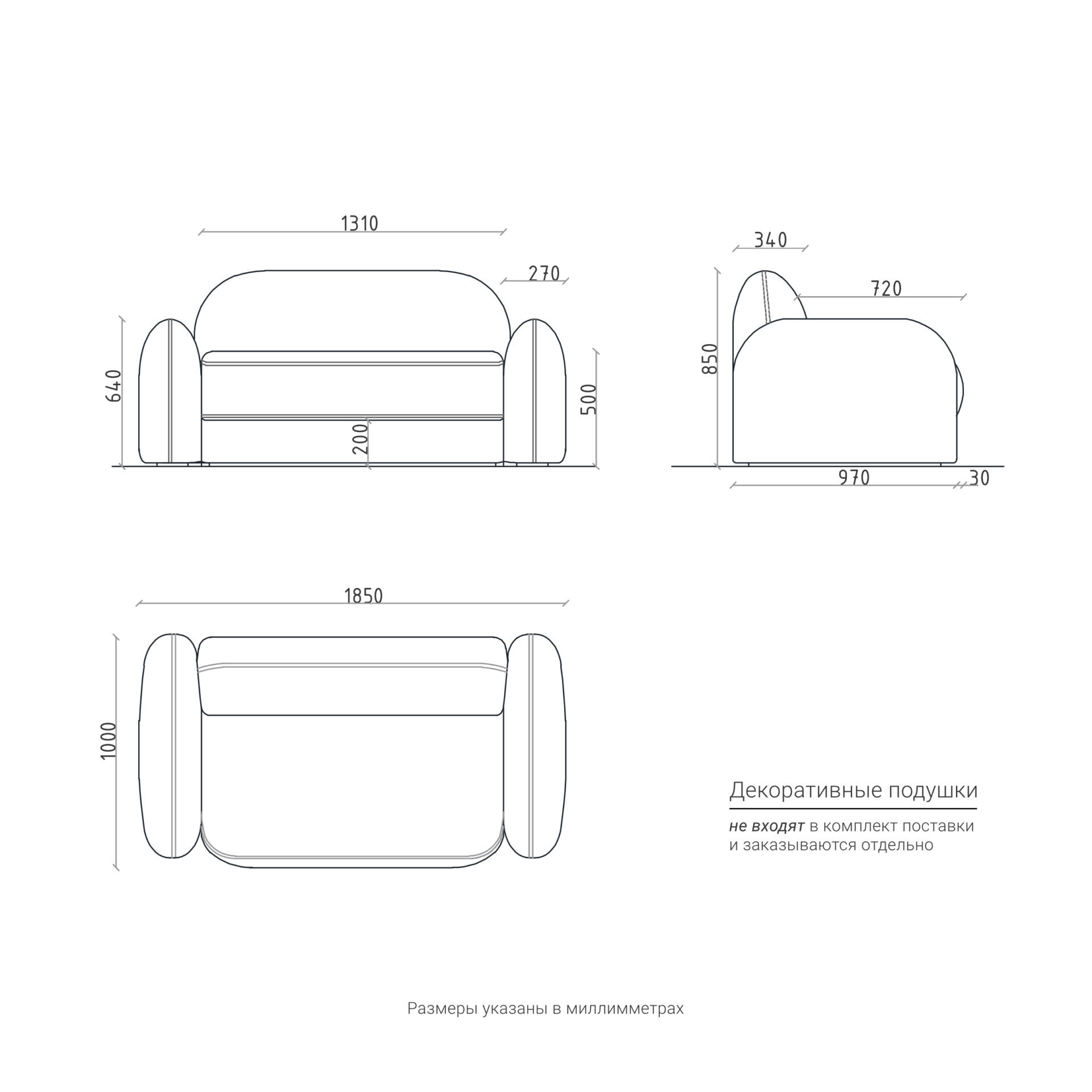 Декоративные подушки не входят в комплект поставки и заказываются отдельно.