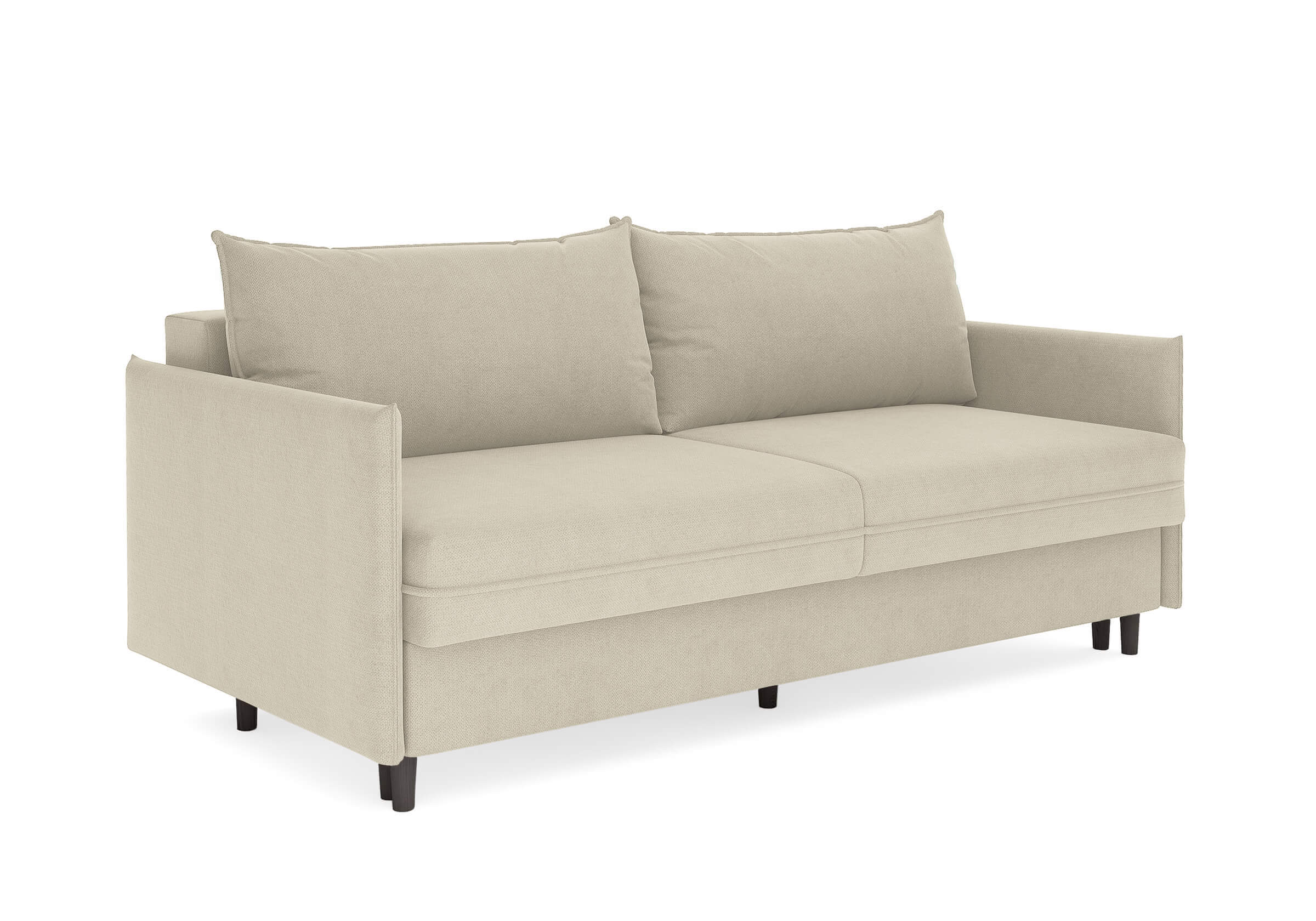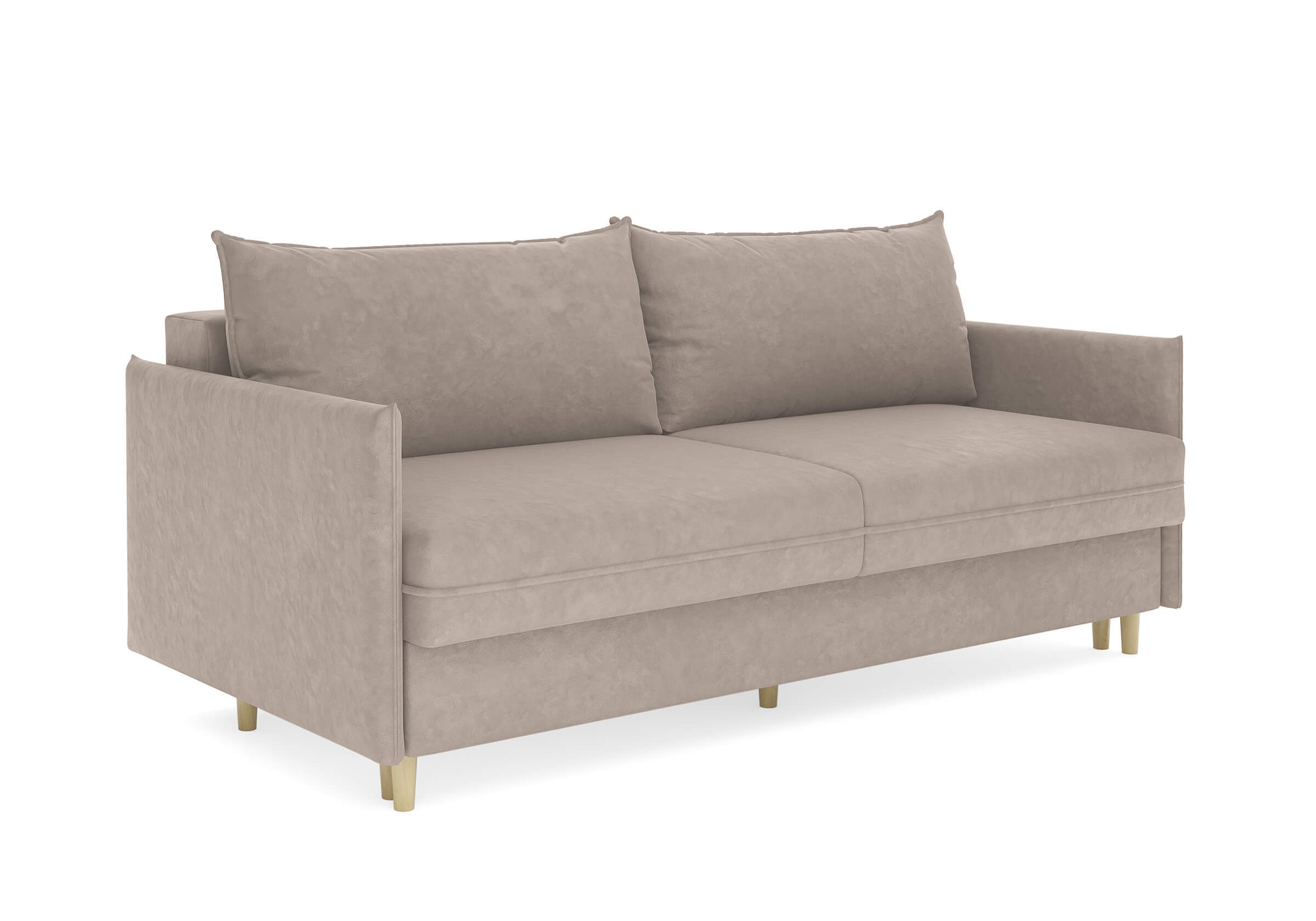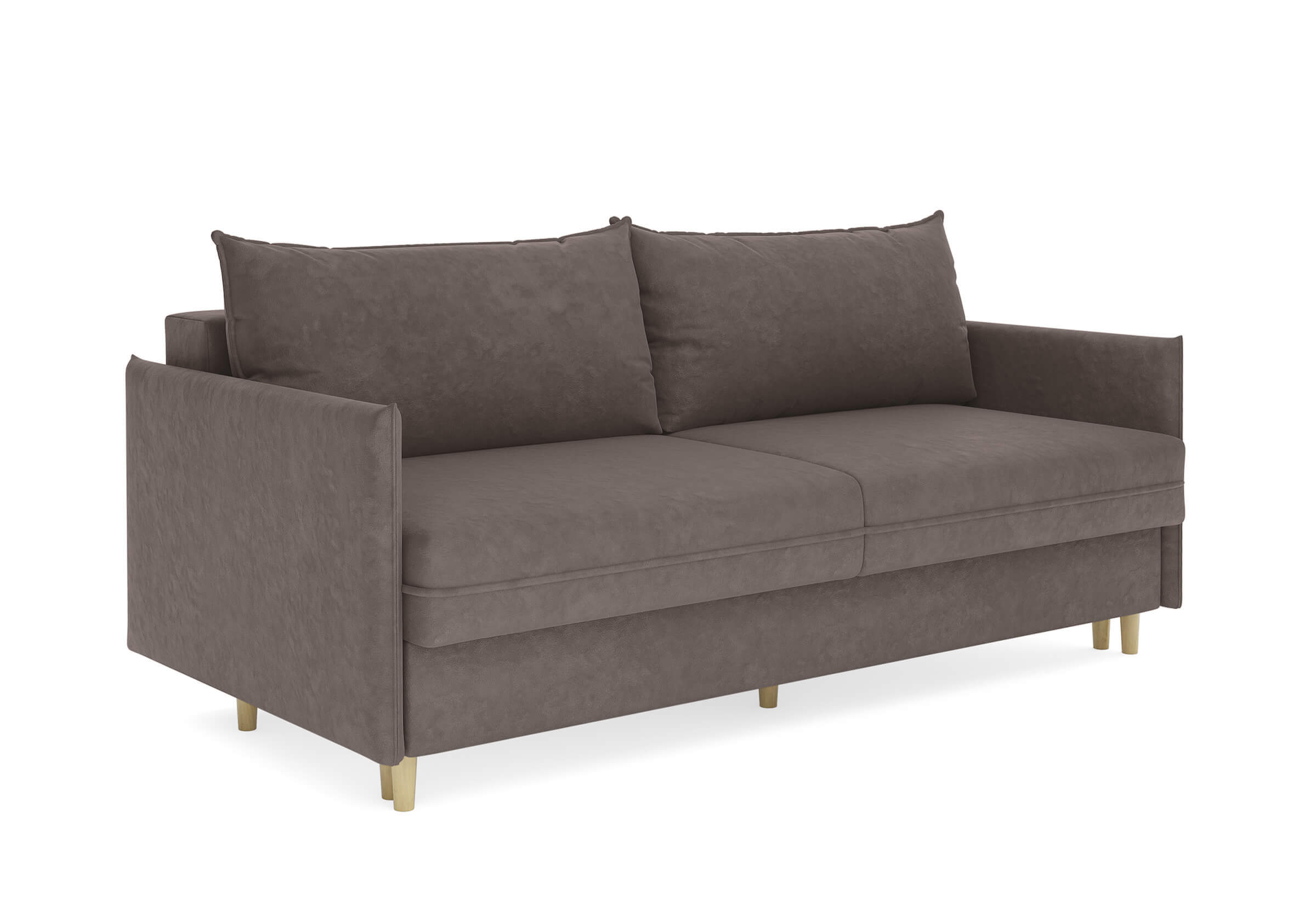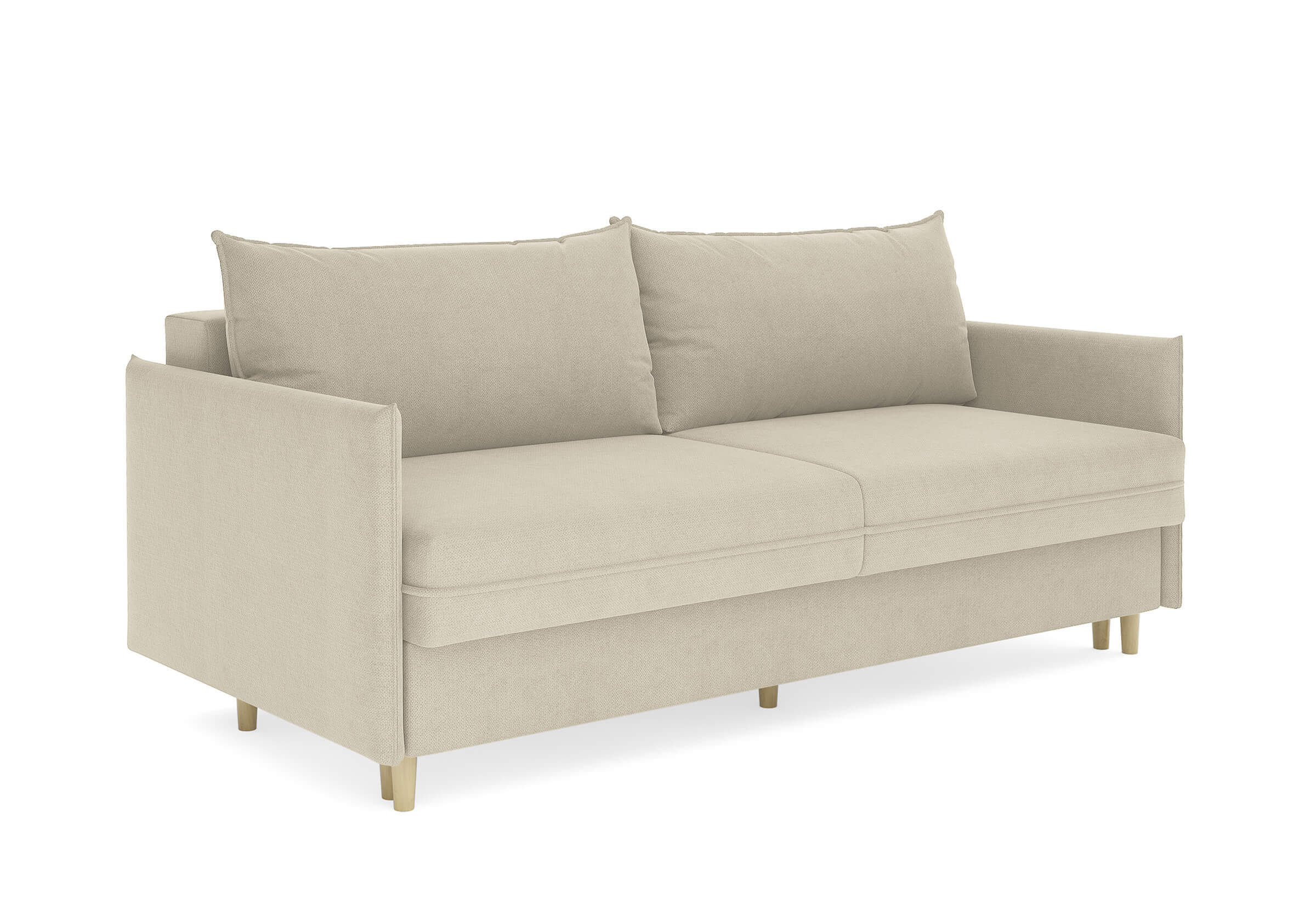 Диван для сна в скандинавском стиле с механизмом трансформации пантограф и коробом для хранения. Модель без броского декора, с прямыми линиями. Благодаря декоративному канту на сидении, подлокотниках и подушках, а также опорам из натурального массива Rain органично впишется в современные интерьеры в скандинавском стиле. У дивана анатомический матрас с блоком независимых пружин, жесткость средняя. Тонкие подлокотники делают диван негабаритным в длину. Комфортная глубина и высота сиденья обеспечит ежедневный комфорт. Задняя спинка предотвращает загрязнение и повреждение стены. В основе мягких подушек – микс наполнителей: поролоновая крошка не дает деформироваться, а синтетическое волокно добавляет комфорт. Опоры деревянные, два цвета на выбор. Просвет над полом способствует легкой уборке под диваном, в том числе роботом-пылесосом..Размер сального места: 150-200