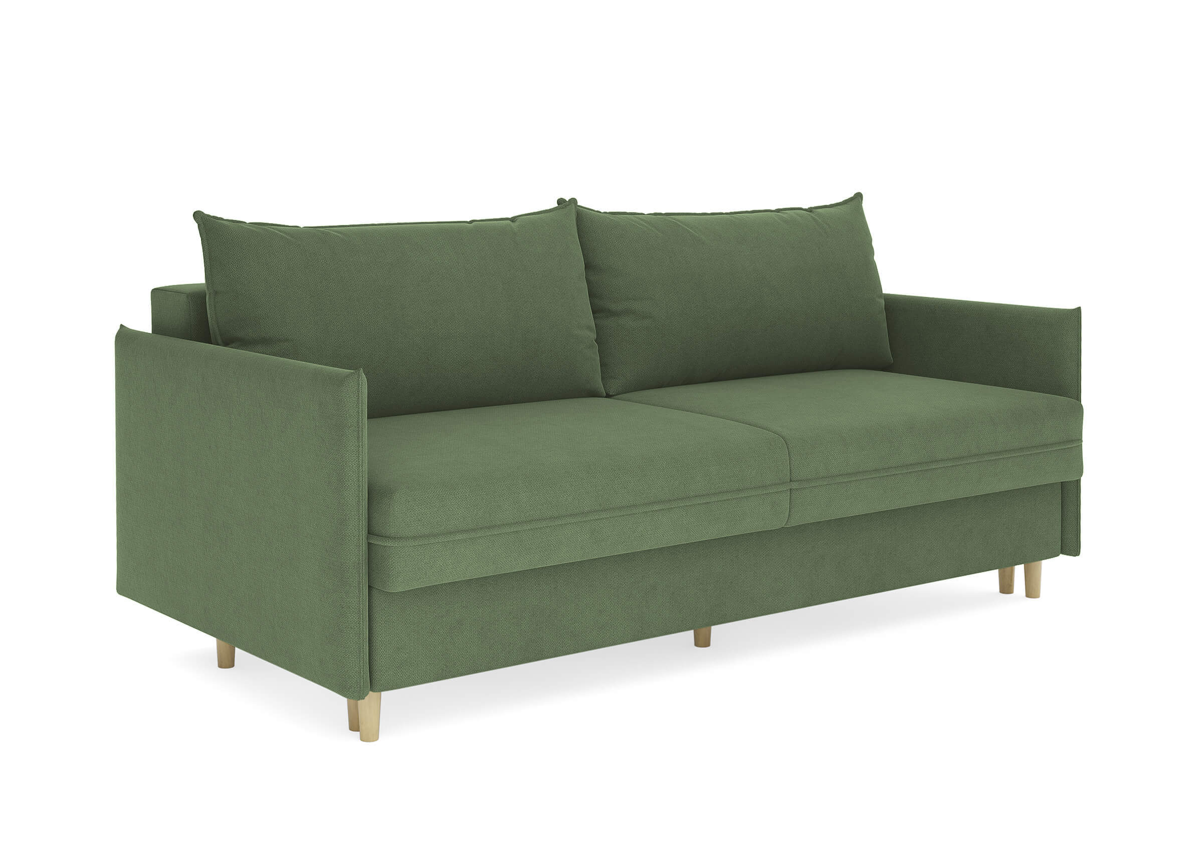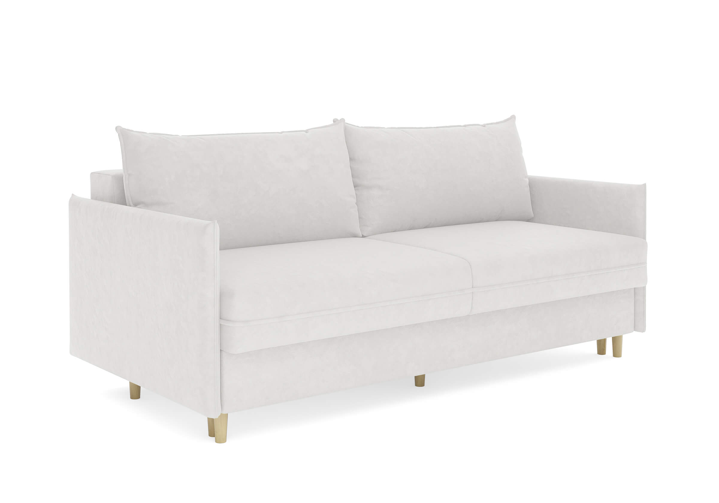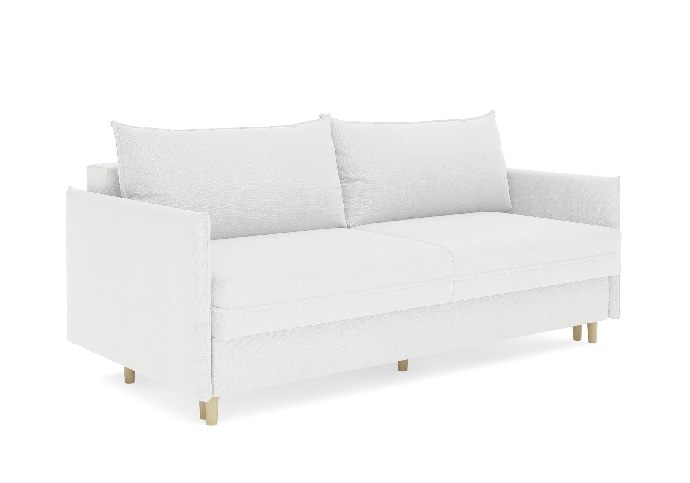 Диван для сна в скандинавском стиле с механизмом трансформации пантограф и коробом для хранения. Модель без броского декора, с прямыми линиями. Благодаря декоративному канту на сидении, подлокотниках и подушках, а также опорам из натурального массива Rain органично впишется в современные интерьеры в скандинавском стиле. У дивана анатомический матрас с блоком независимых пружин, жесткость средняя. Тонкие подлокотники делают диван негабаритным в длину. Комфортная глубина и высота сиденья обеспечит ежедневный комфорт. Задняя спинка предотвращает загрязнение и повреждение стены. В основе мягких подушек – микс наполнителей: поролоновая крошка не дает деформироваться, а синтетическое волокно добавляет комфорт. Опоры деревянные, два цвета на выбор. Просвет над полом способствует легкой уборке под диваном, в том числе роботом-пылесосом..Размер сального места: 150-200