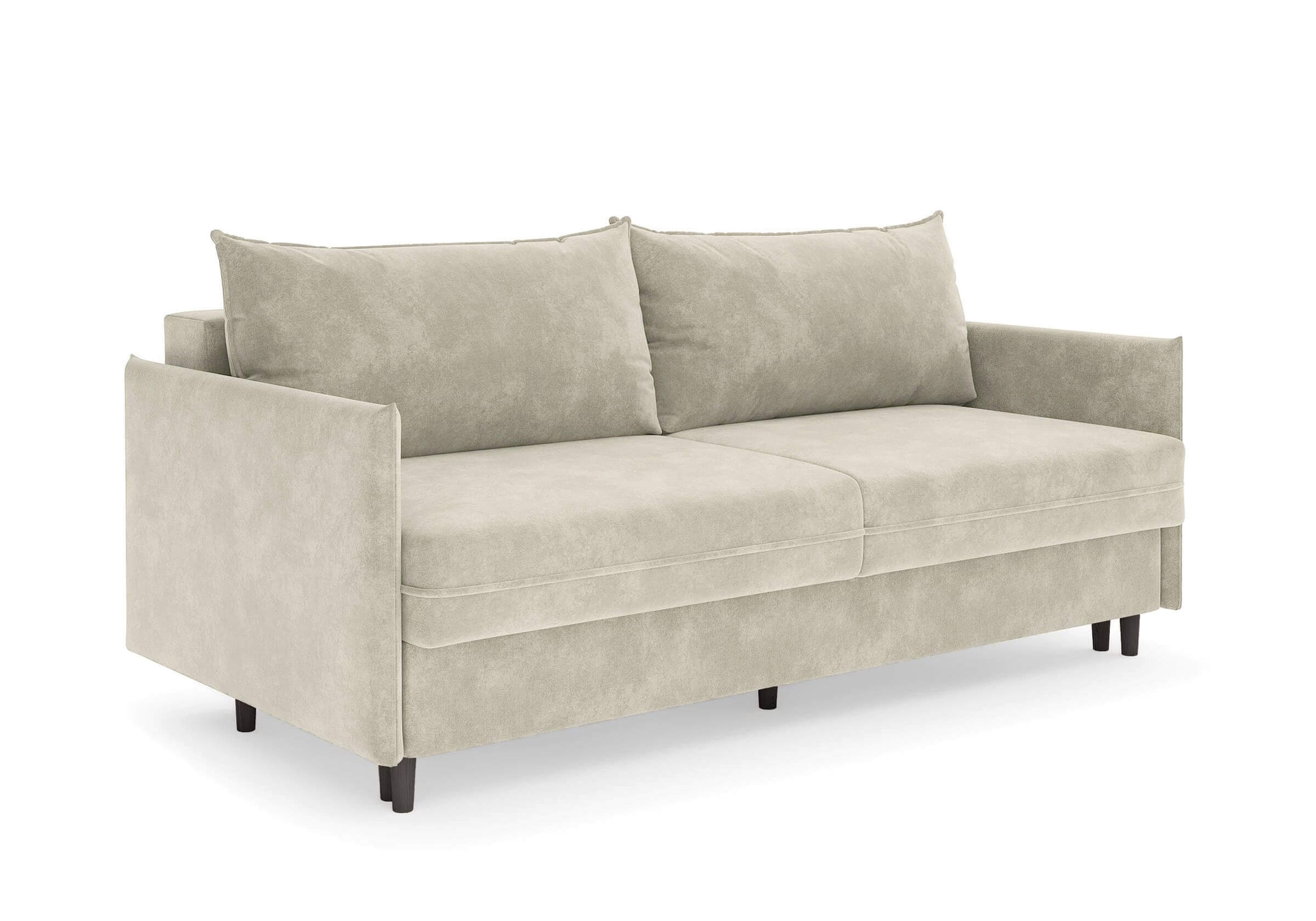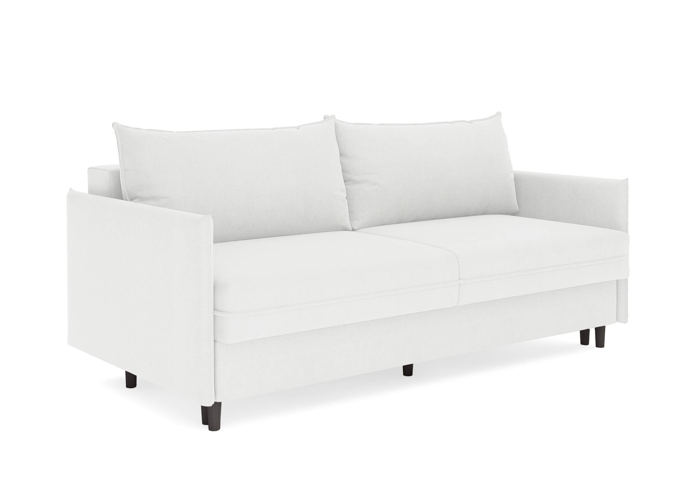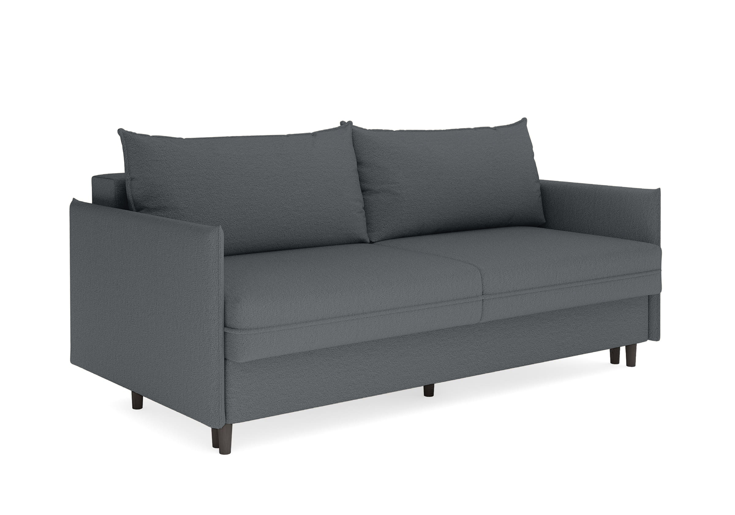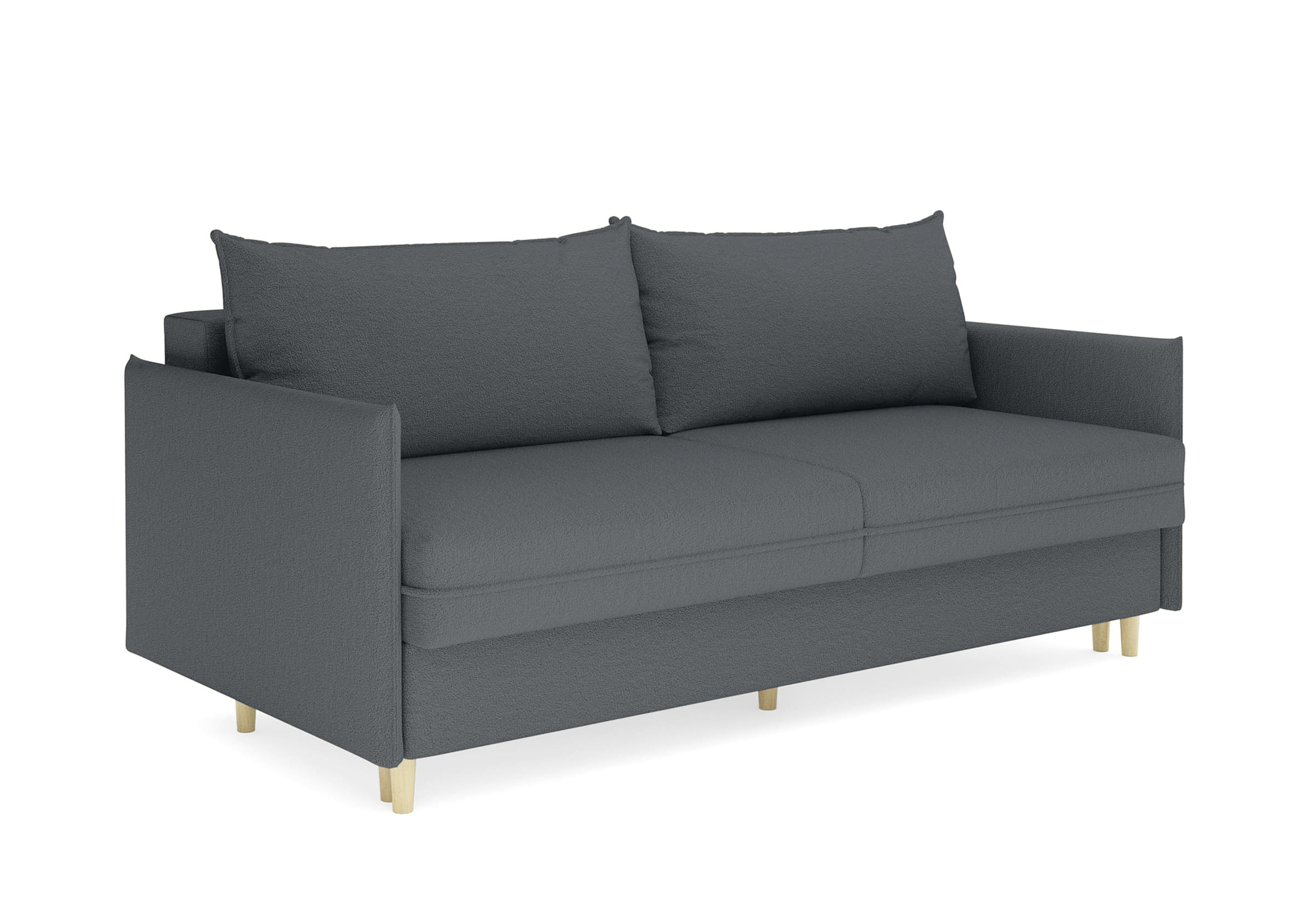 Диван для сна в скандинавском стиле с механизмом трансформации пантограф и коробом для хранения. Модель без броского декора, с прямыми линиями. Благодаря декоративному канту на сидении, подлокотниках и подушках, а также опорам из натурального массива Rain органично впишется в современные интерьеры в скандинавском стиле. У дивана анатомический матрас с блоком независимых пружин, жесткость средняя. Тонкие подлокотники делают диван негабаритным в длину. Комфортная глубина и высота сиденья обеспечит ежедневный комфорт. Задняя спинка предотвращает загрязнение и повреждение стены. В основе мягких подушек – микс наполнителей: поролоновая крошка не дает деформироваться, а синтетическое волокно добавляет комфорт. Опоры деревянные, два цвета на выбор. Просвет над полом способствует легкой уборке под диваном, в том числе роботом-пылесосом..Размер сального места: 150-200