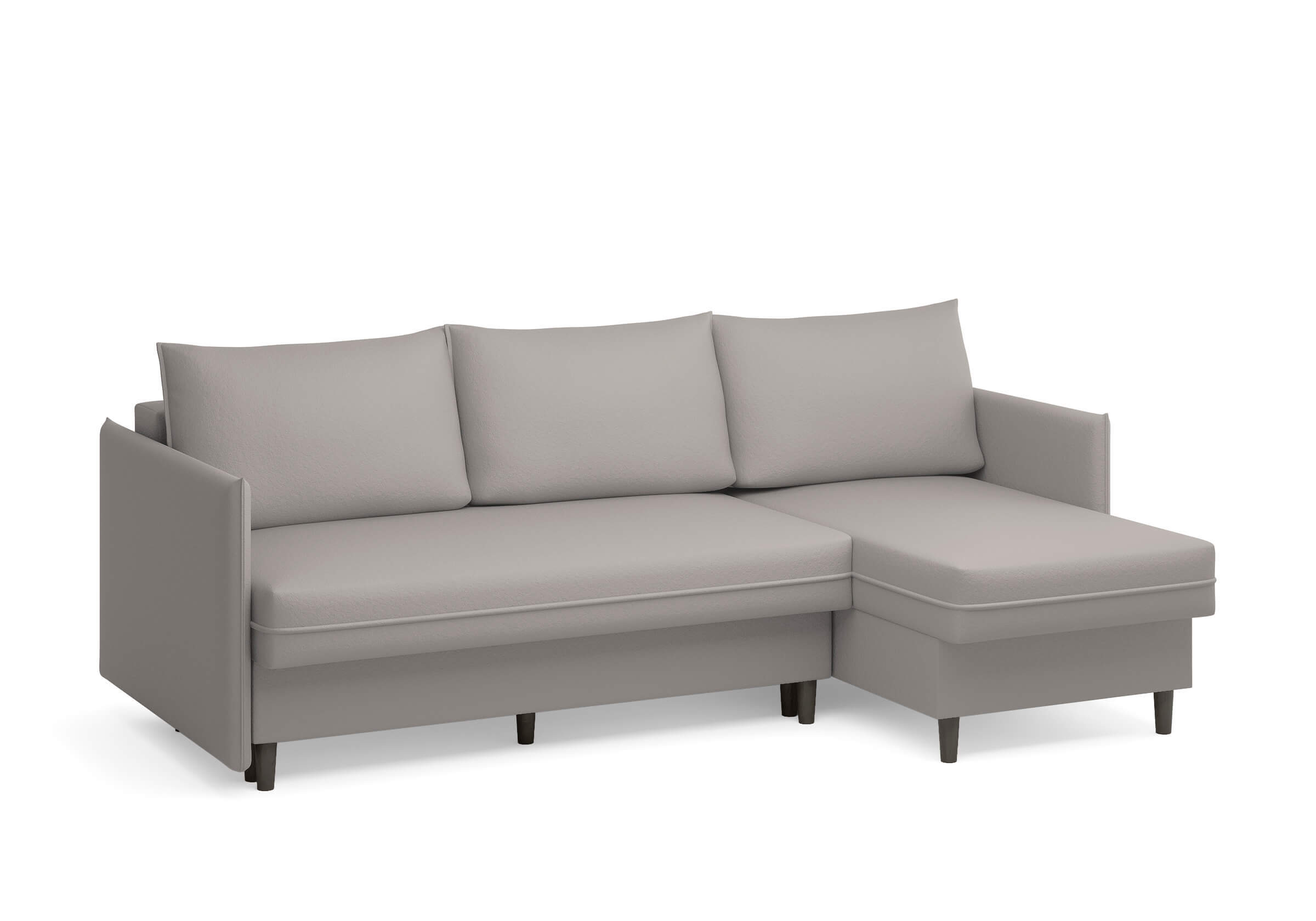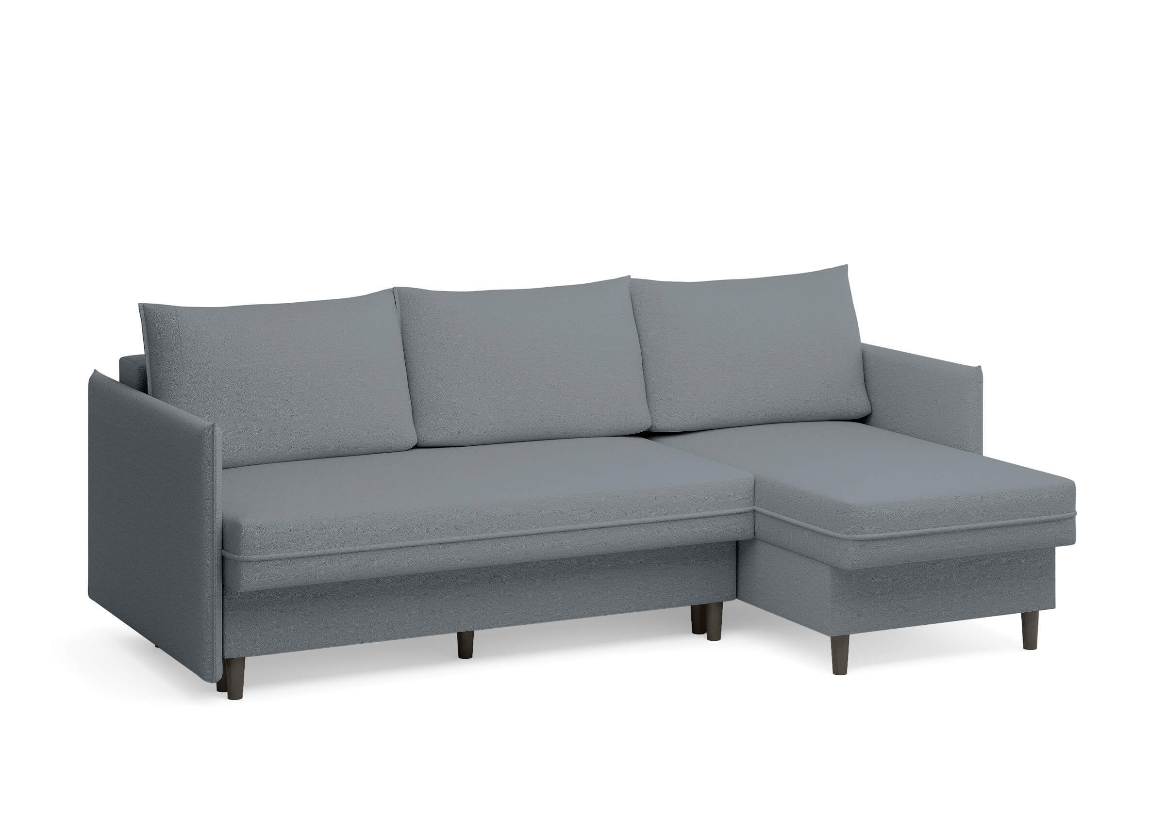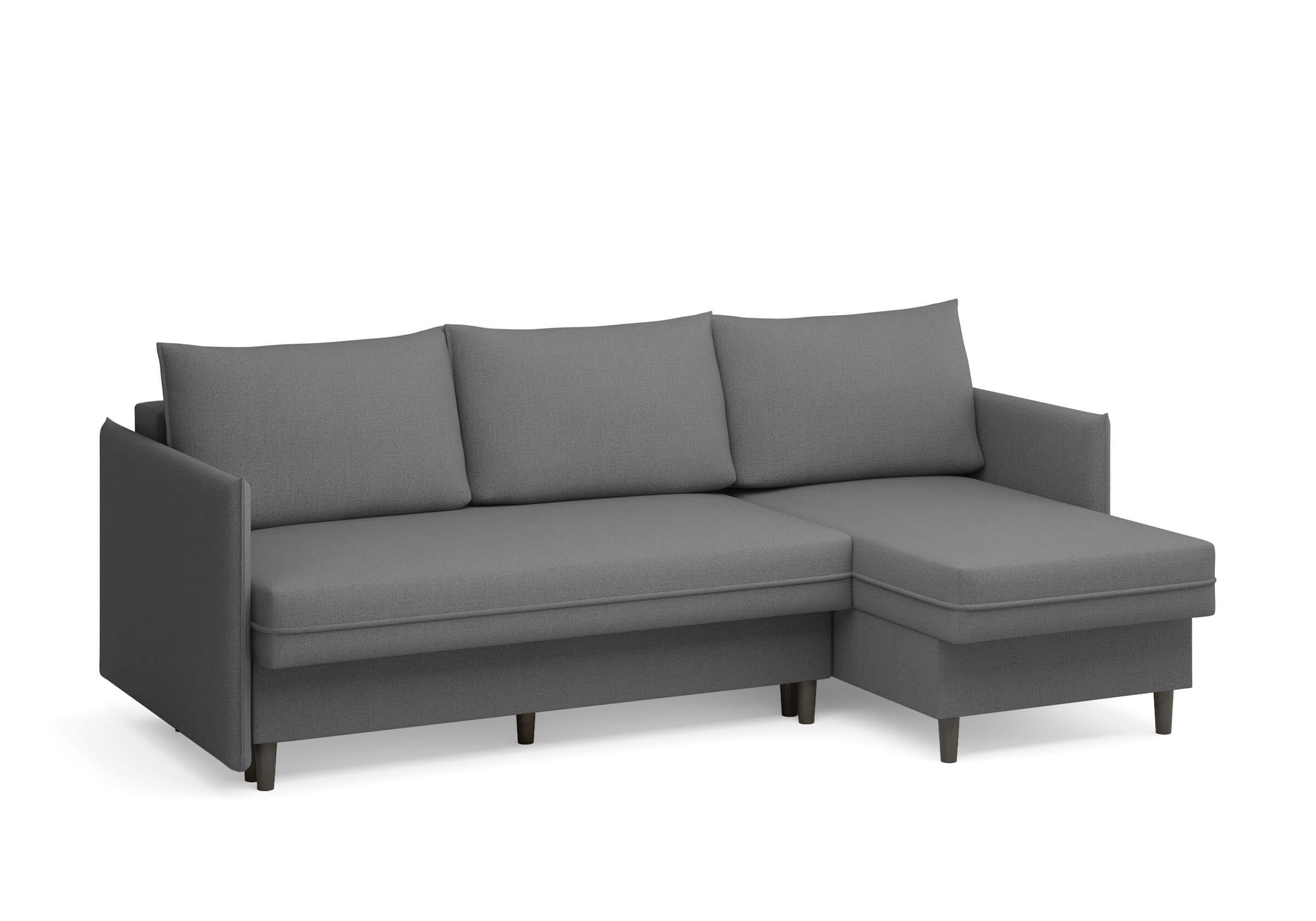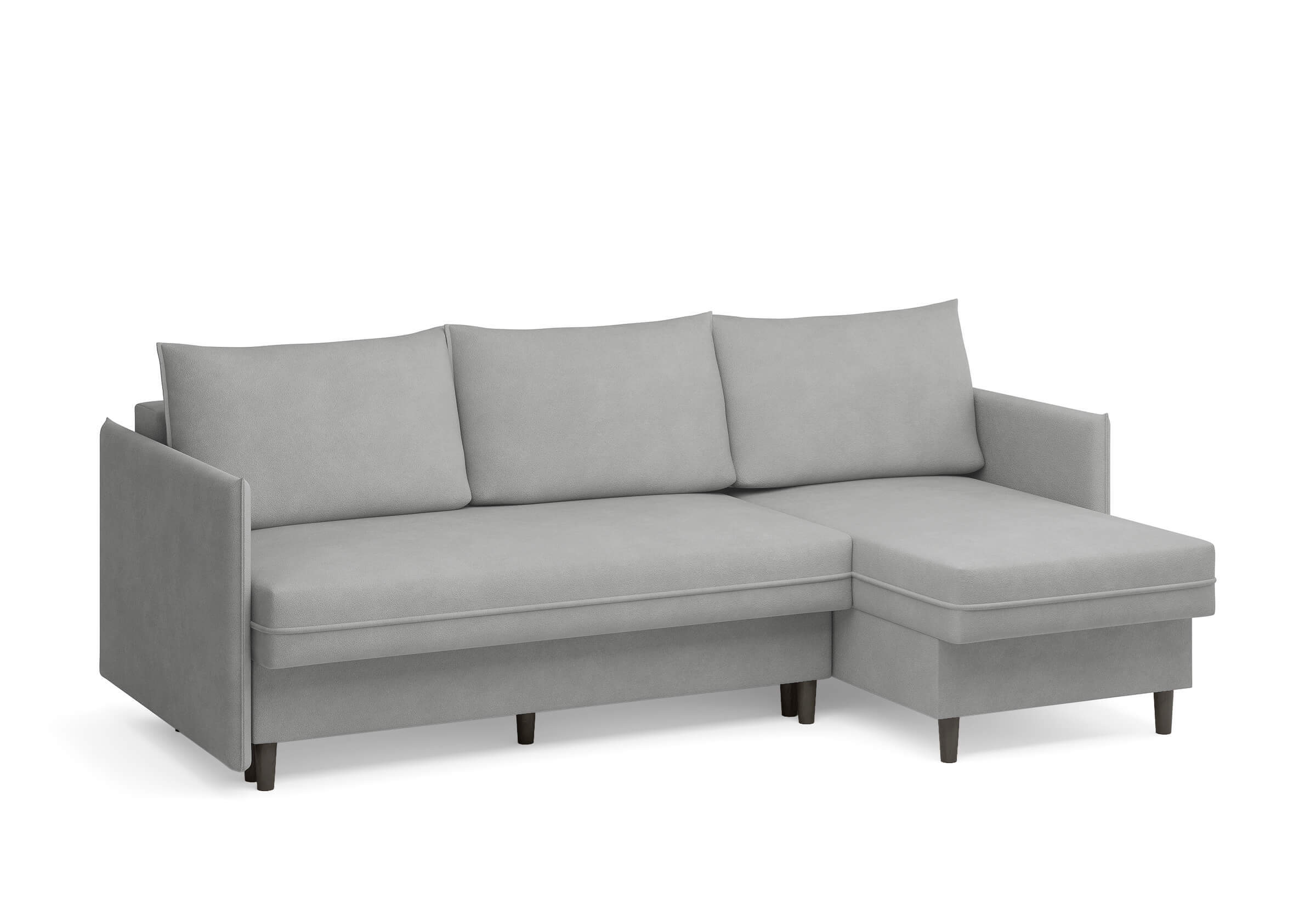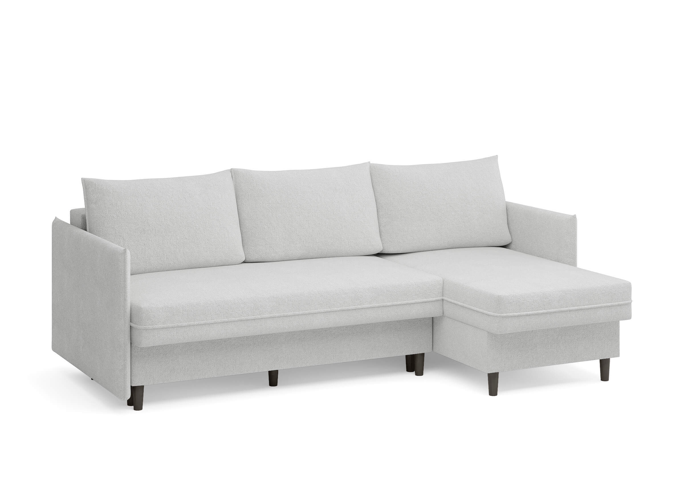 Угловой диван Rain — это идеальное сочетание лаконичного дизайна, продуманной эргономики и непревзойденного комфорта, воплощённое в сканди стиле. Четкие геометрические линии, минималистичные подлокотники и стильные деревянные опоры создают выразительный силуэт, который станет ключевым элементом вашей гостиной. Конструкция позволяет собрать конфигурацию под ваше пространство — левую или правую, — а встроенный бельевой короб обеспечивает удобное хранение постельного белья и подушек, не занимая лишнего места. Диван не только красив, но и практичен: независимый пружинный блок в сочетании с высокоэластичной пеной в составе матраса обеспечивает комфортное место для сна и отдыха. Практичная обивка и продуманная высота спинки защитят стены, сохраняя безупречный вид вашего интерьера. Кроме того, вы можете выбрать цвет и фактуру ткани из широкой палитры, чтобы диван идеально вписался в ваш интерьер.Размер спального места: 150-225