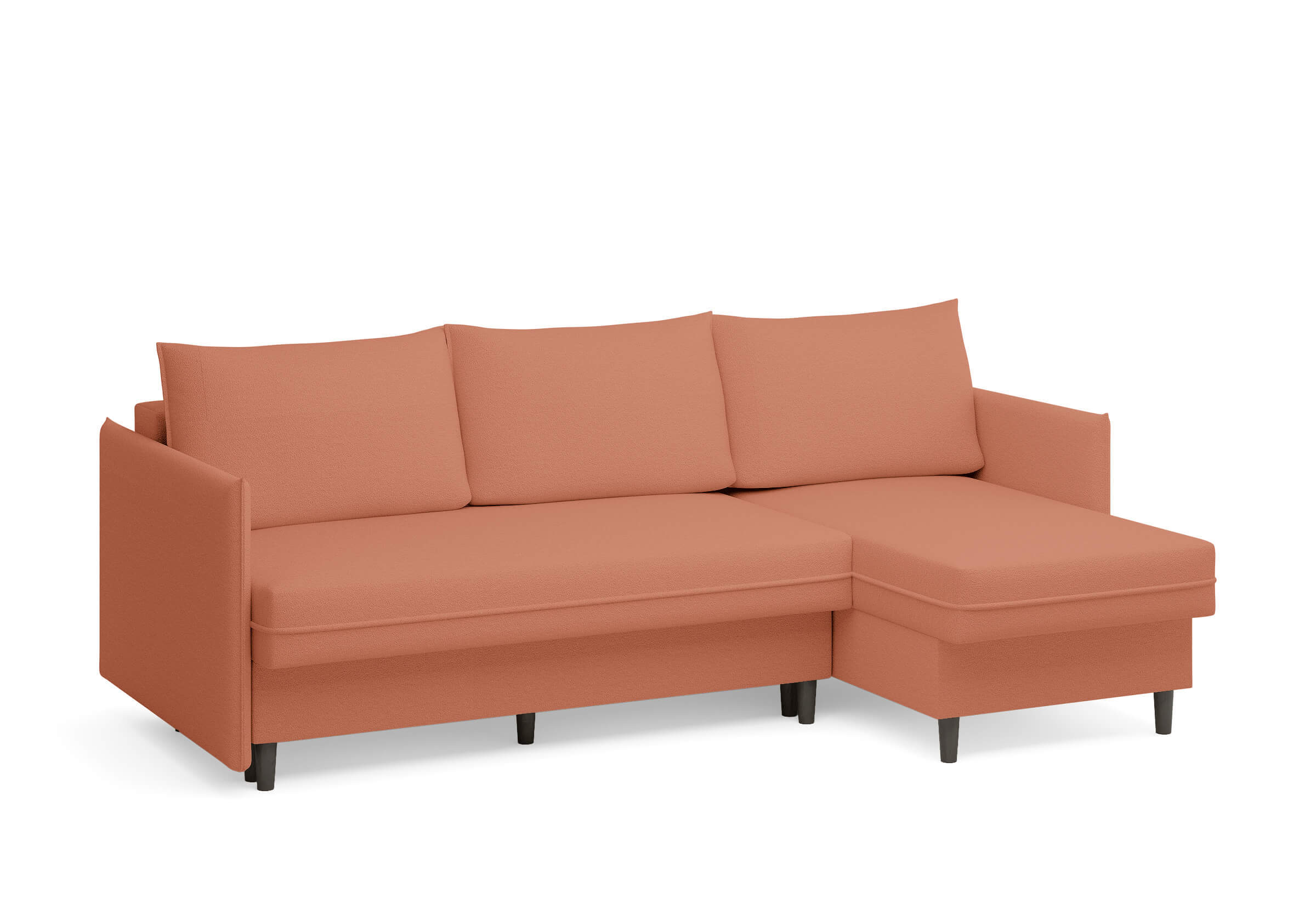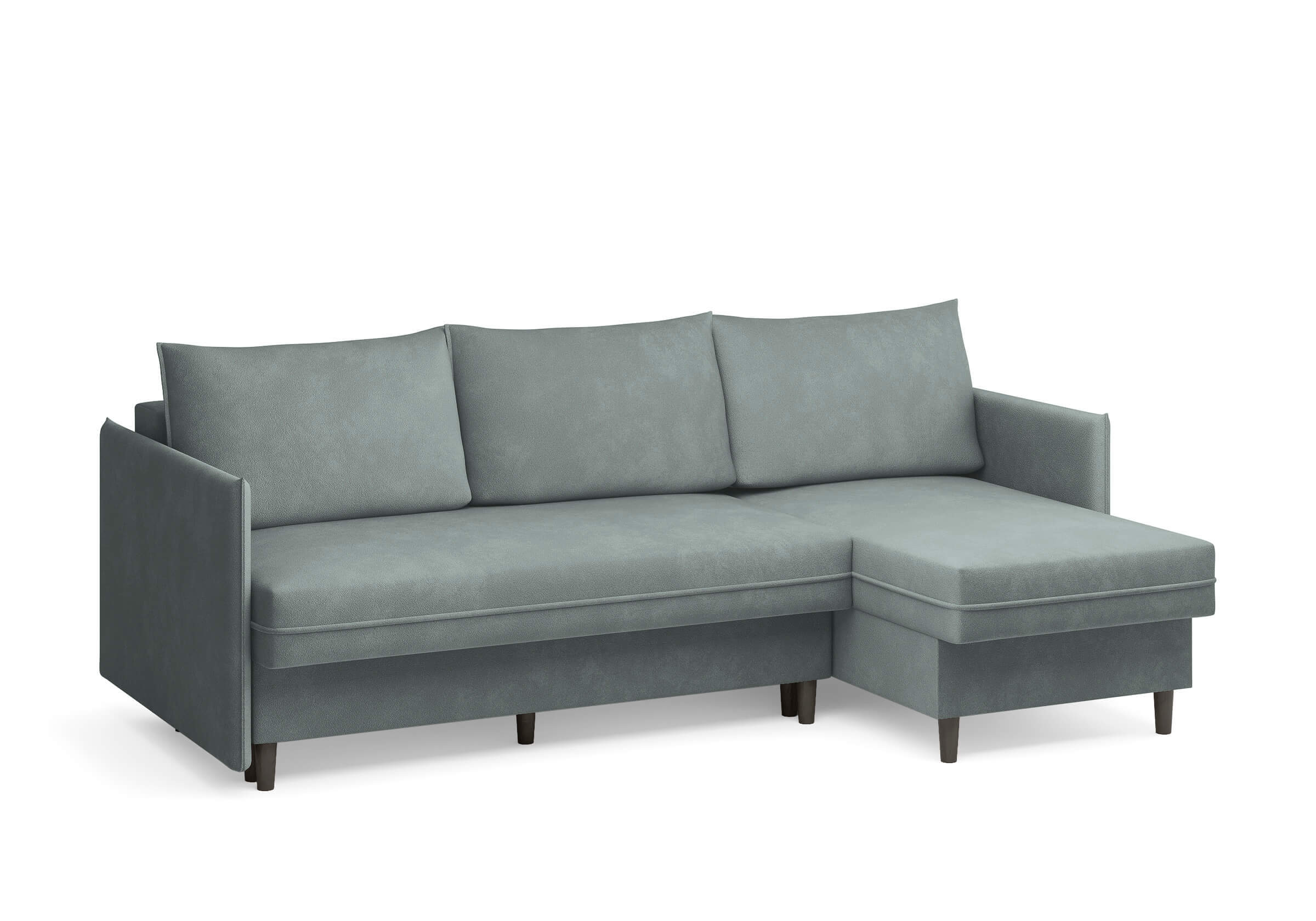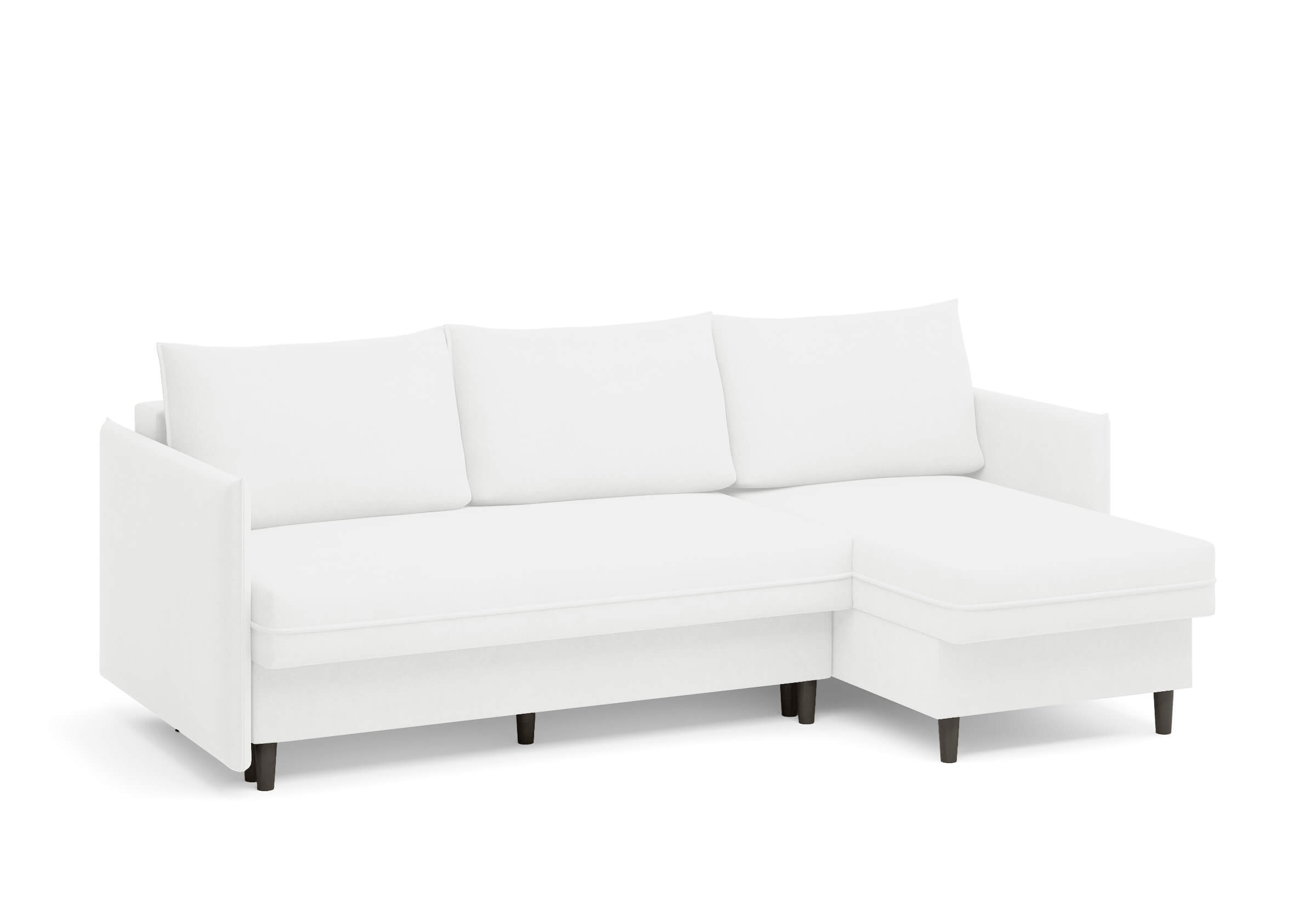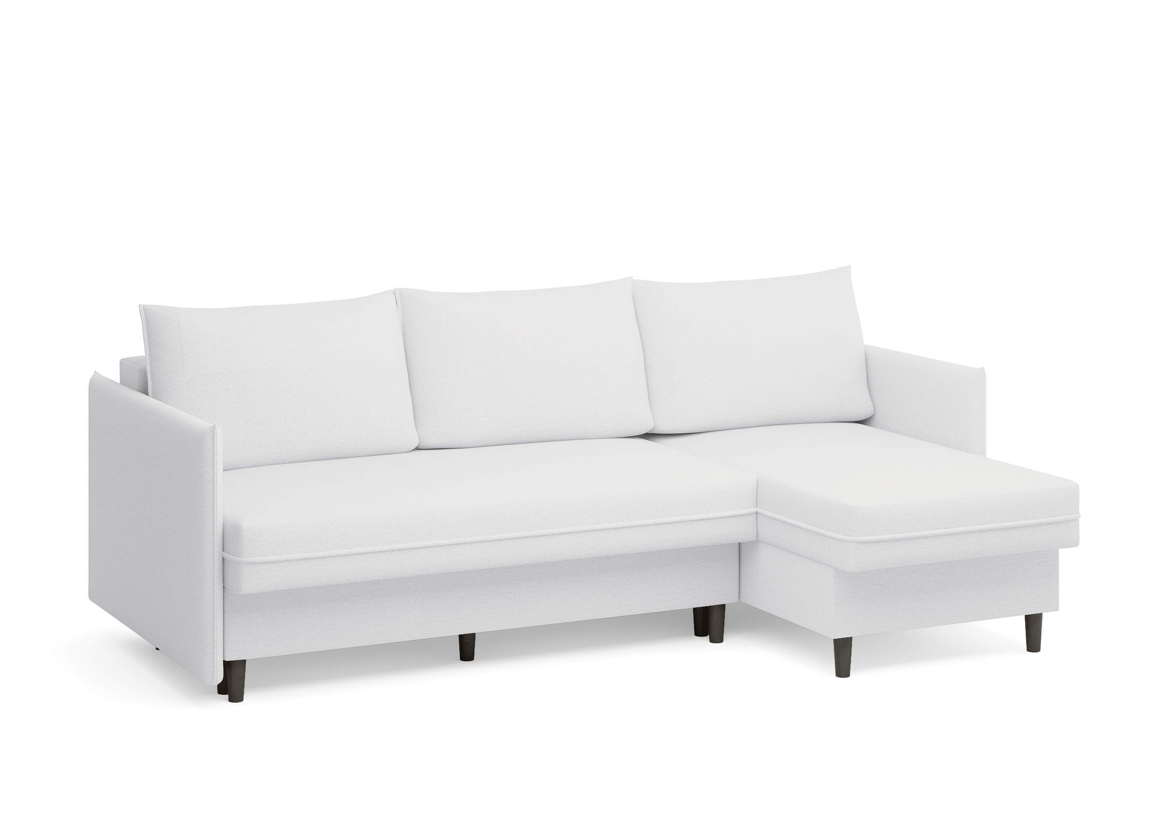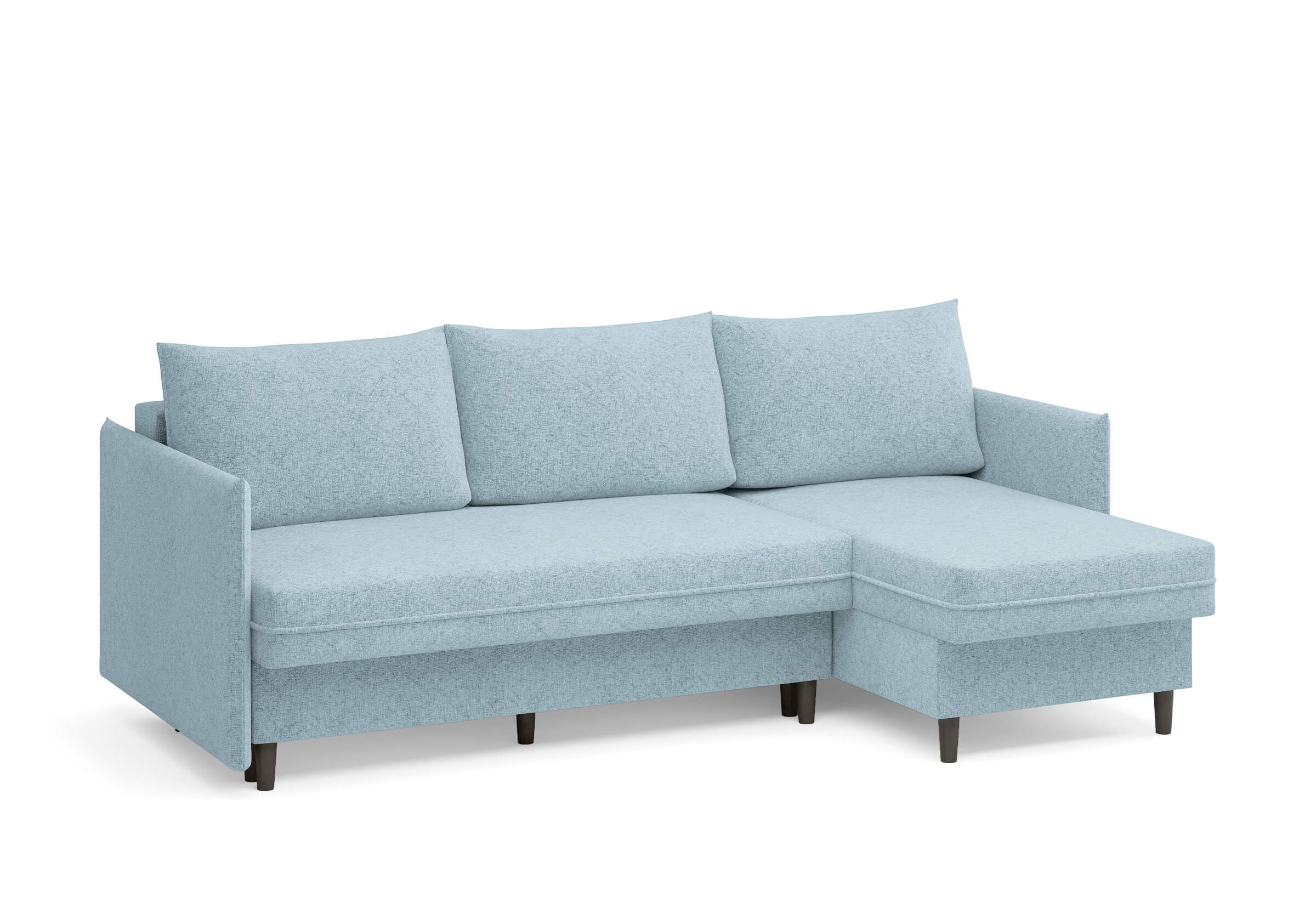 Угловой диван Rain — это идеальное сочетание лаконичного дизайна, продуманной эргономики и непревзойденного комфорта, воплощённое в сканди стиле. Четкие геометрические линии, минималистичные подлокотники и стильные деревянные опоры создают выразительный силуэт, который станет ключевым элементом вашей гостиной. Конструкция позволяет собрать конфигурацию под ваше пространство — левую или правую, — а встроенный бельевой короб обеспечивает удобное хранение постельного белья и подушек, не занимая лишнего места. Диван не только красив, но и практичен: независимый пружинный блок в сочетании с высокоэластичной пеной в составе матраса обеспечивает комфортное место для сна и отдыха. Практичная обивка и продуманная высота спинки защитят стены, сохраняя безупречный вид вашего интерьера. Кроме того, вы можете выбрать цвет и фактуру ткани из широкой палитры, чтобы диван идеально вписался в ваш интерьер.Размер спального места: 150-225