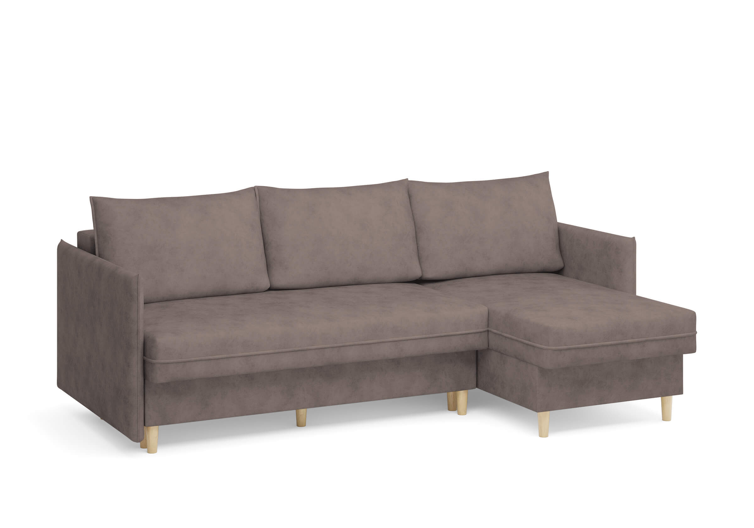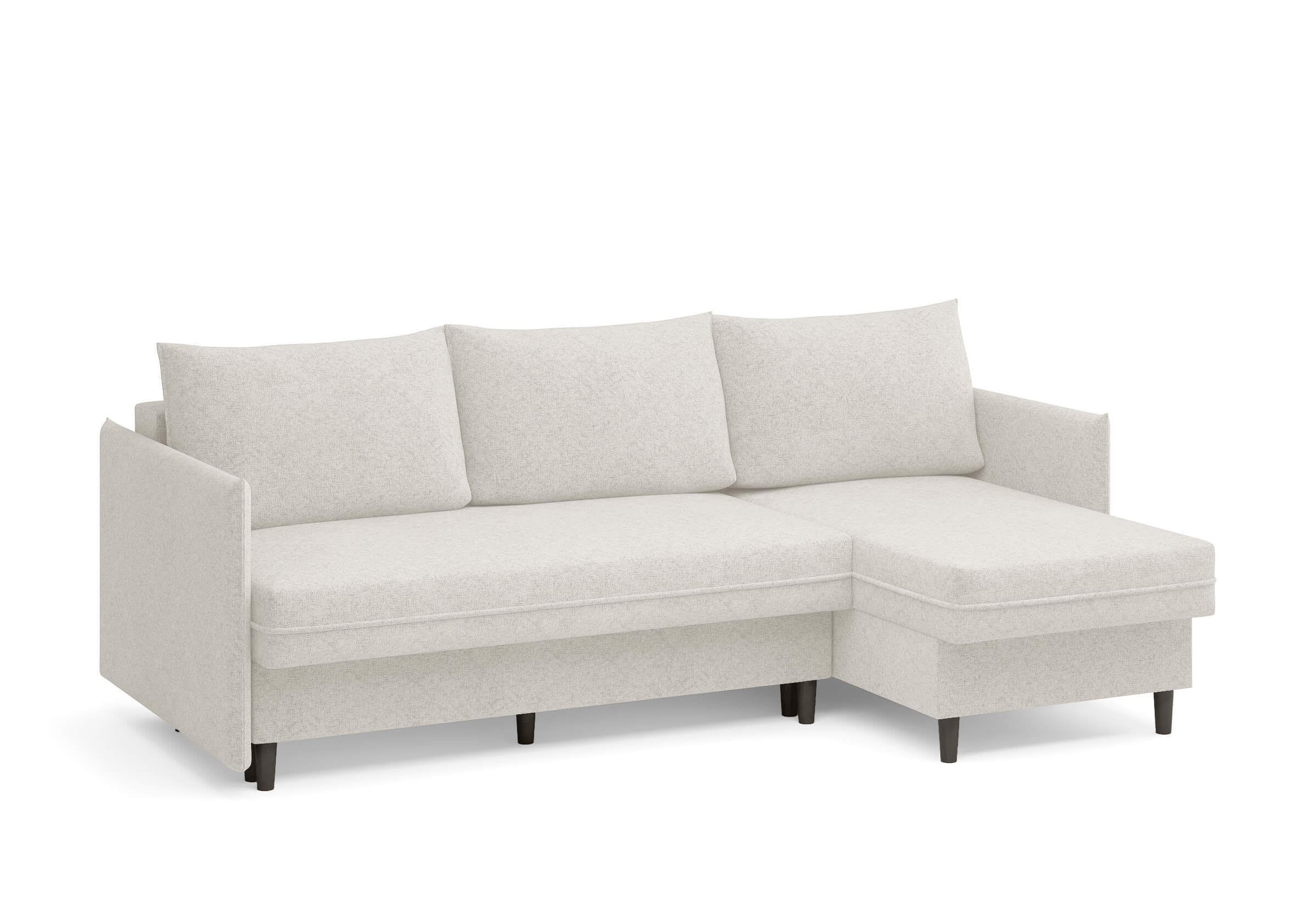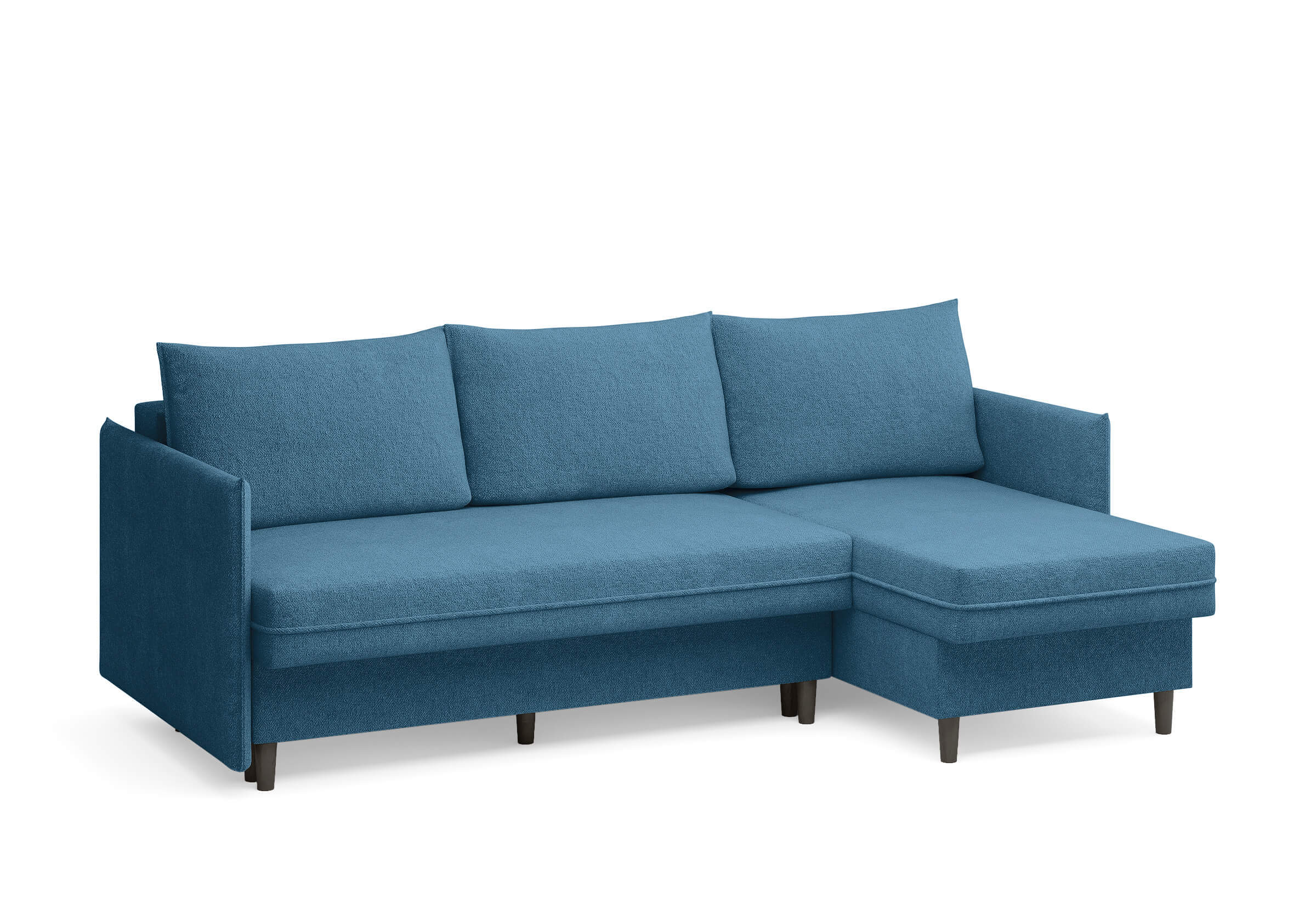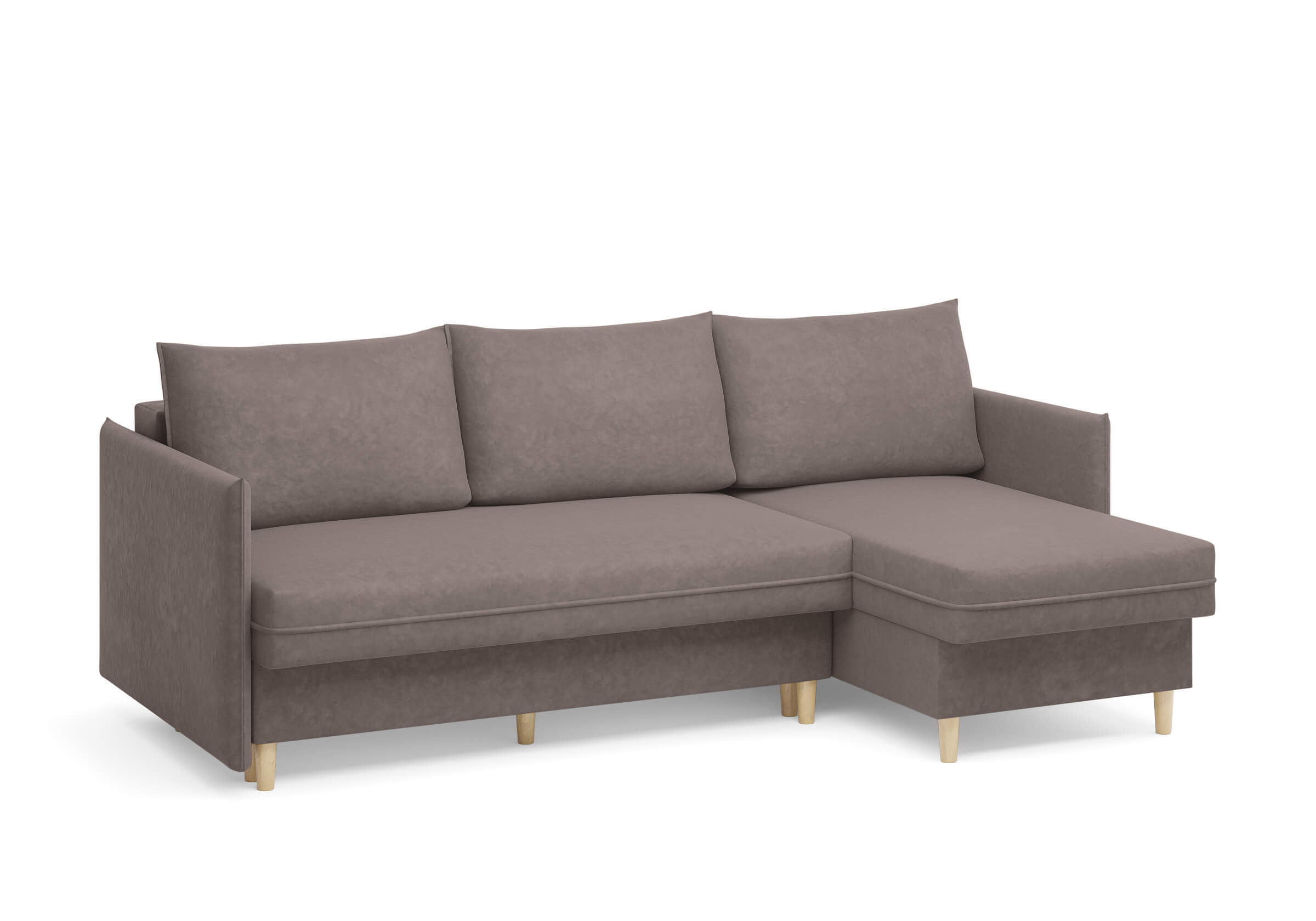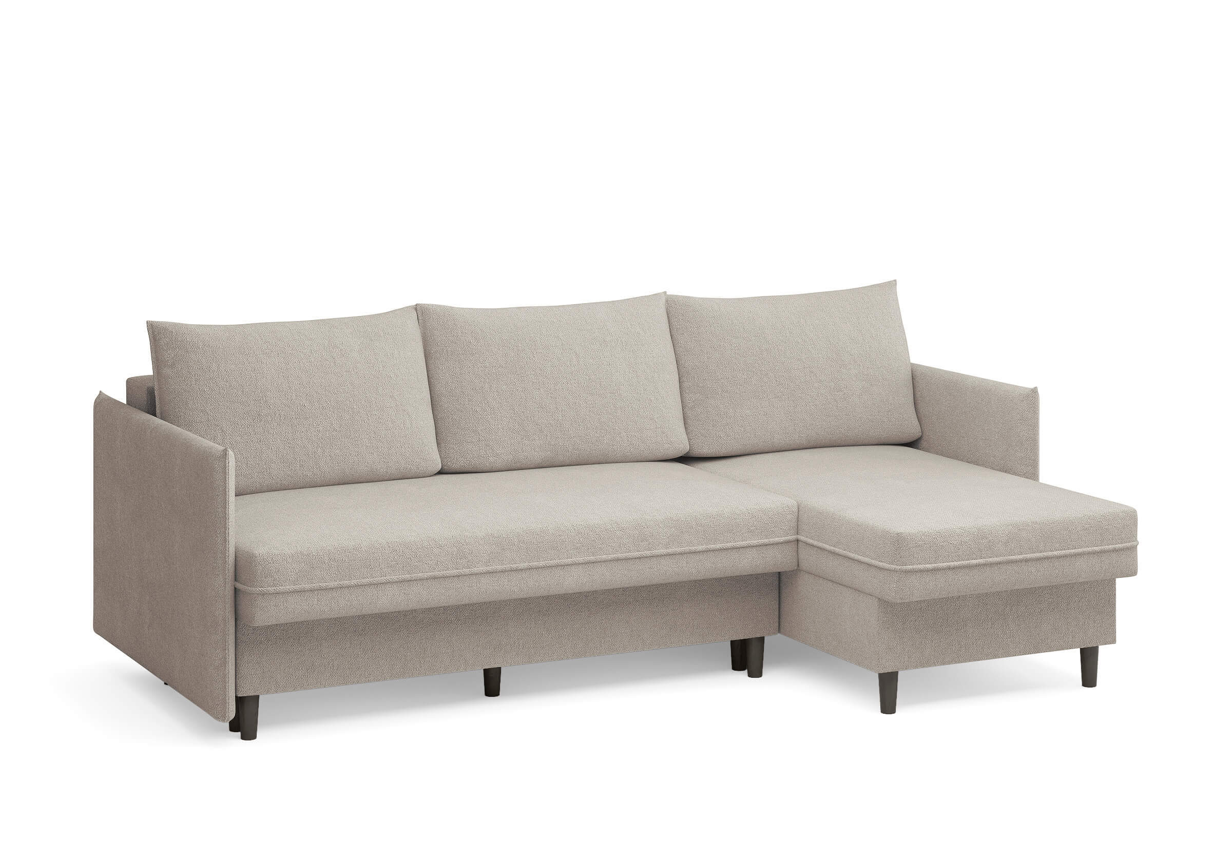 Угловой диван Rain — это идеальное сочетание лаконичного дизайна, продуманной эргономики и непревзойденного комфорта, воплощённое в сканди стиле. Четкие геометрические линии, минималистичные подлокотники и стильные деревянные опоры создают выразительный силуэт, который станет ключевым элементом вашей гостиной. Конструкция позволяет собрать конфигурацию под ваше пространство — левую или правую, — а встроенный бельевой короб обеспечивает удобное хранение постельного белья и подушек, не занимая лишнего места. Диван не только красив, но и практичен: независимый пружинный блок в сочетании с высокоэластичной пеной в составе матраса обеспечивает комфортное место для сна и отдыха. Практичная обивка и продуманная высота спинки защитят стены, сохраняя безупречный вид вашего интерьера. Кроме того, вы можете выбрать цвет и фактуру ткани из широкой палитры, чтобы диван идеально вписался в ваш интерьер.Размер спального места: 150-225