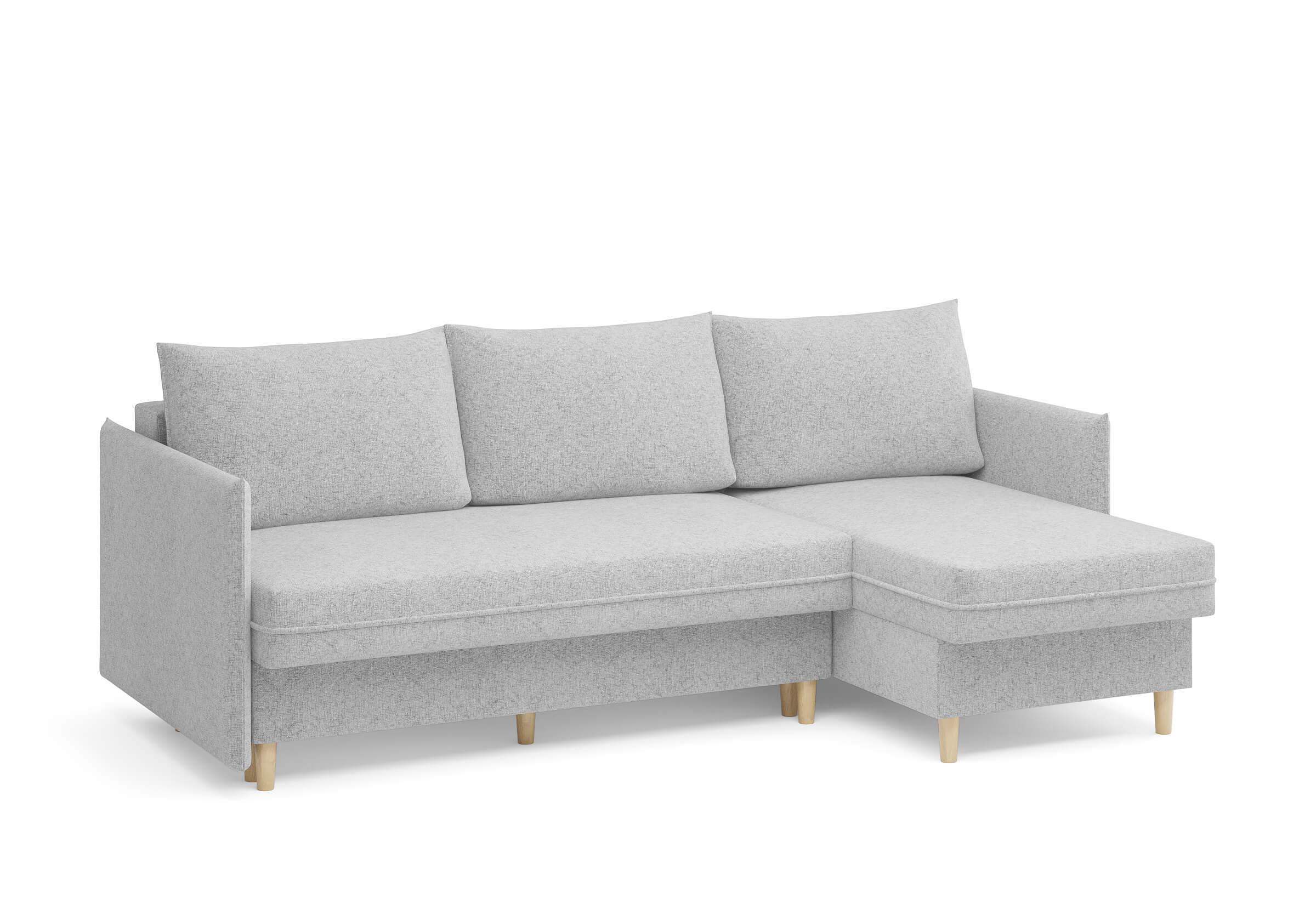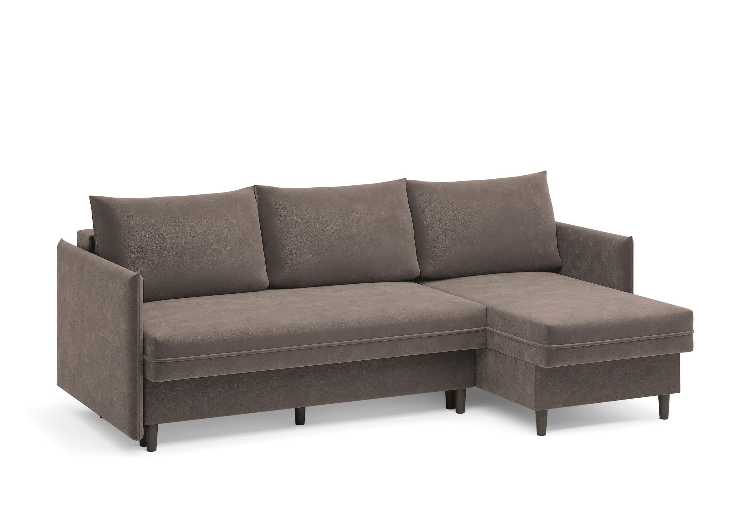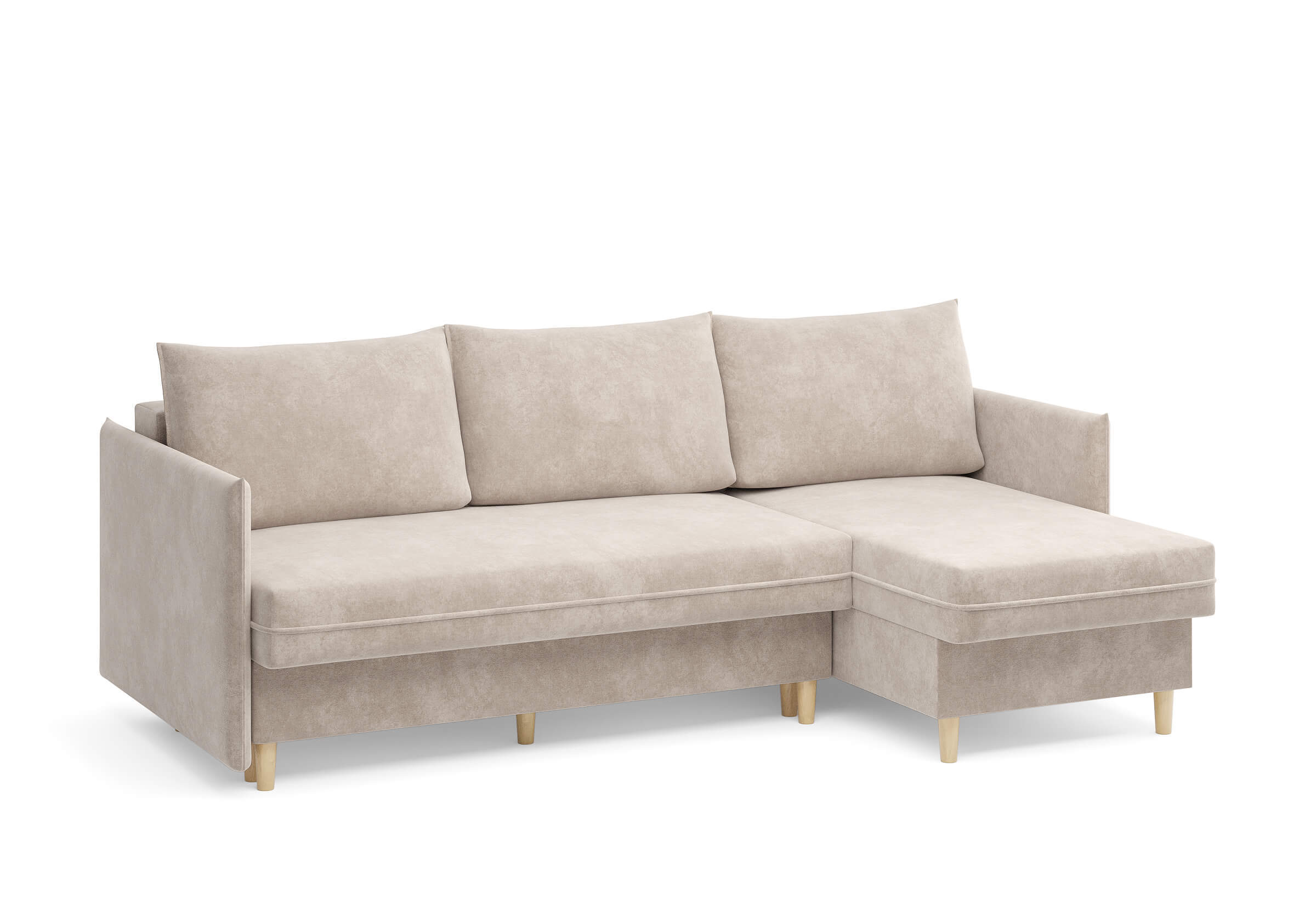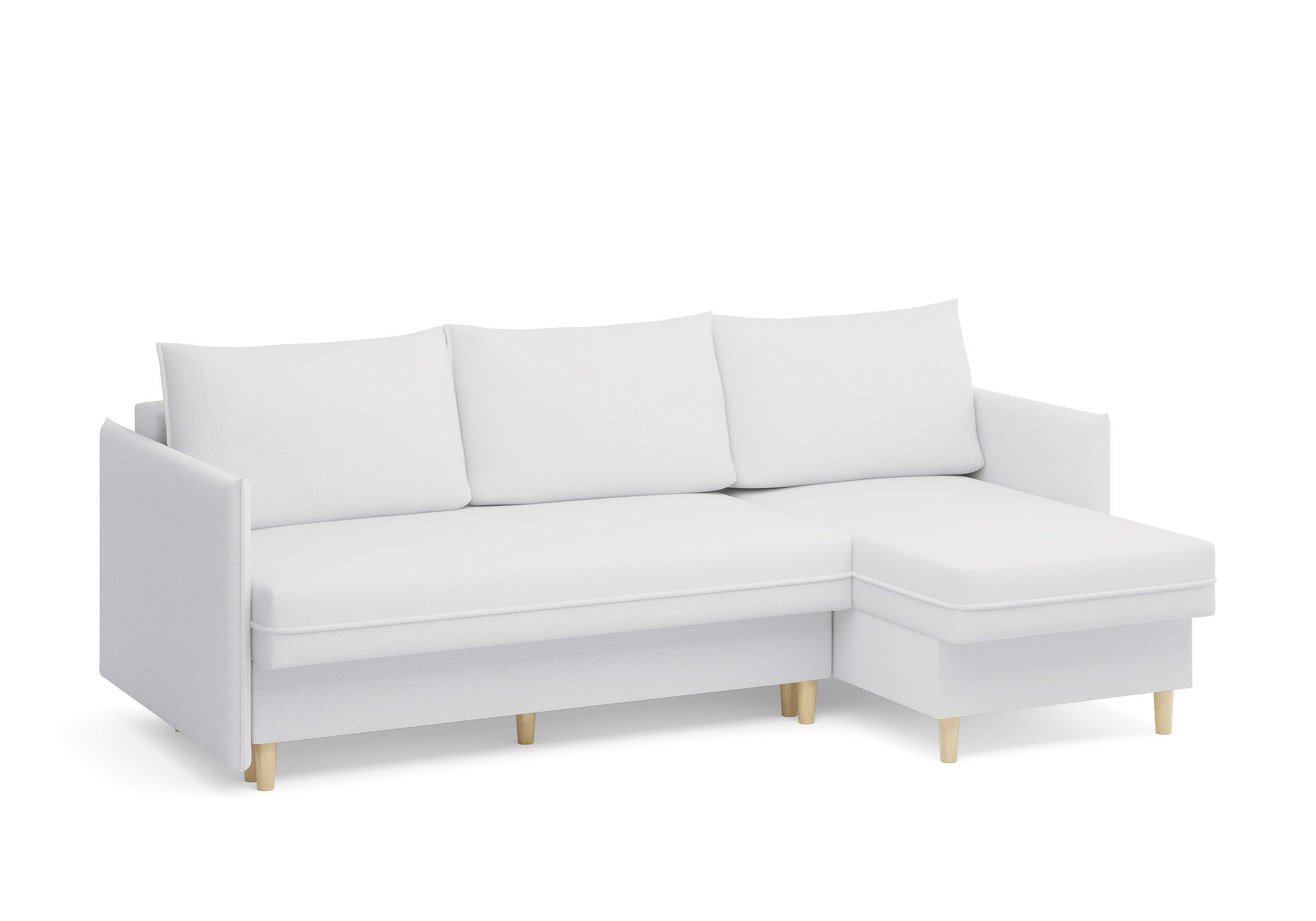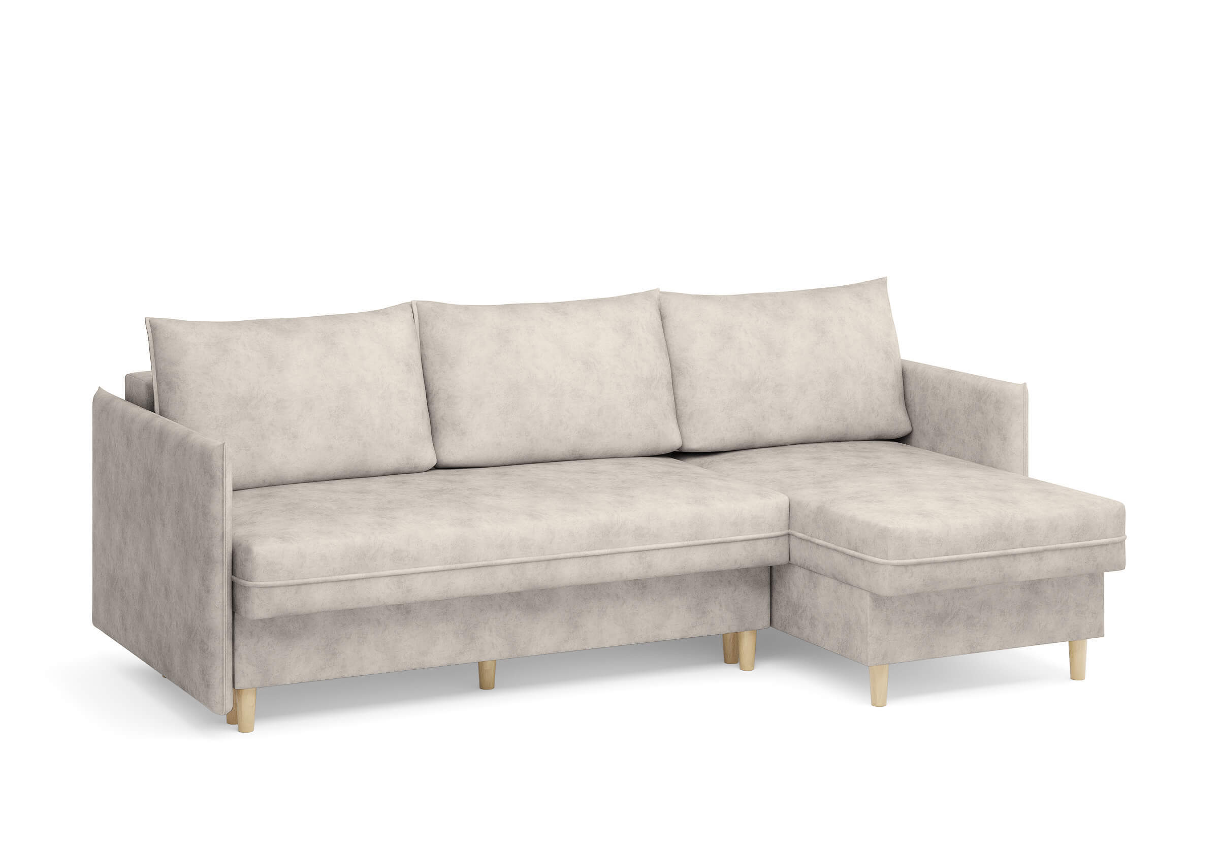 Угловой диван Rain — это идеальное сочетание лаконичного дизайна, продуманной эргономики и непревзойденного комфорта, воплощённое в сканди стиле. Четкие геометрические линии, минималистичные подлокотники и стильные деревянные опоры создают выразительный силуэт, который станет ключевым элементом вашей гостиной. Конструкция позволяет собрать конфигурацию под ваше пространство — левую или правую, — а встроенный бельевой короб обеспечивает удобное хранение постельного белья и подушек, не занимая лишнего места. Диван не только красив, но и практичен: независимый пружинный блок в сочетании с высокоэластичной пеной в составе матраса обеспечивает комфортное место для сна и отдыха. Практичная обивка и продуманная высота спинки защитят стены, сохраняя безупречный вид вашего интерьера. Кроме того, вы можете выбрать цвет и фактуру ткани из широкой палитры, чтобы диван идеально вписался в ваш интерьер.Размер спального места: 150-225