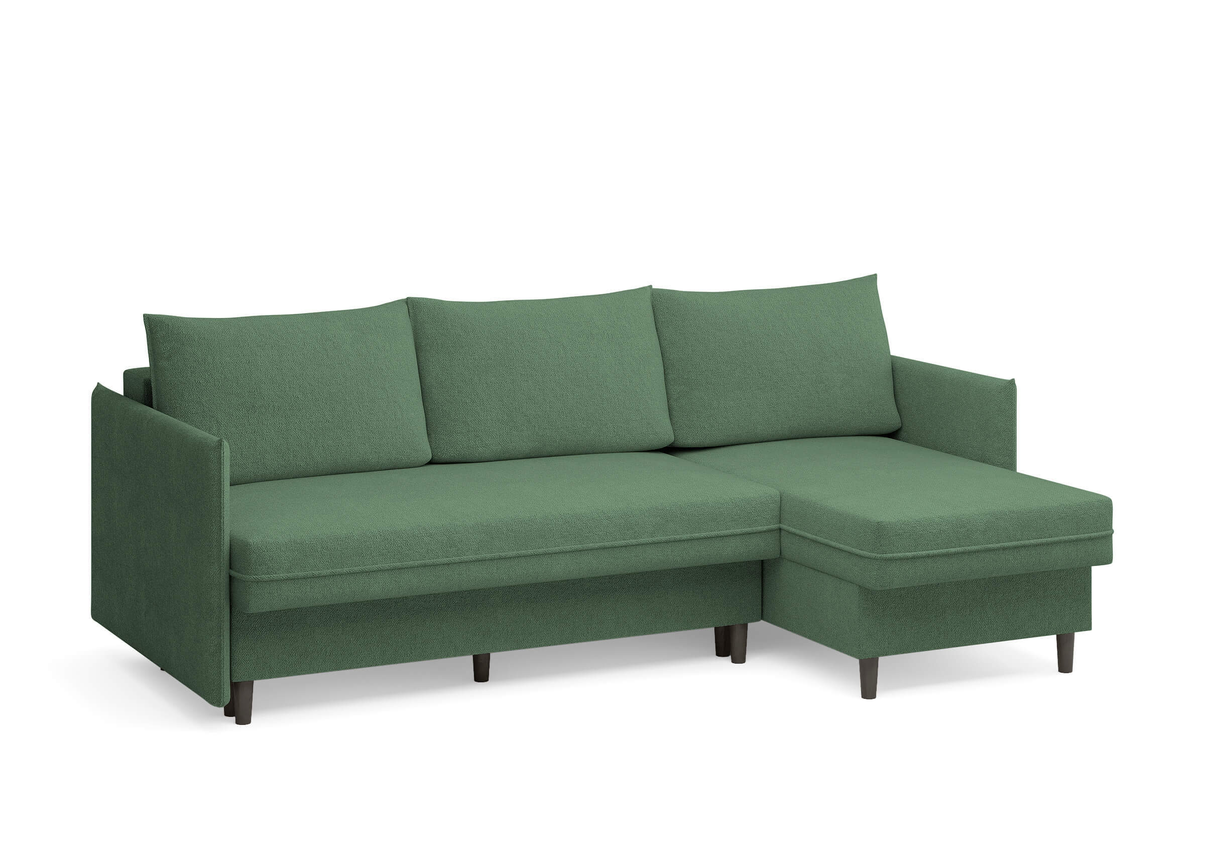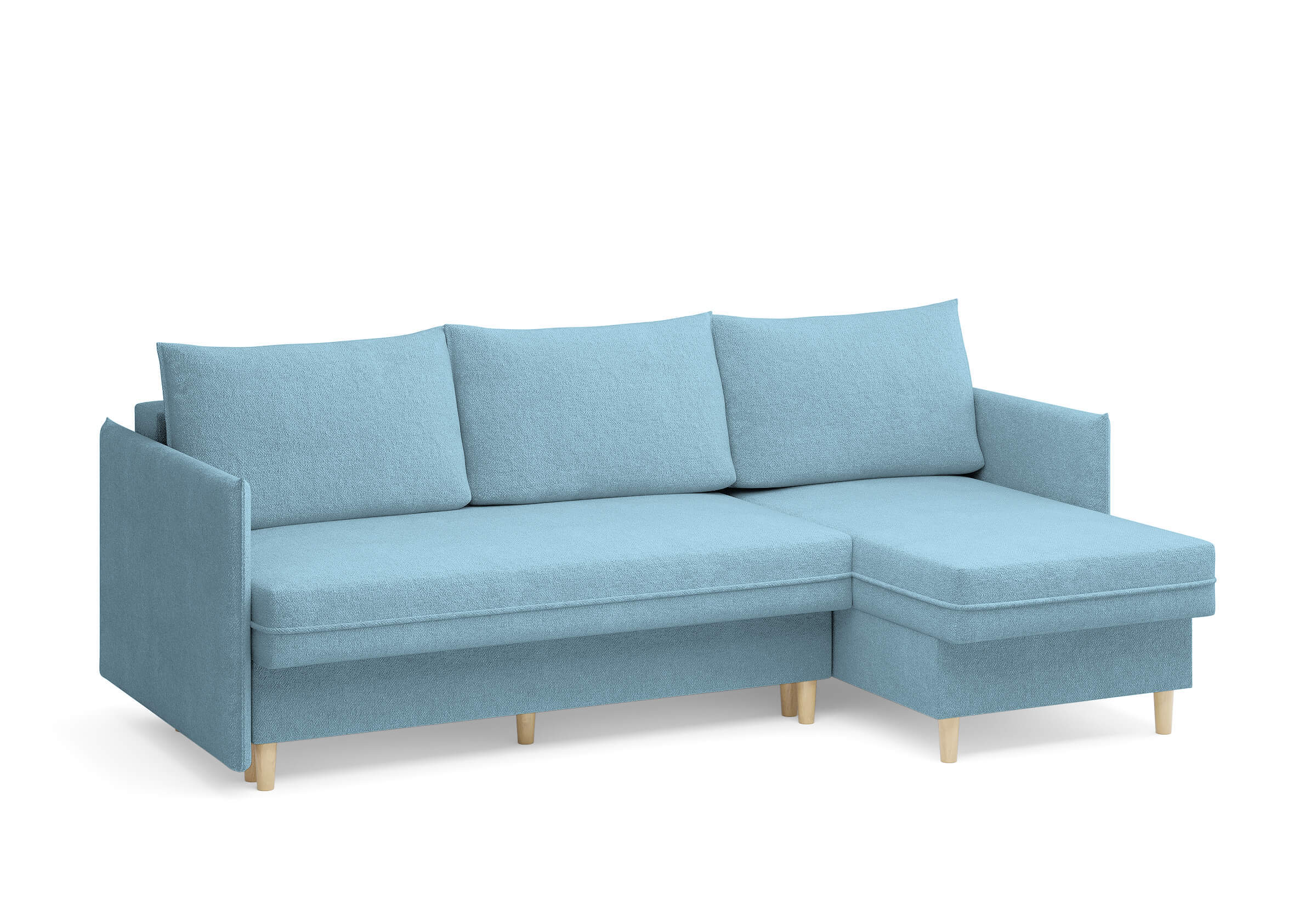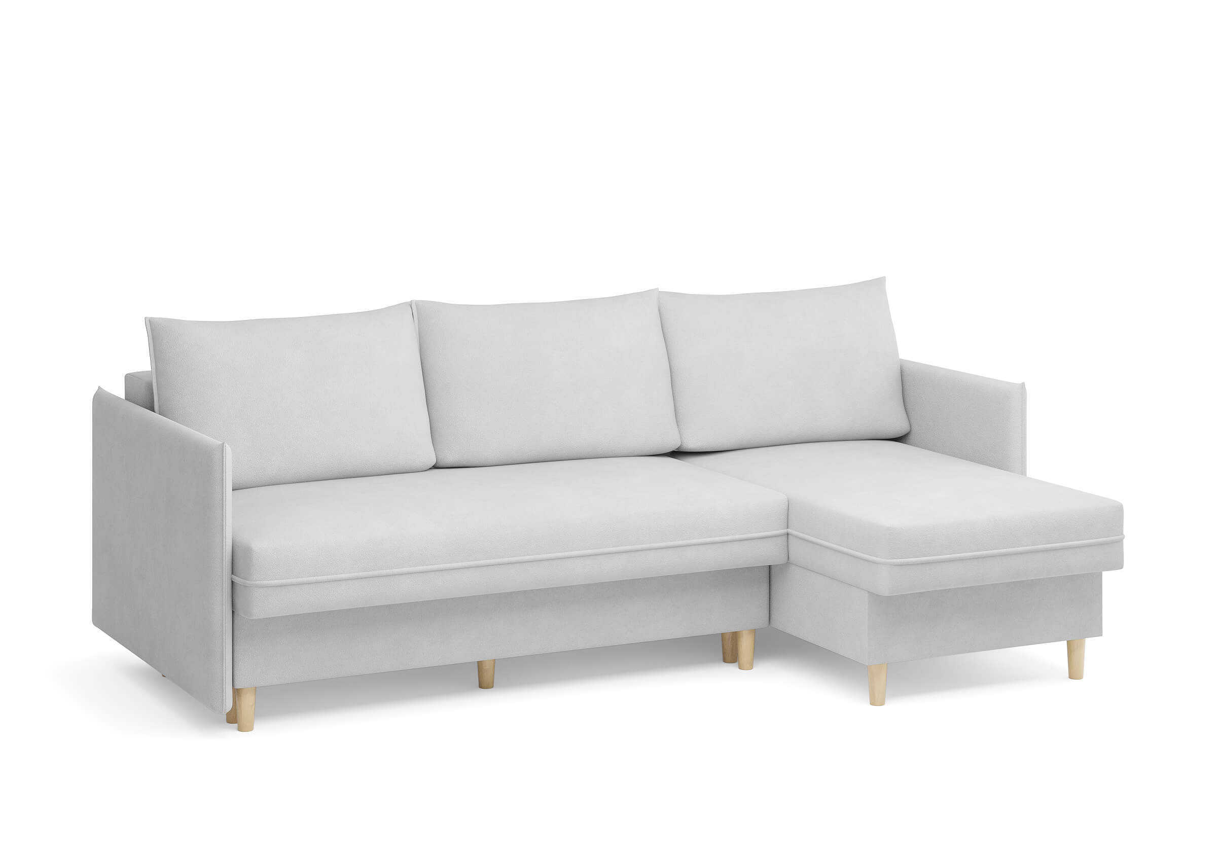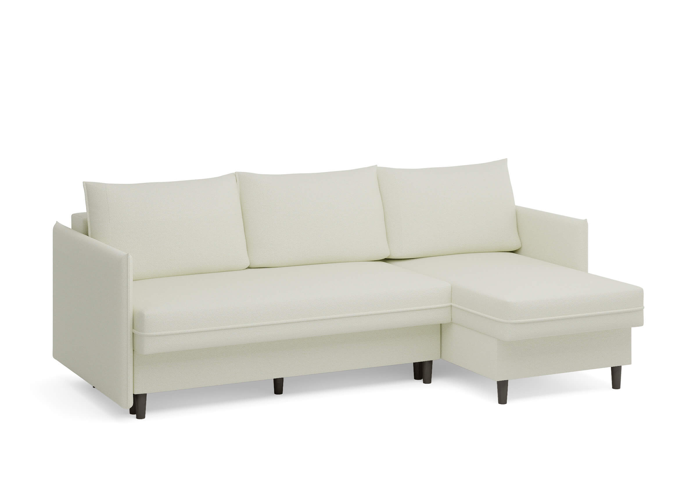 Угловой диван Rain — это идеальное сочетание лаконичного дизайна, продуманной эргономики и непревзойденного комфорта, воплощённое в сканди стиле. Четкие геометрические линии, минималистичные подлокотники и стильные деревянные опоры создают выразительный силуэт, который станет ключевым элементом вашей гостиной. Конструкция позволяет собрать конфигурацию под ваше пространство — левую или правую, — а встроенный бельевой короб обеспечивает удобное хранение постельного белья и подушек, не занимая лишнего места. Диван не только красив, но и практичен: независимый пружинный блок в сочетании с высокоэластичной пеной в составе матраса обеспечивает комфортное место для сна и отдыха. Практичная обивка и продуманная высота спинки защитят стены, сохраняя безупречный вид вашего интерьера. Кроме того, вы можете выбрать цвет и фактуру ткани из широкой палитры, чтобы диван идеально вписался в ваш интерьер.Размер спального места: 150-225