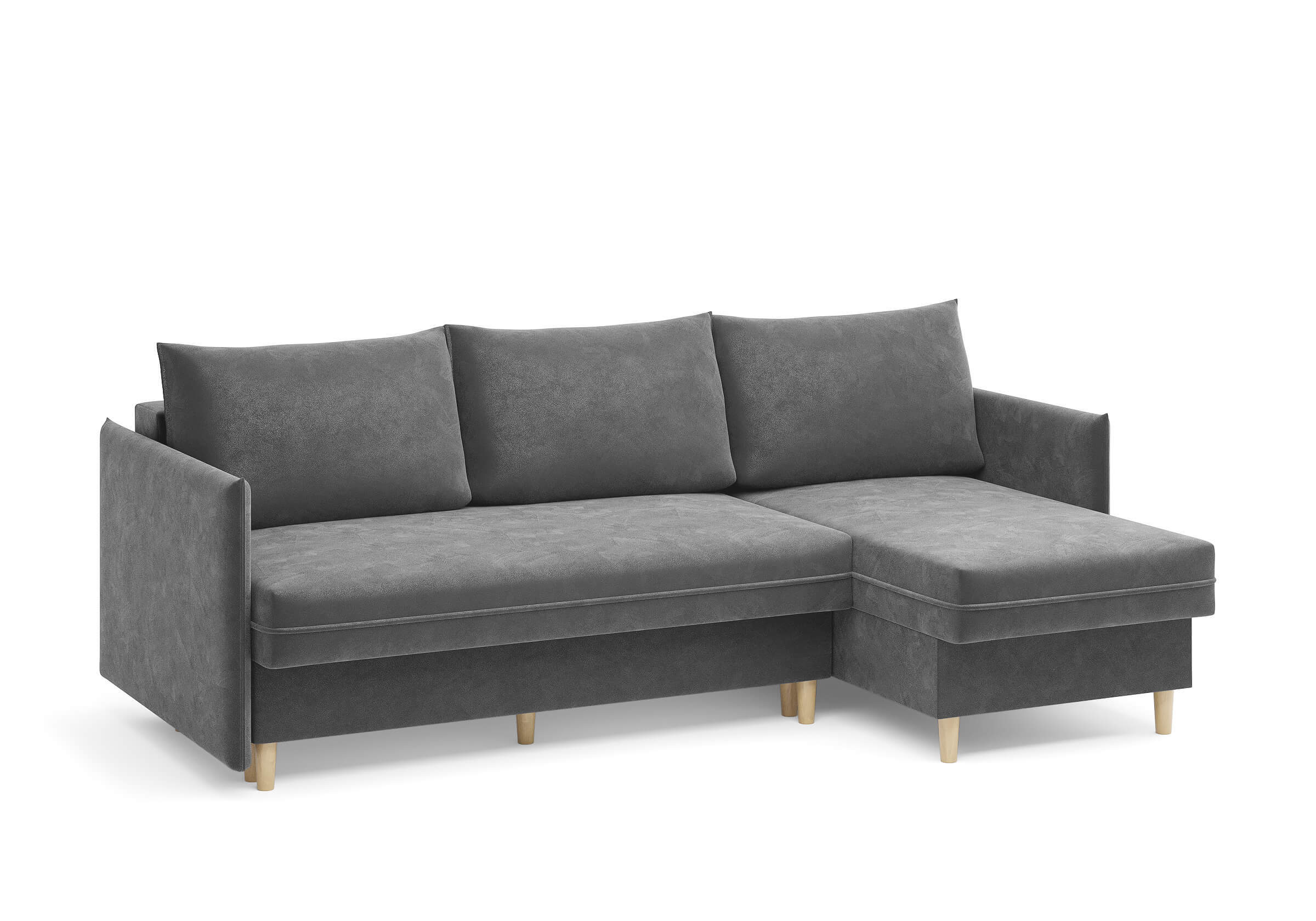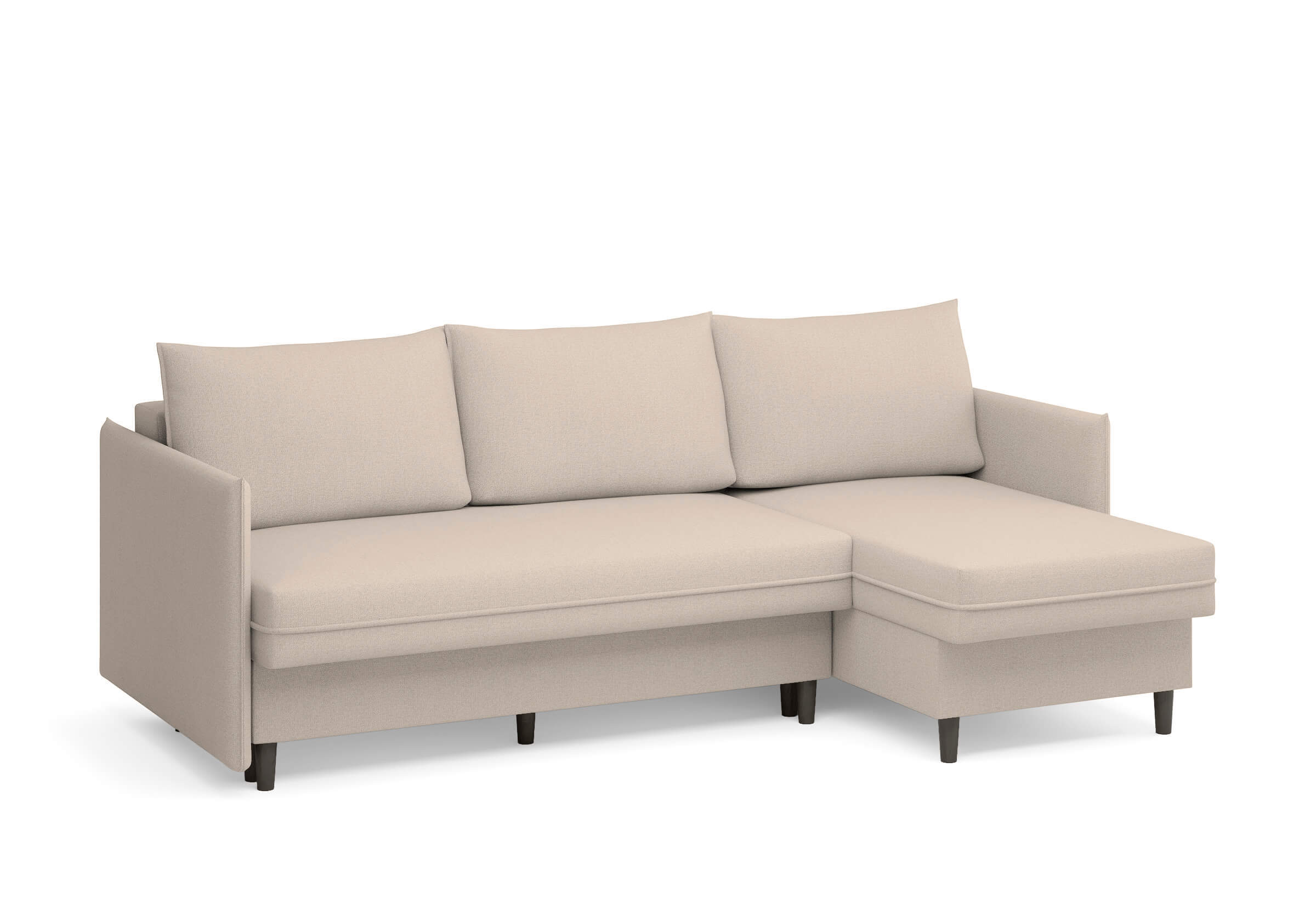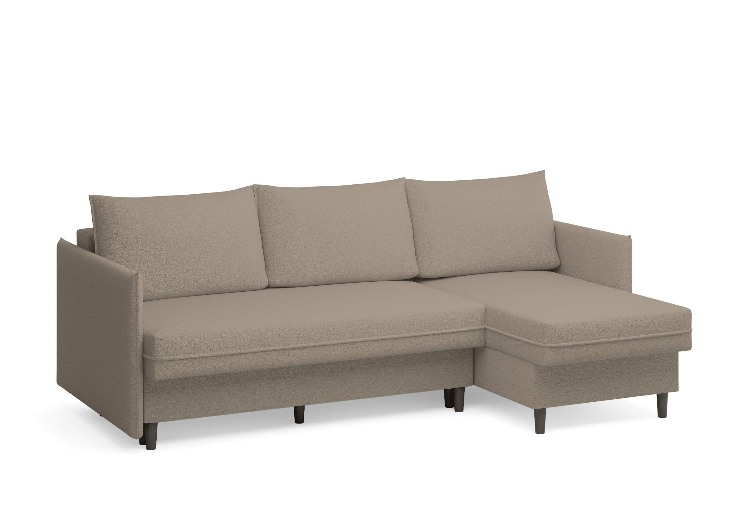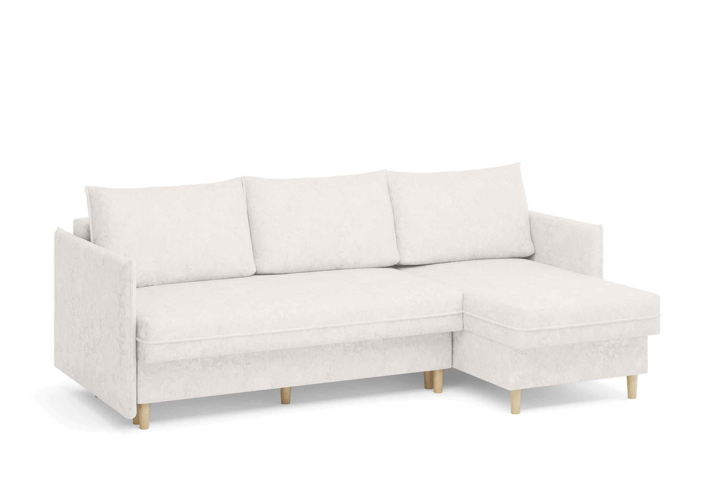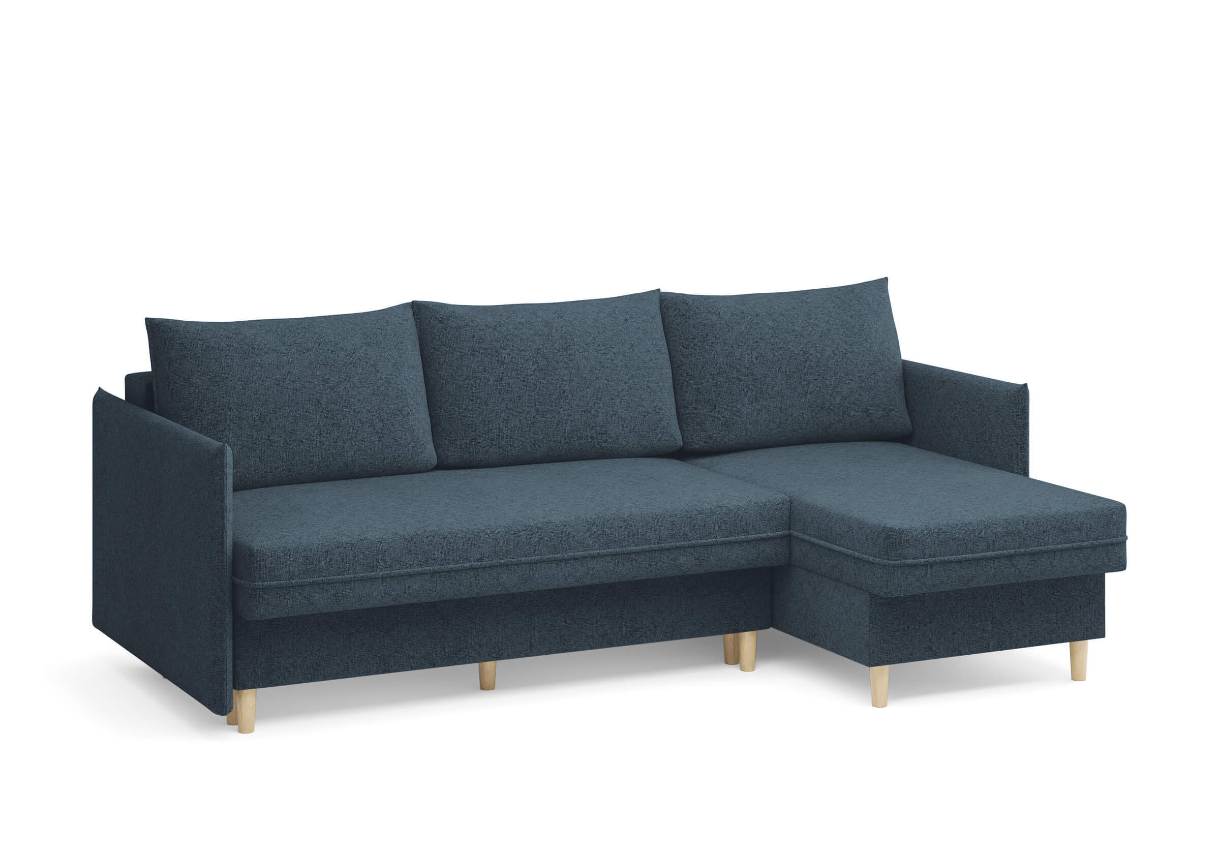 Угловой диван Rain — это идеальное сочетание лаконичного дизайна, продуманной эргономики и непревзойденного комфорта, воплощённое в сканди стиле. Четкие геометрические линии, минималистичные подлокотники и стильные деревянные опоры создают выразительный силуэт, который станет ключевым элементом вашей гостиной. Конструкция позволяет собрать конфигурацию под ваше пространство — левую или правую, — а встроенный бельевой короб обеспечивает удобное хранение постельного белья и подушек, не занимая лишнего места. Диван не только красив, но и практичен: независимый пружинный блок в сочетании с высокоэластичной пеной в составе матраса обеспечивает комфортное место для сна и отдыха. Практичная обивка и продуманная высота спинки защитят стены, сохраняя безупречный вид вашего интерьера. Кроме того, вы можете выбрать цвет и фактуру ткани из широкой палитры, чтобы диван идеально вписался в ваш интерьер.Размер спального места: 150-225