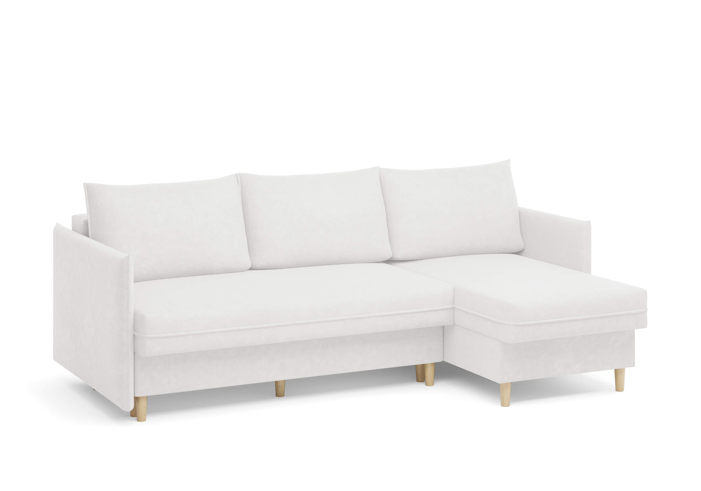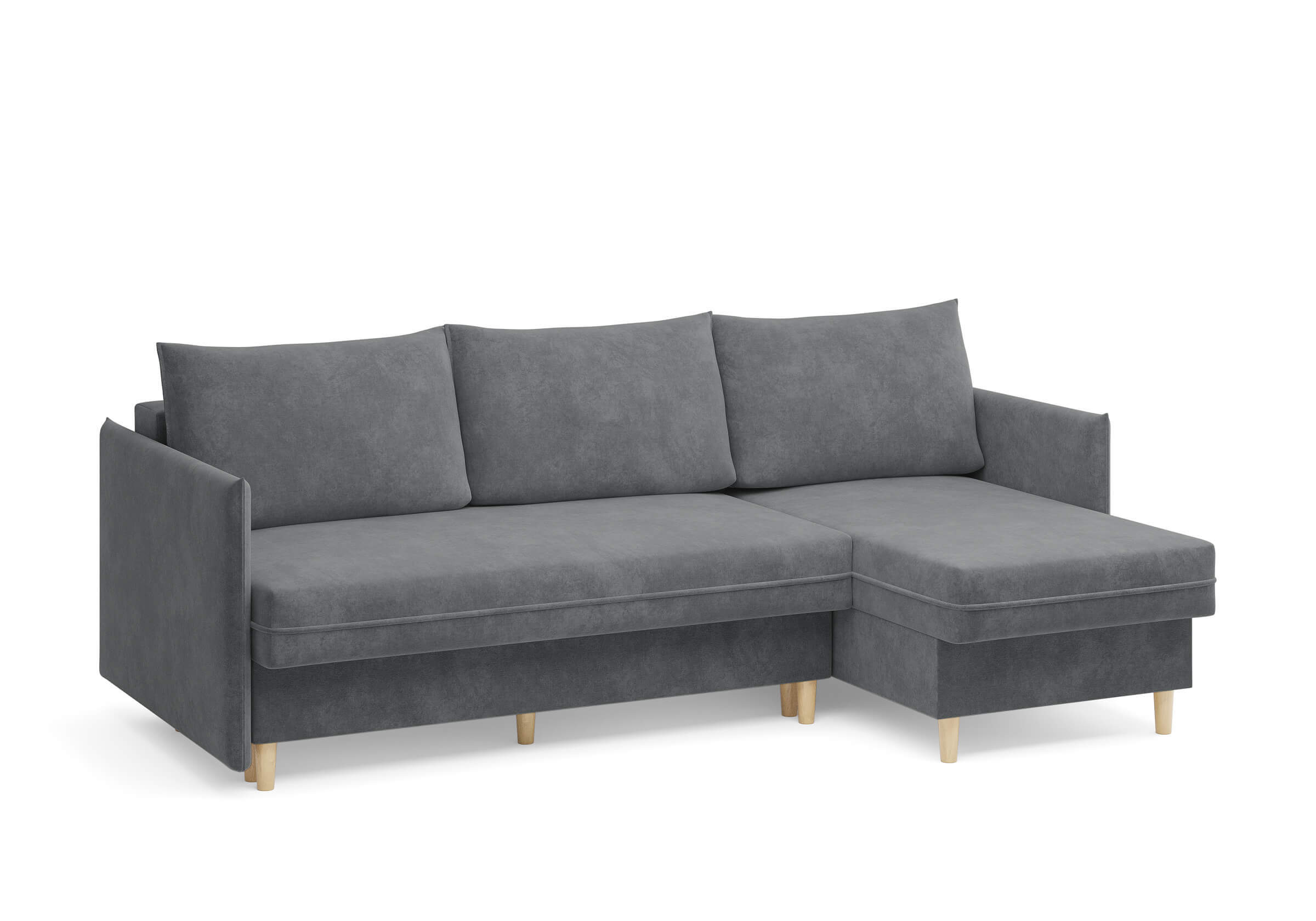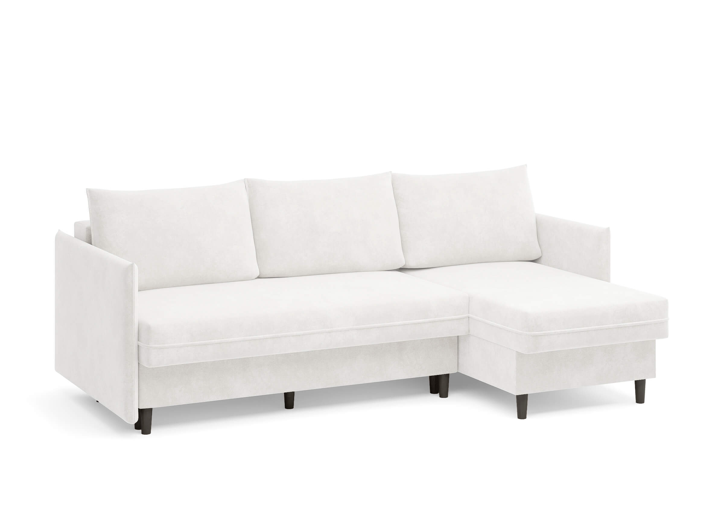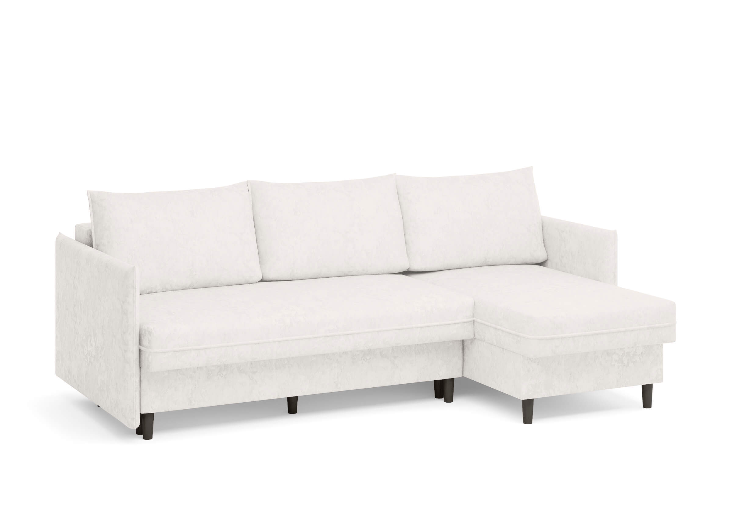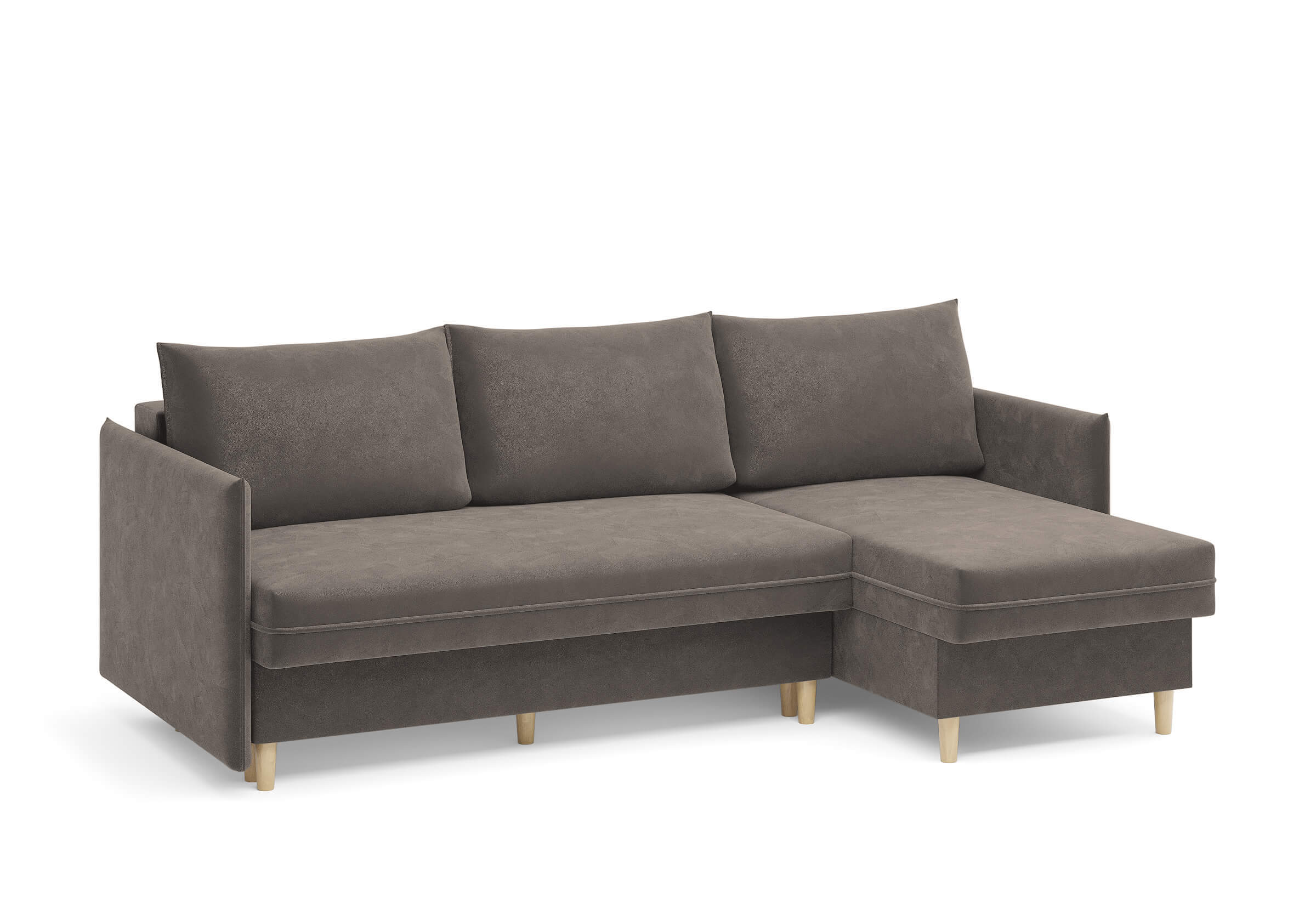 Угловой диван Rain — это идеальное сочетание лаконичного дизайна, продуманной эргономики и непревзойденного комфорта, воплощённое в сканди стиле. Четкие геометрические линии, минималистичные подлокотники и стильные деревянные опоры создают выразительный силуэт, который станет ключевым элементом вашей гостиной. Конструкция позволяет собрать конфигурацию под ваше пространство — левую или правую, — а встроенный бельевой короб обеспечивает удобное хранение постельного белья и подушек, не занимая лишнего места. Диван не только красив, но и практичен: независимый пружинный блок в сочетании с высокоэластичной пеной в составе матраса обеспечивает комфортное место для сна и отдыха. Практичная обивка и продуманная высота спинки защитят стены, сохраняя безупречный вид вашего интерьера. Кроме того, вы можете выбрать цвет и фактуру ткани из широкой палитры, чтобы диван идеально вписался в ваш интерьер.Размер спального места: 150-225