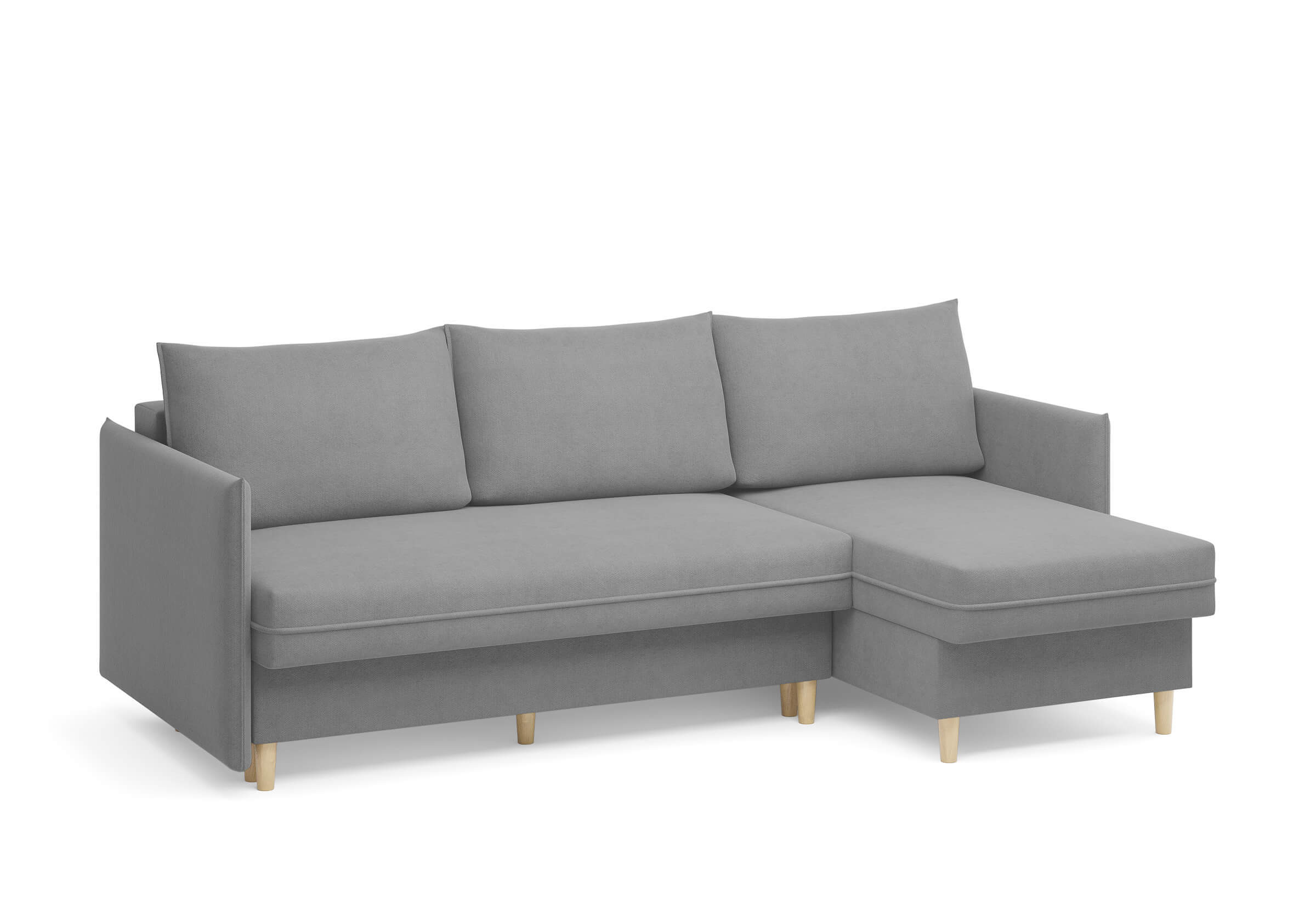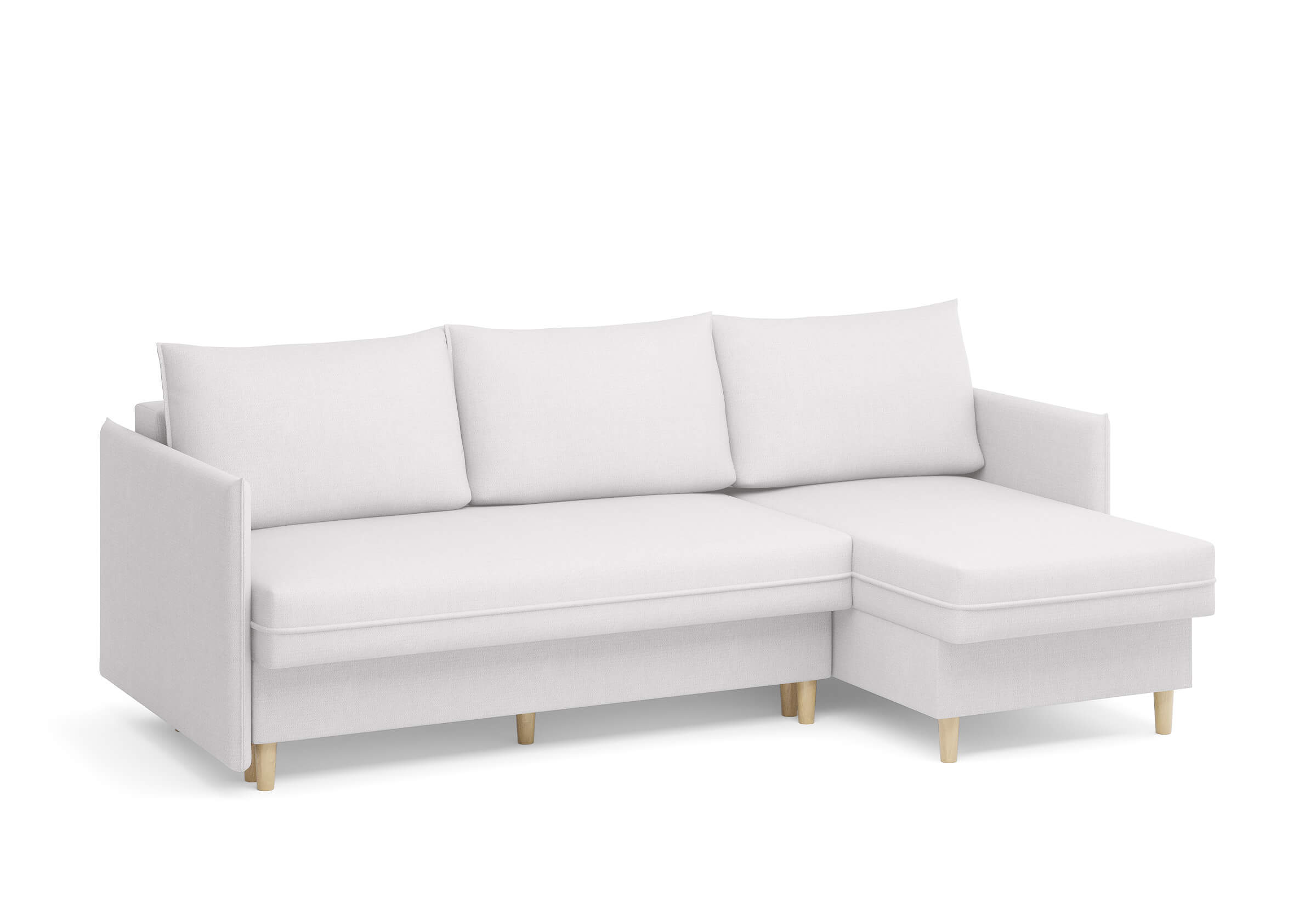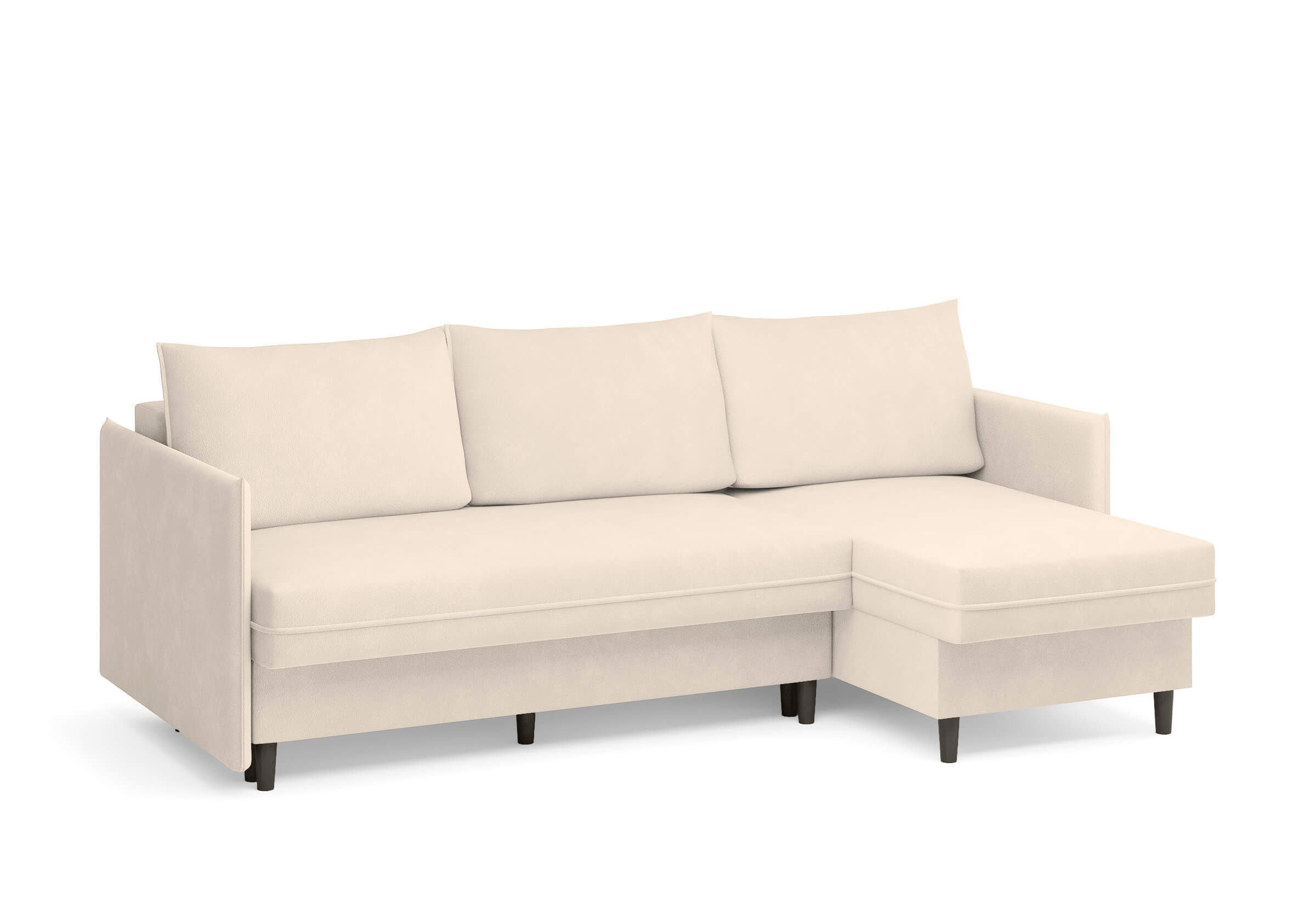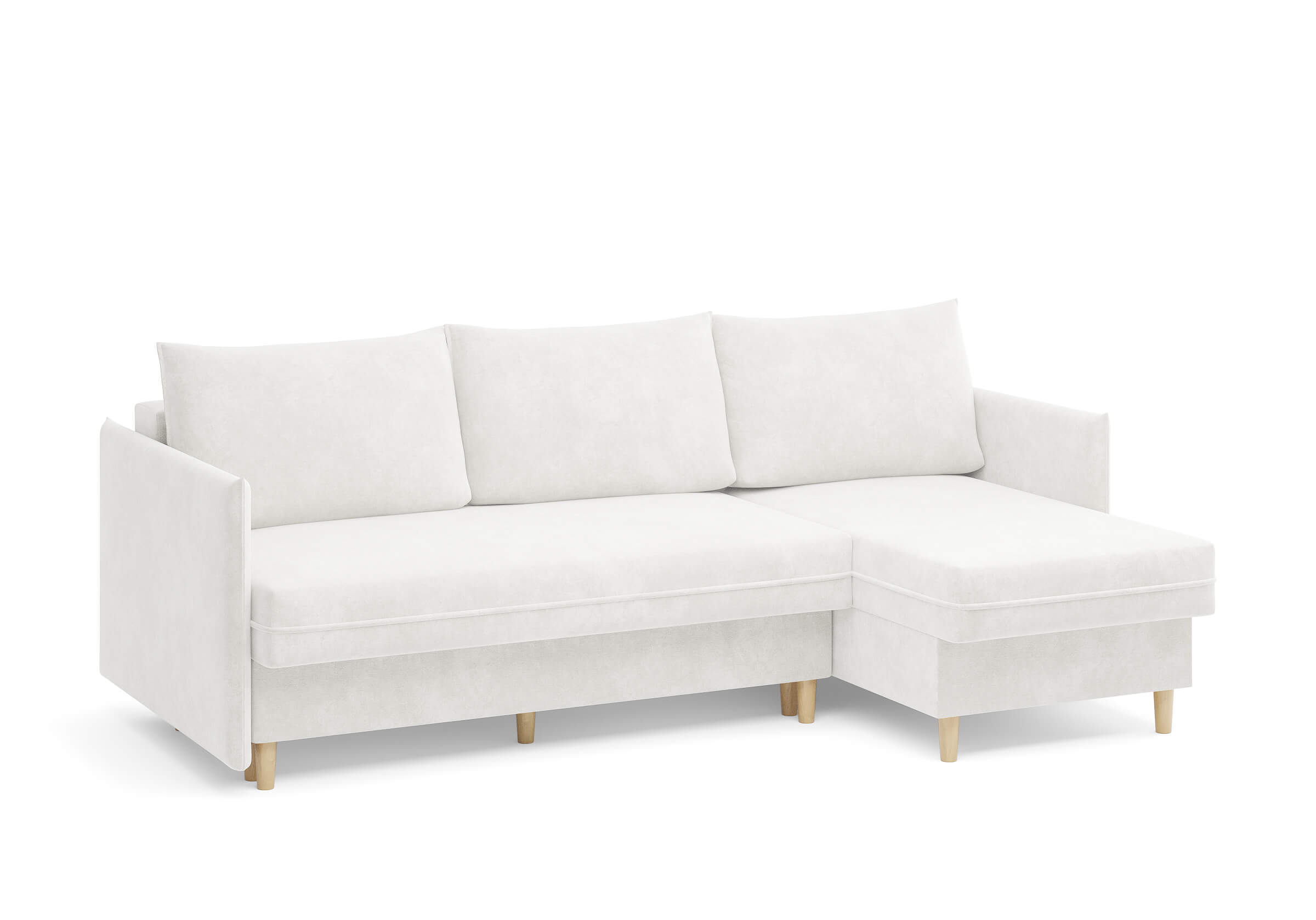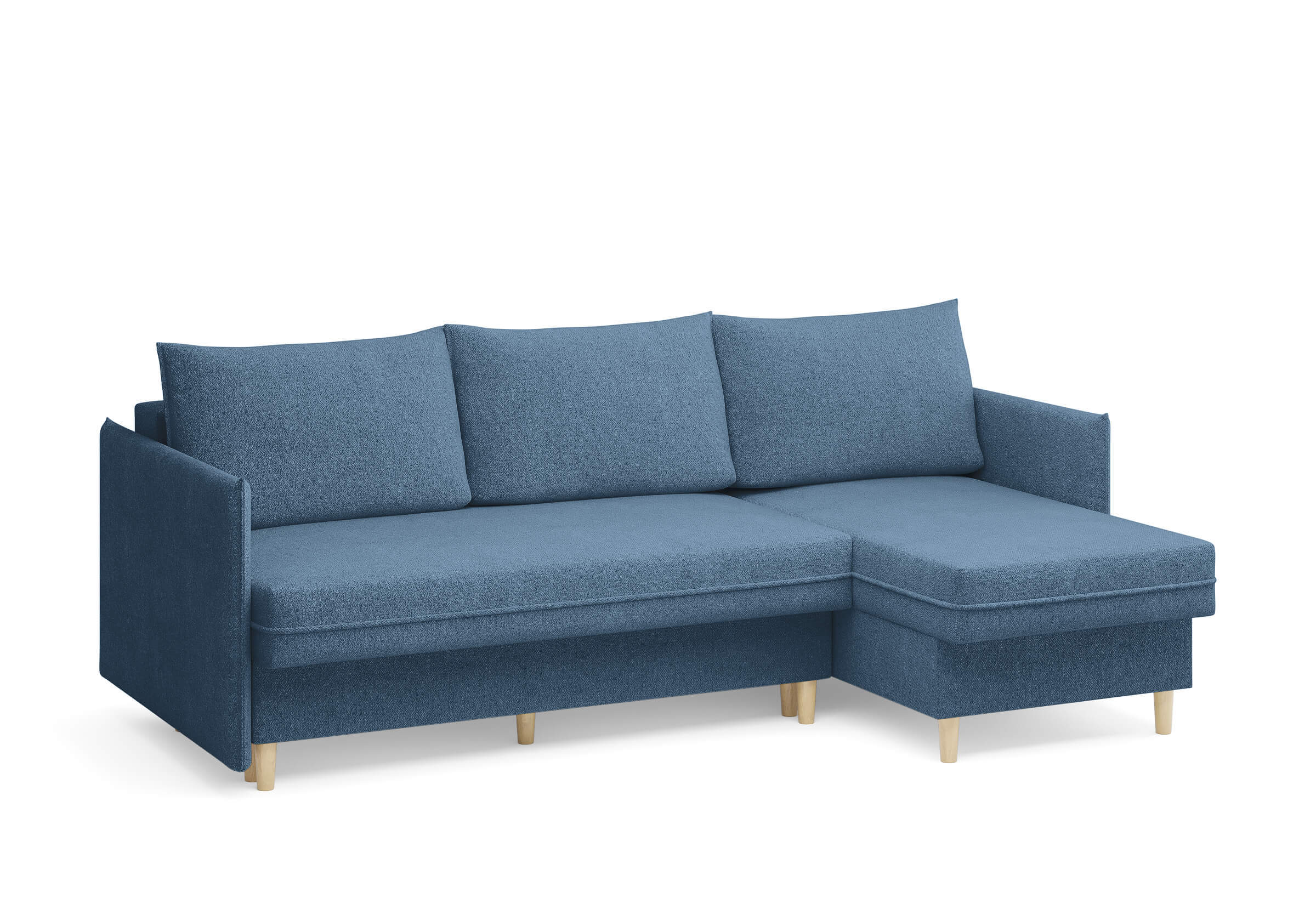 Угловой диван Rain — это идеальное сочетание лаконичного дизайна, продуманной эргономики и непревзойденного комфорта, воплощённое в сканди стиле. Четкие геометрические линии, минималистичные подлокотники и стильные деревянные опоры создают выразительный силуэт, который станет ключевым элементом вашей гостиной. Конструкция позволяет собрать конфигурацию под ваше пространство — левую или правую, — а встроенный бельевой короб обеспечивает удобное хранение постельного белья и подушек, не занимая лишнего места. Диван не только красив, но и практичен: независимый пружинный блок в сочетании с высокоэластичной пеной в составе матраса обеспечивает комфортное место для сна и отдыха. Практичная обивка и продуманная высота спинки защитят стены, сохраняя безупречный вид вашего интерьера. Кроме того, вы можете выбрать цвет и фактуру ткани из широкой палитры, чтобы диван идеально вписался в ваш интерьер.Размер спального места: 150-225