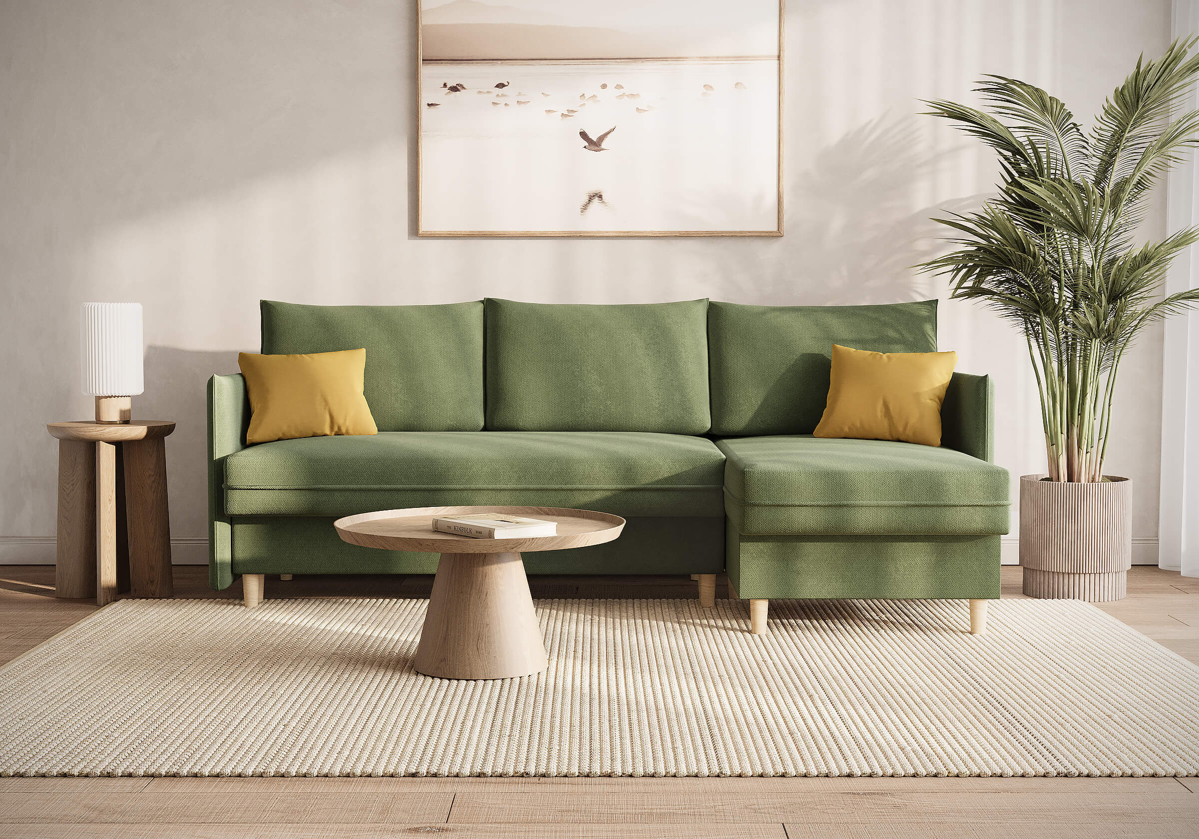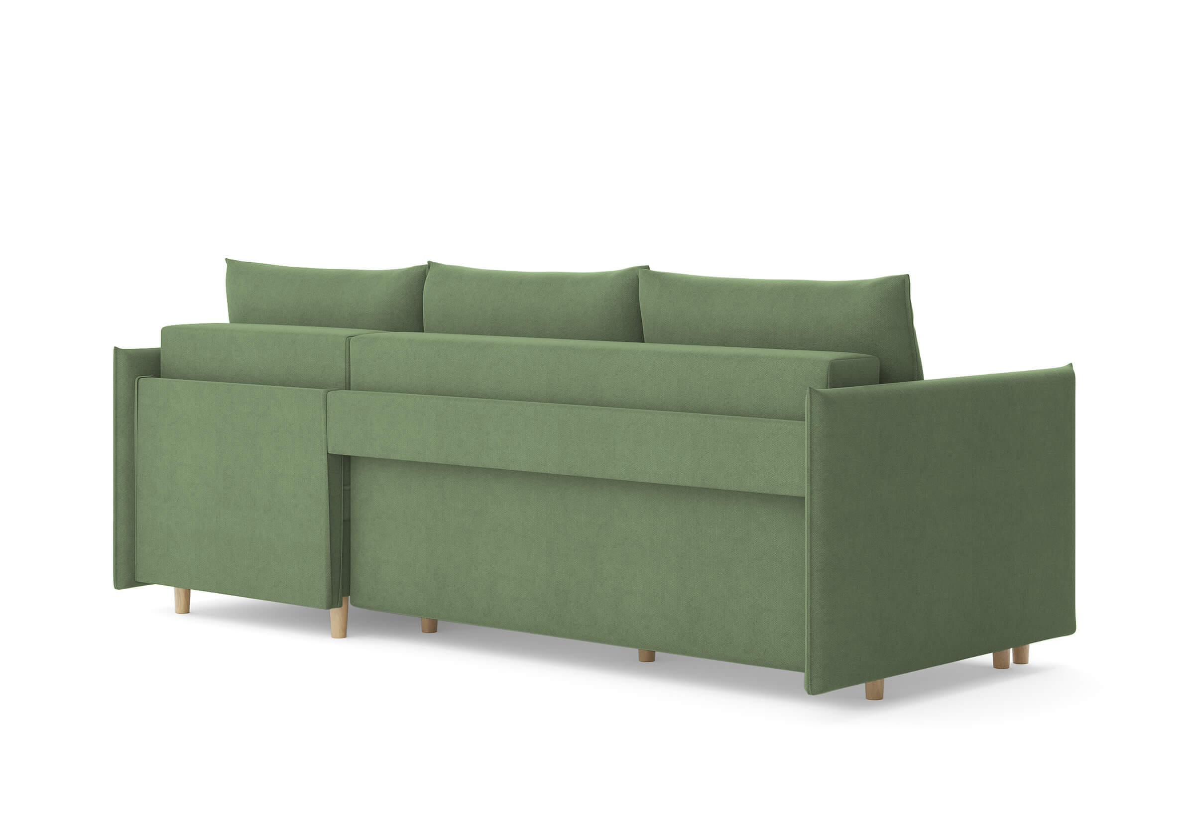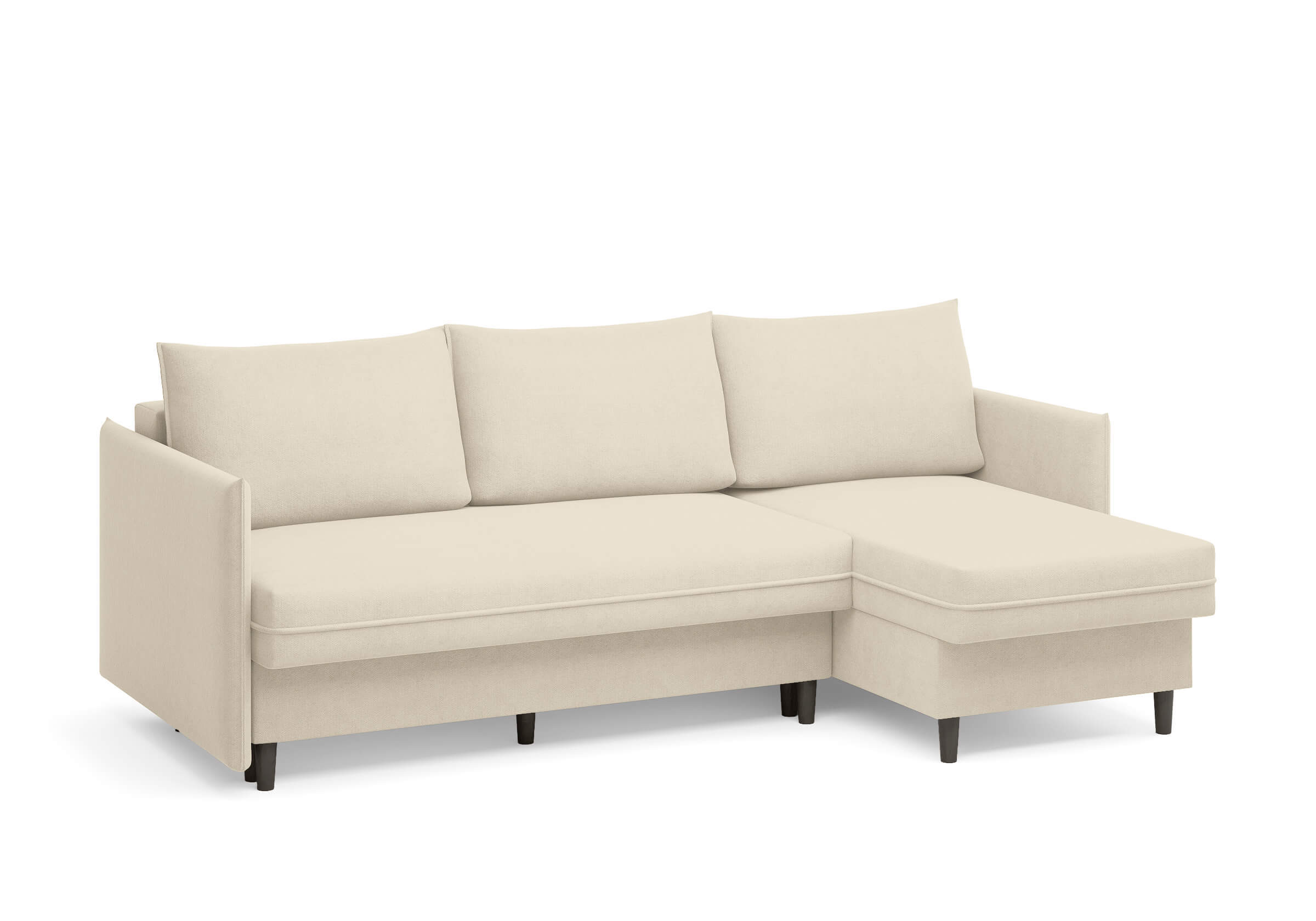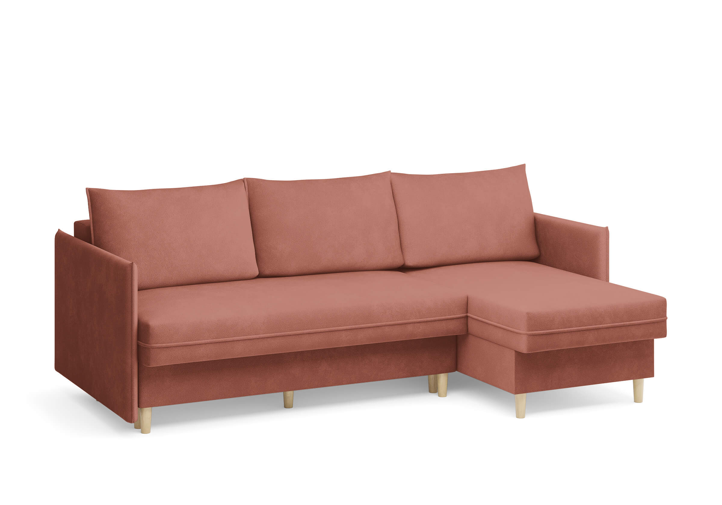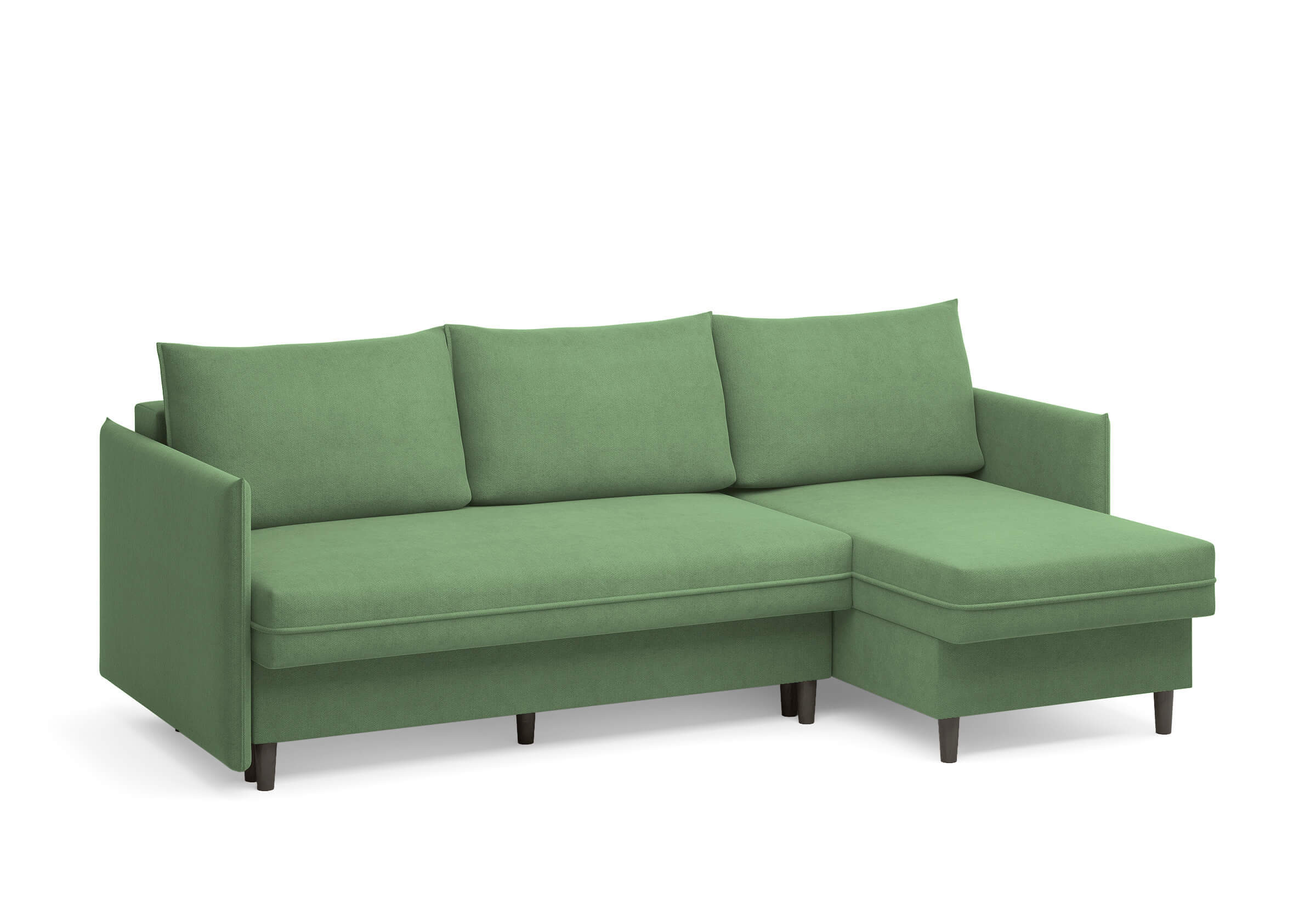 Угловой диван Rain — это идеальное сочетание лаконичного дизайна, продуманной эргономики и непревзойденного комфорта, воплощённое в сканди стиле. Четкие геометрические линии, минималистичные подлокотники и стильные деревянные опоры создают выразительный силуэт, который станет ключевым элементом вашей гостиной. Конструкция позволяет собрать конфигурацию под ваше пространство — левую или правую, — а встроенный бельевой короб обеспечивает удобное хранение постельного белья и подушек, не занимая лишнего места. Диван не только красив, но и практичен: независимый пружинный блок в сочетании с высокоэластичной пеной в составе матраса обеспечивает комфортное место для сна и отдыха. Практичная обивка и продуманная высота спинки защитят стены, сохраняя безупречный вид вашего интерьера. Кроме того, вы можете выбрать цвет и фактуру ткани из широкой палитры, чтобы диван идеально вписался в ваш интерьер.Размер спального места: 150-225