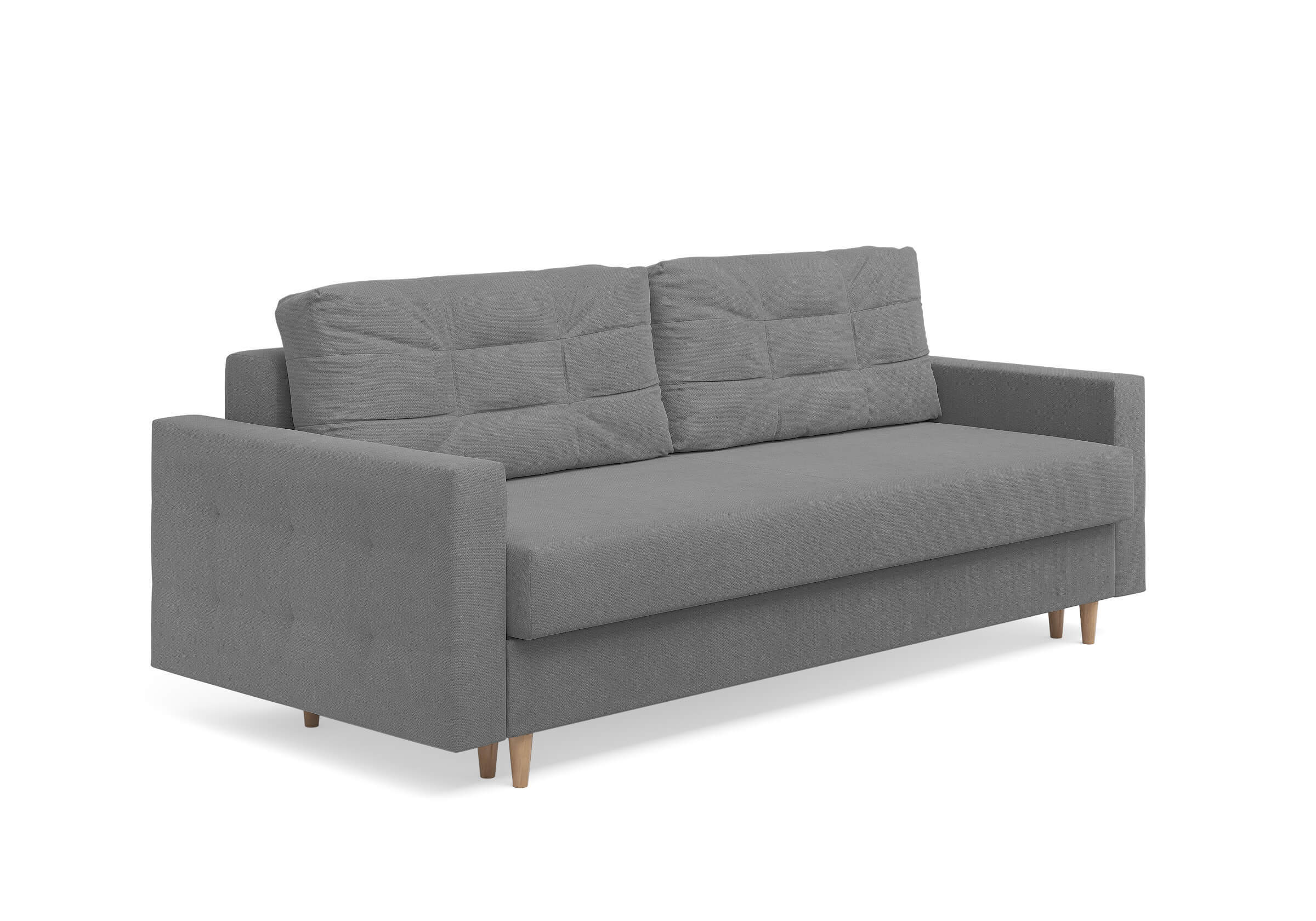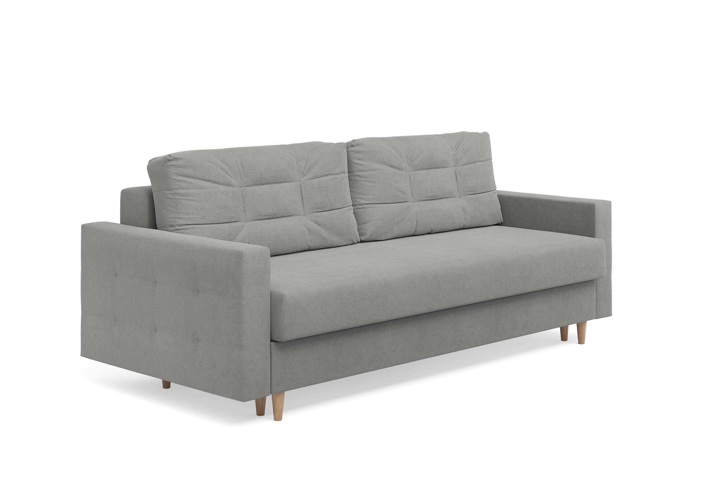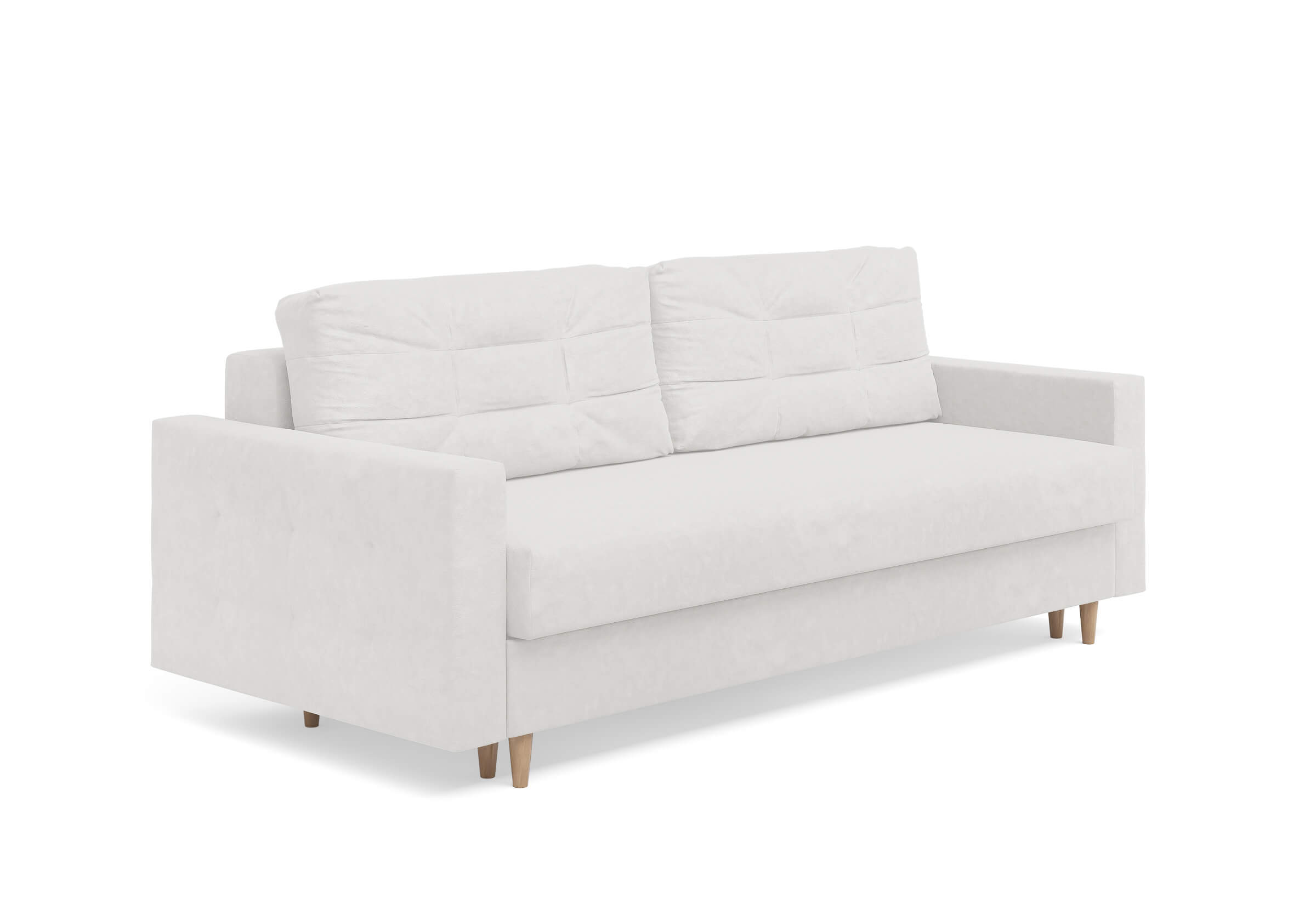 Современный диван Scandy с механизмом трансформации «Пантограф». В основе дивана полноценный ортопедический матрас средней жесткости на независимом пружинном блоке. Комфортная глубина и высота сиденья обеспечит ежедневный комфорт. Задняя спинка защищает от прикосновения со стеной во сне, а стену – от возможных повреждений и загрязнений. В основе мягких подушек – микс наполнителей: поролоновая крошка защищает от деформации, а синтетическое волокно добавляет мягкость и упругость – для бережной поддержки спины. Подушки убираются во вместительный бельевой ящик с вентиляционным отверстием в разложенном состоянии дивана. Высокие элегантные опоры из древесины твердых пород упростят уборку и позволяют работать современным роботам-пылесосам.Размер спального места: 150-200