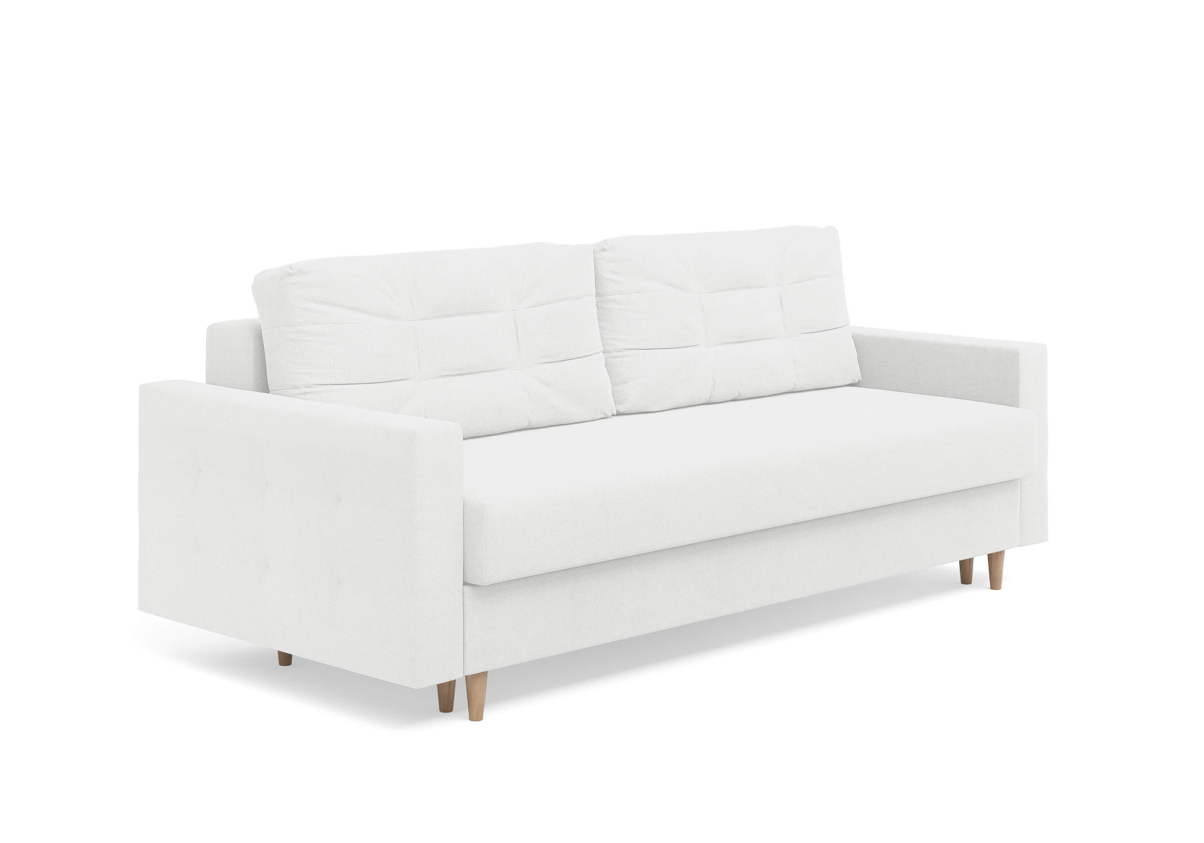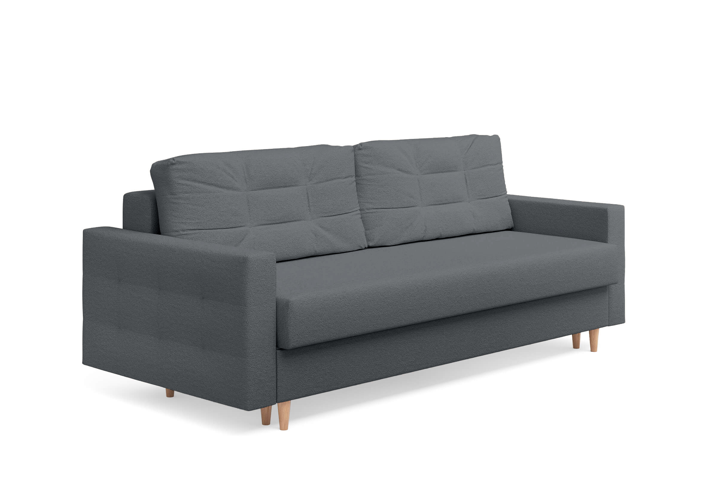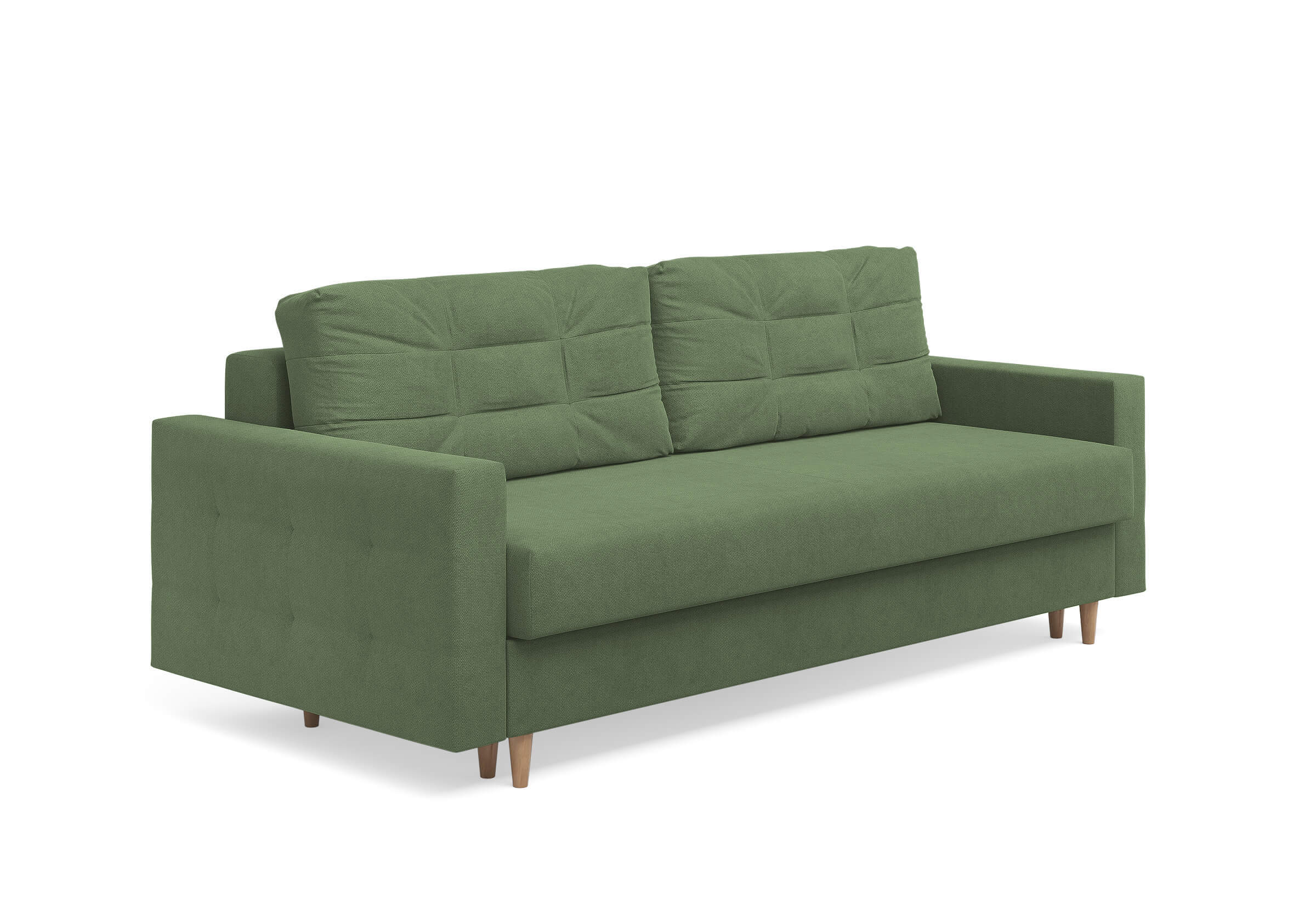Современный диван Scandy с механизмом трансформации «Пантограф». В основе дивана полноценный ортопедический матрас средней жесткости на независимом пружинном блоке. Комфортная глубина и высота сиденья обеспечит ежедневный комфорт. Задняя спинка защищает от прикосновения со стеной во сне, а стену – от возможных повреждений и загрязнений. В основе мягких подушек – микс наполнителей: поролоновая крошка защищает от деформации, а синтетическое волокно добавляет мягкость и упругость – для бережной поддержки спины. Подушки убираются во вместительный бельевой ящик с вентиляционным отверстием в разложенном состоянии дивана. Высокие элегантные опоры из древесины твердых пород упростят уборку и позволяют работать современным роботам-пылесосам.Размер спального места: 150-200