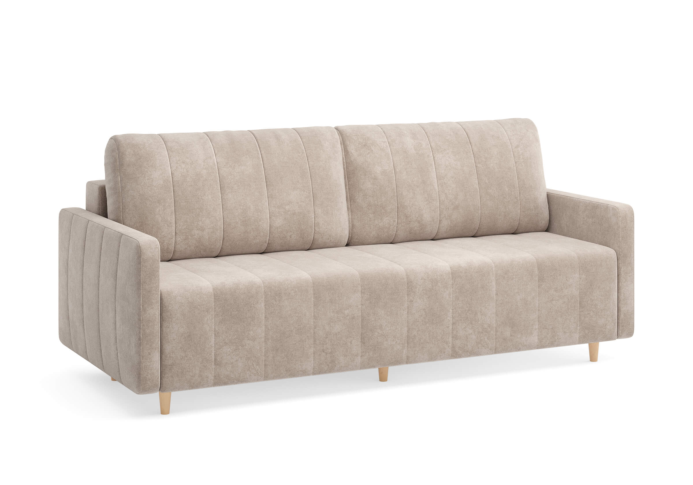 Современный дизайнерский диван прямой с вертикальной стежкой на высоких опорах станет прекрасной частью интерьера гостиной и идеальным выбором для тех, кто ценит чистоту линий, функциональность и уют. Декоративные подлокотники придают диван прямойу законченный вид, благодаря чему его можно разместить как у стены, так и в центре комнаты. диван прямой оснащён шагающим механизмом трансформации «тик-так», который сохранит напольное покрытие. В диван прямойе предусмотрен вместительный бельевой ящик для оптимального использования пространства. А матрас средней жёсткости на независимом пружинном блоке прекрасно подходит как для комфортного отдыха, так и для правильного сна