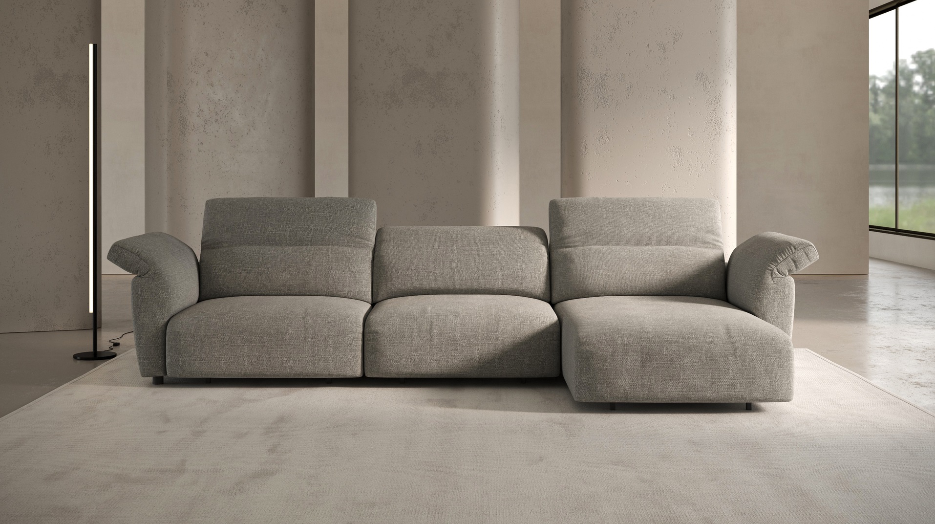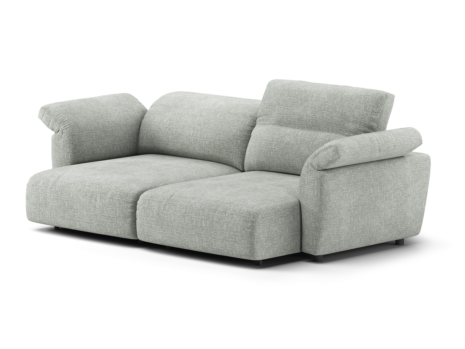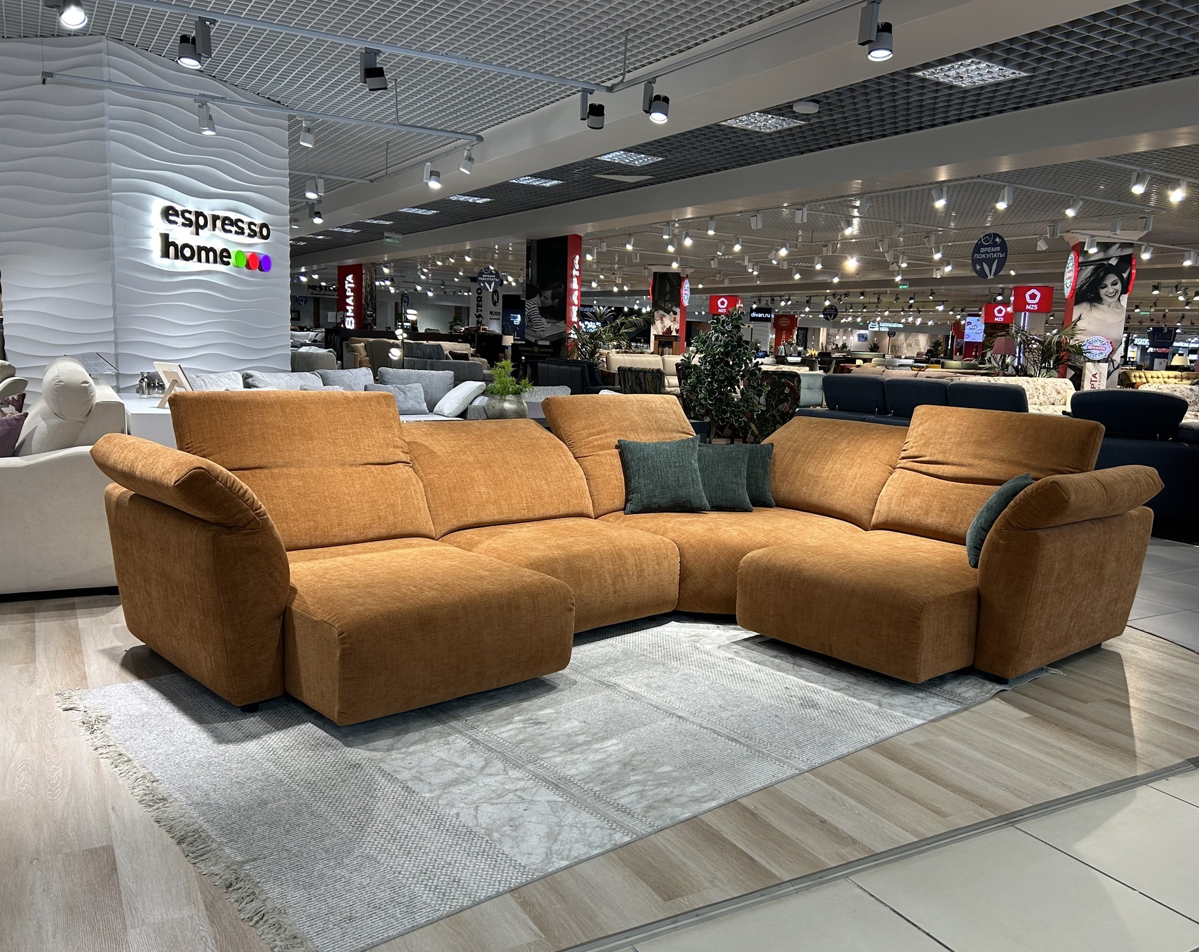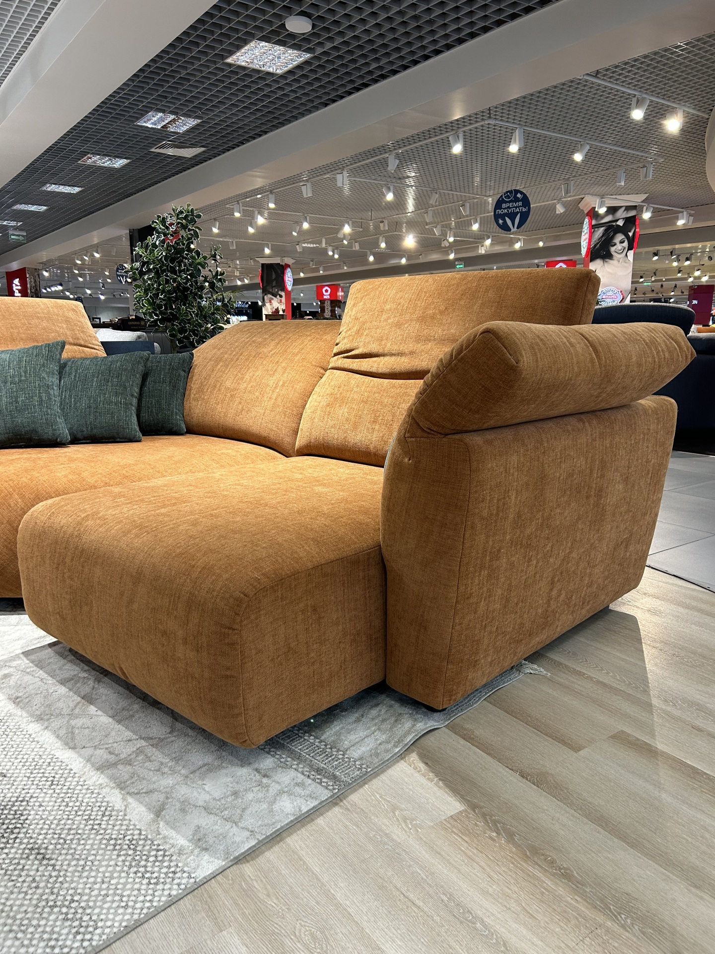 Диван можно ставить в центр комнаты — подголовники легко опускаются. Но главная фишка — выдвигающиеся сиденья! Уникальный механизм трансформации выезжает вперед на 35 см, меняя глубину и формат посадки.