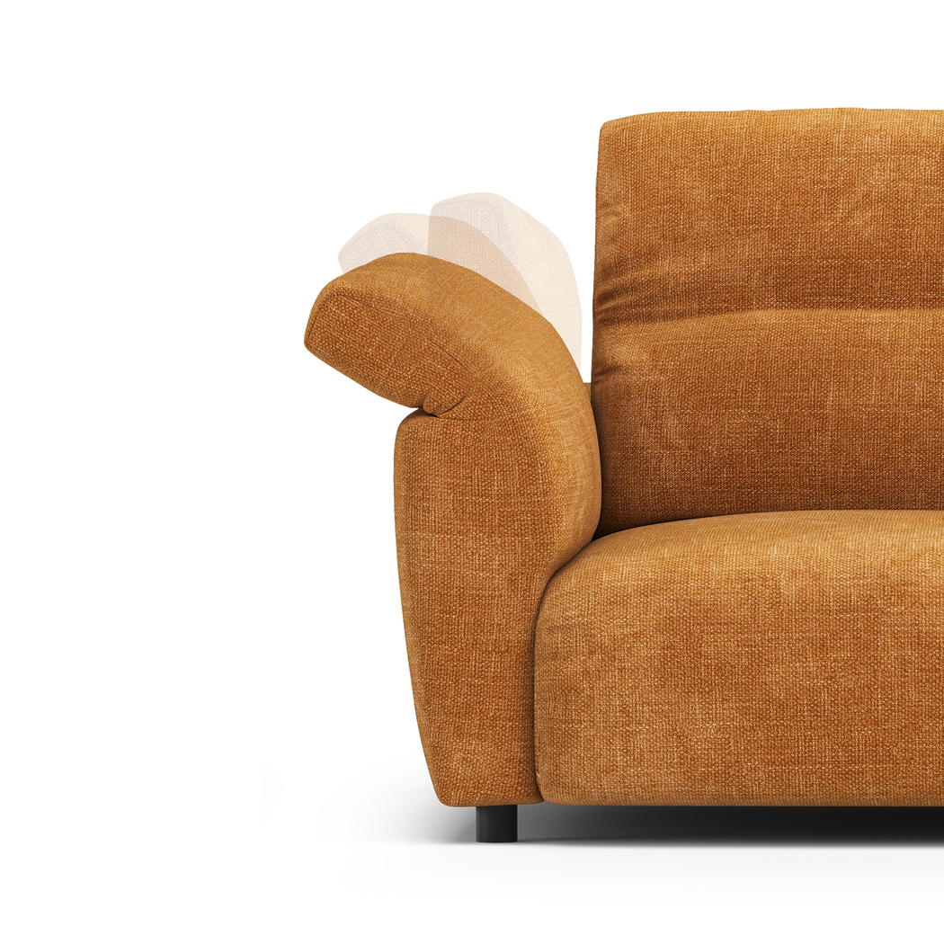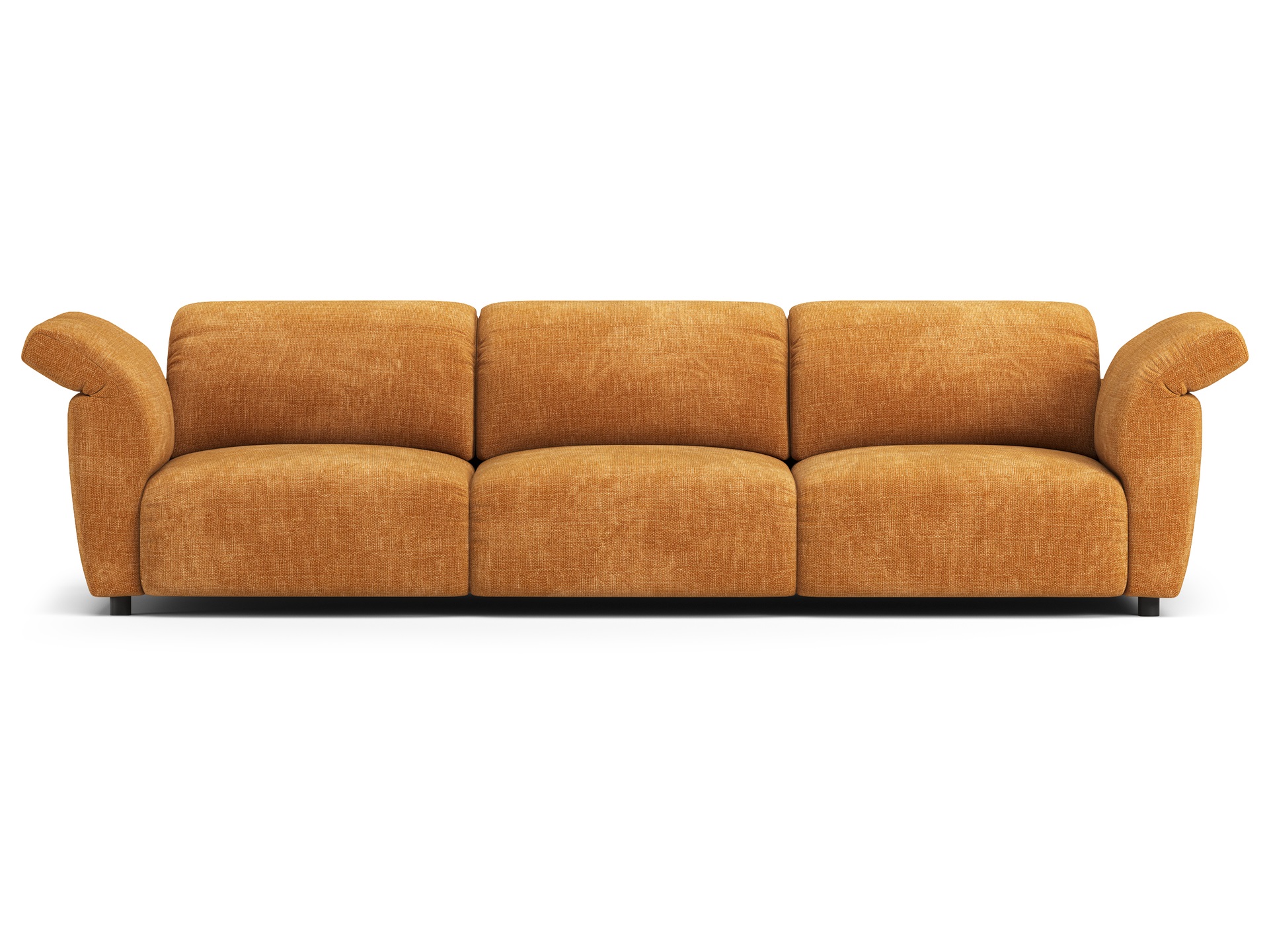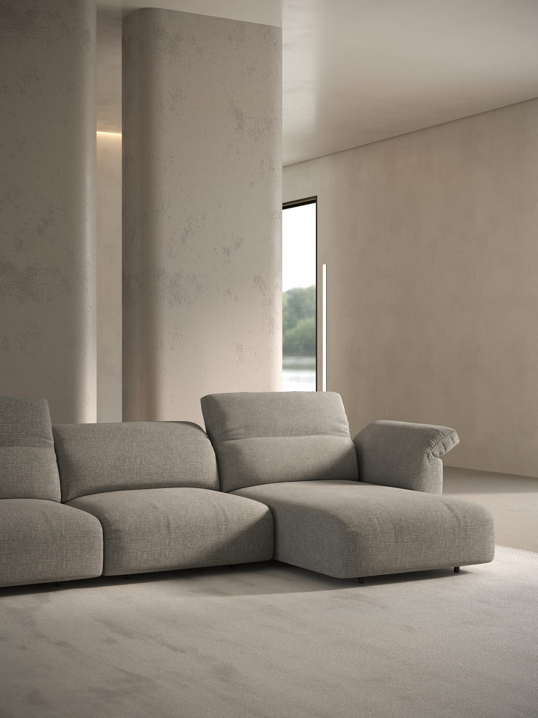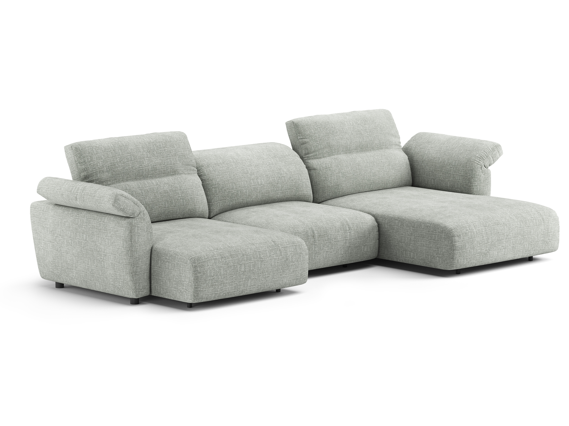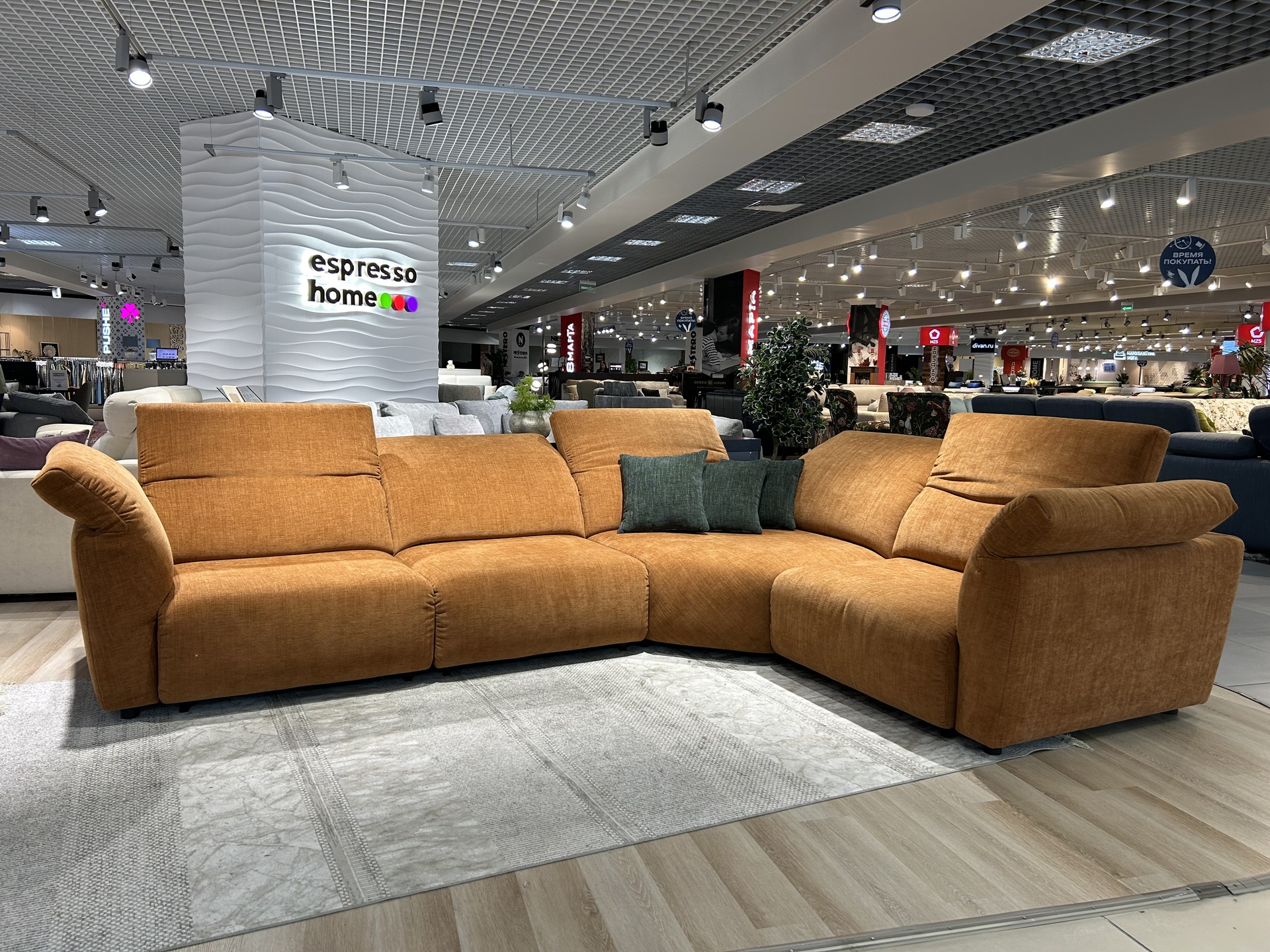 Диван можно ставить в центр комнаты — подголовники легко опускаются. Но главная фишка — выдвигающиеся сиденья! Уникальный механизм трансформации выезжает вперед на 35 см, меняя глубину и формат посадки.
