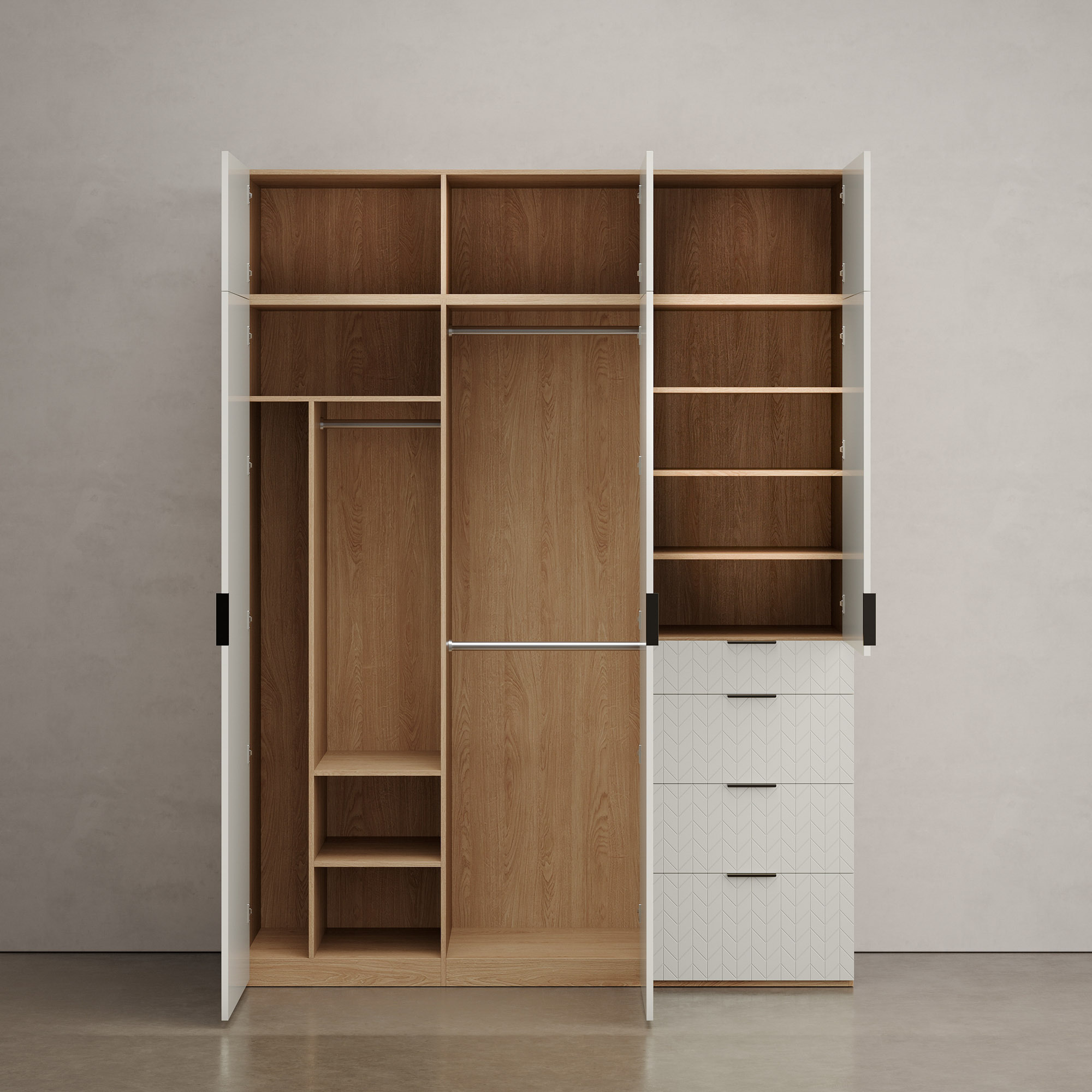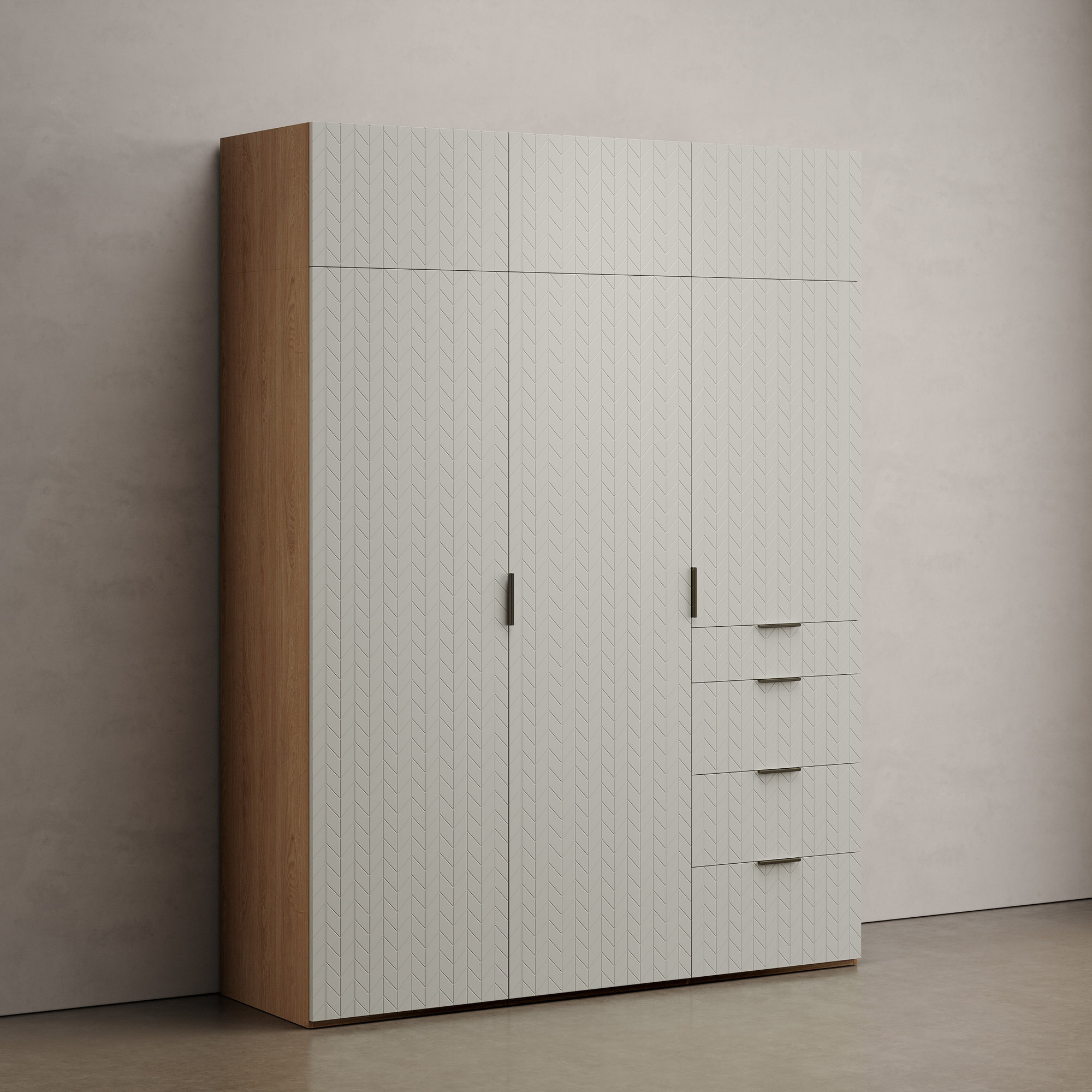 Модульная гардеробная система GARDA — стильное и функциональное решение для вашего дома. Продуманная конструкция изделия позволит систематизировать гардероб и навести порядок в доме. Шкаф состоит из отдельных модулей, которые легко комбинировать между собой — выбирайте нужное наполнение, размеры и меняйте их расположение в зависимости от потребностей. Лаконичный дизайн, обширная цветовая палитра и фасады, декорированные гравировкой, помогут изделию достойно вписаться в современный интерьер, не привлекая к себе лишнего внимания. Высокое качество и удобство пользования сделают шкаф незаменимым элементом вашего дома. Особенности коллекции: – Большой размерный ряд модулей, разнообразное внутреннее наполнение секций (полки, штанги, внутренние и внешние выдвижные ящики); – Необходимая высота гардеробной системы достигается с помощью модулей- антресолей, оснащенных функцией Push-to-Open (открывание с помощью нажатия); – По запросу возможно изменение стандартных модульных размеров (для получения нужной величины гардеробной системы); – Корпус модулей и внутреннее наполнение выполнены из ЛДСП EGGER c текстурой дерева (3 цвета) или без текстуры (2 цвета); – Фасады выполнены из МДФ и доступны в отделке эмалью (30 цветов) с гравировкой или без нее, а так же в отделке натуральным шпоном дуба в тонировке; – Доступны декоративные детали, которые могут применяться для обрамления изделия (всех сторон либо частично, в зависимости от задачи) или в случае установки гардеробной системы в нишу; – Все фасады регулируются в трех плоскостях для выравнивания узора гравировки; – Удлиненные ручки-профили выполнены из алюминия и доступны в семи отделках; – Немецкие петли и бесшумные направляющие скрытого монтажа с доводчиками от Hettich; – Предусмотрено крепление к стене.