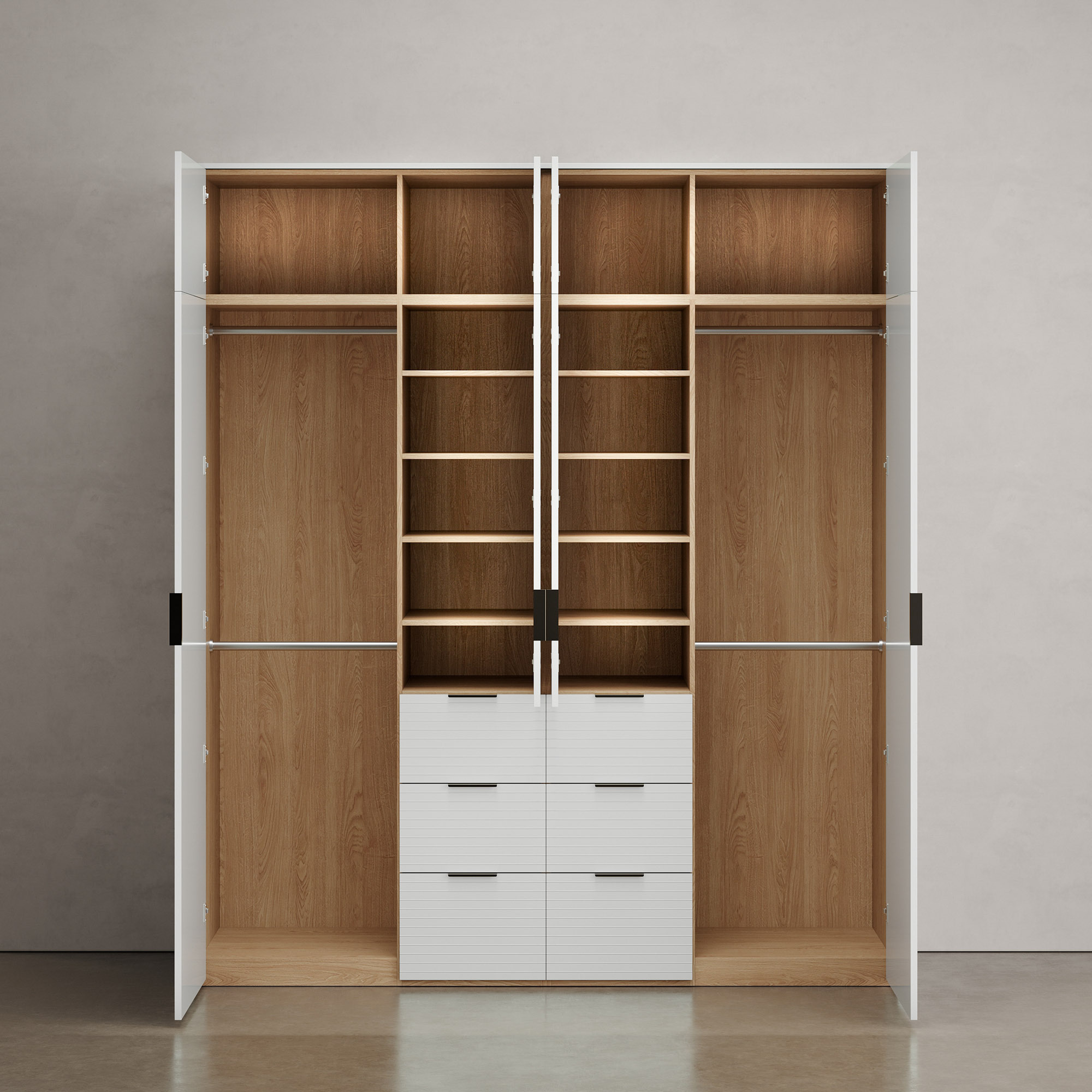 – Необходимая высота гардеробной системы достигается с помощью модулей-