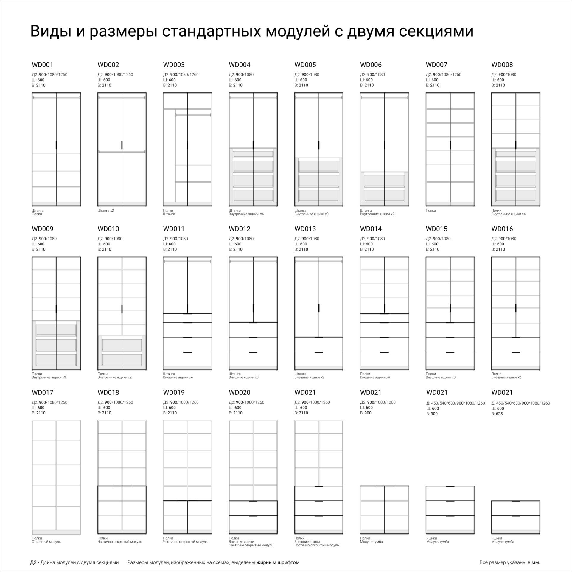 – Большой размерный ряд модулей, разнообразное внутреннее наполнение секций