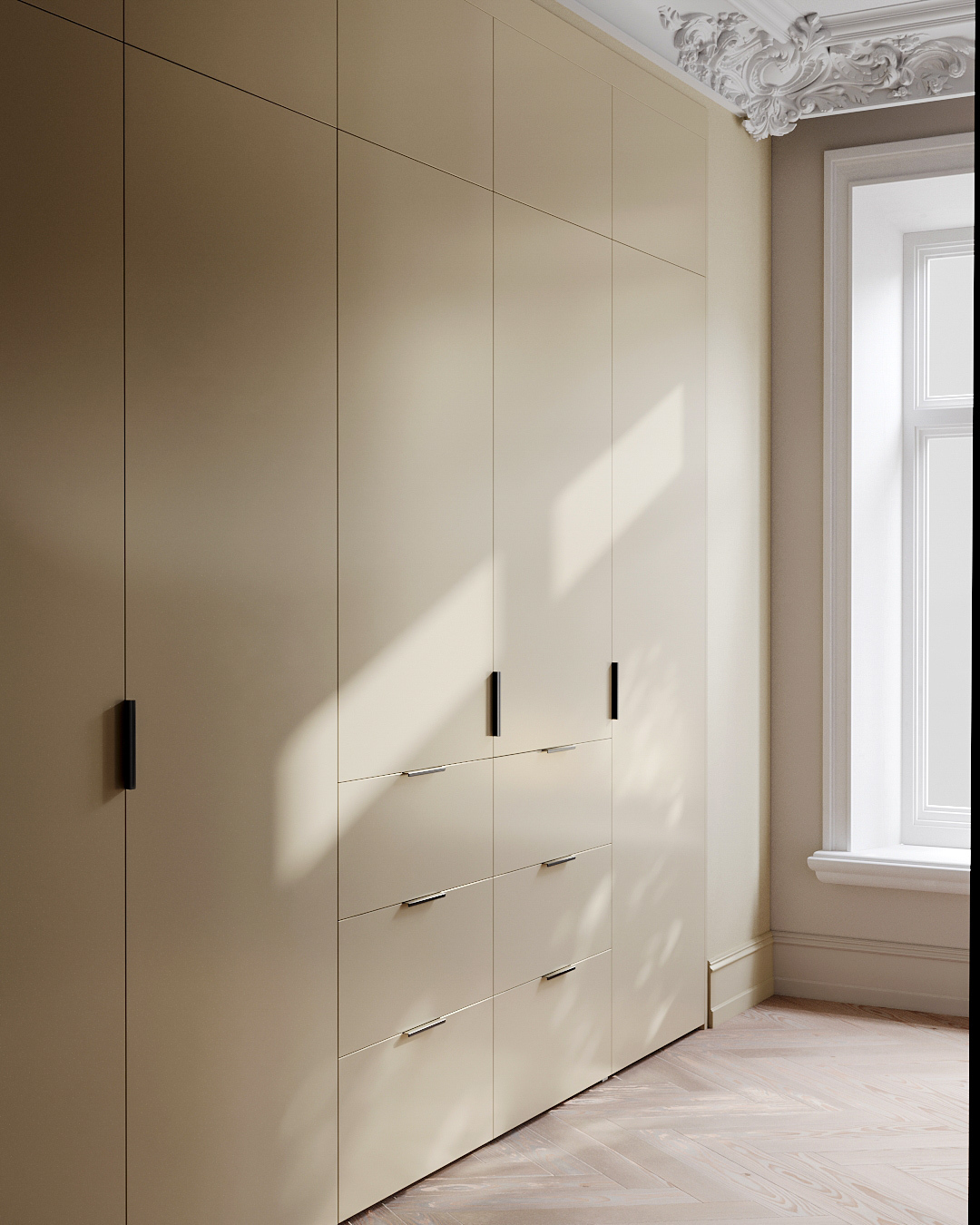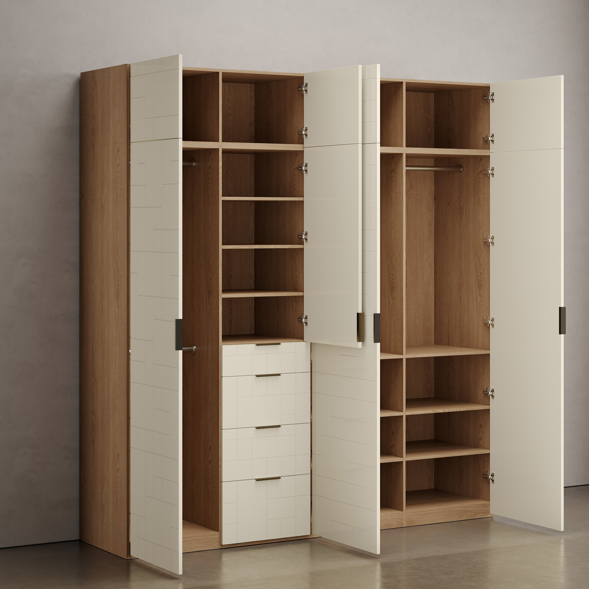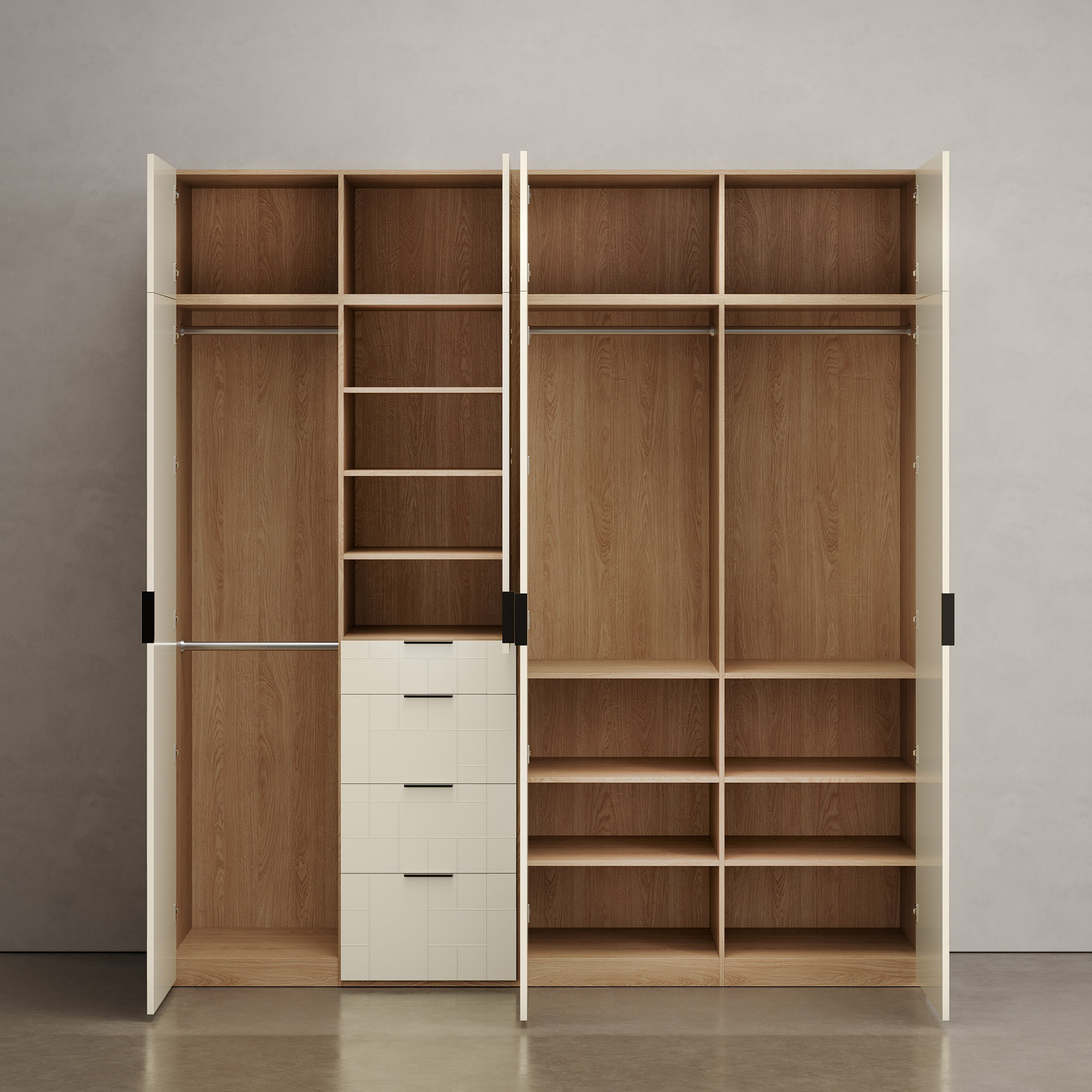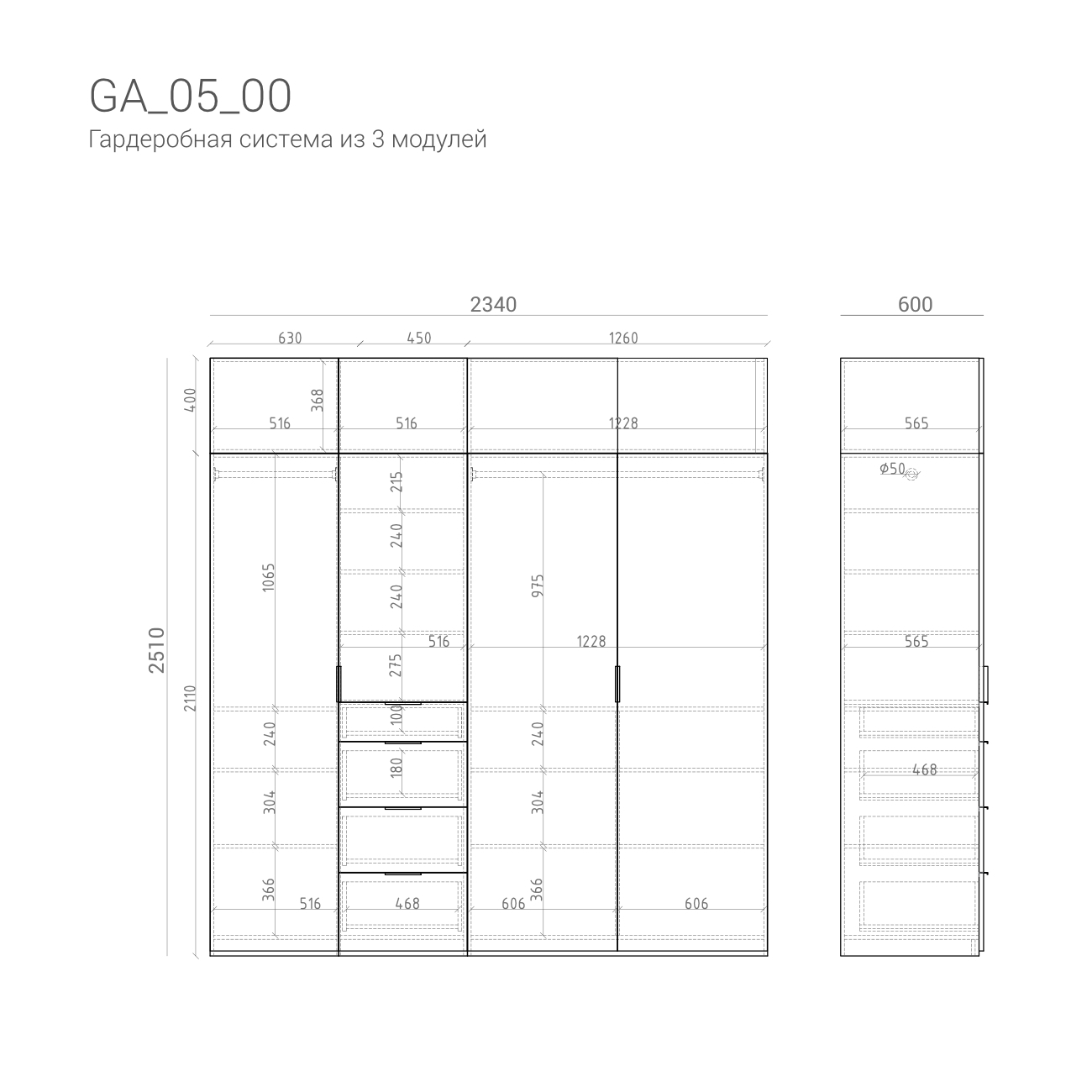 – Необходимая высота гардеробной системы достигается с помощью модулей-