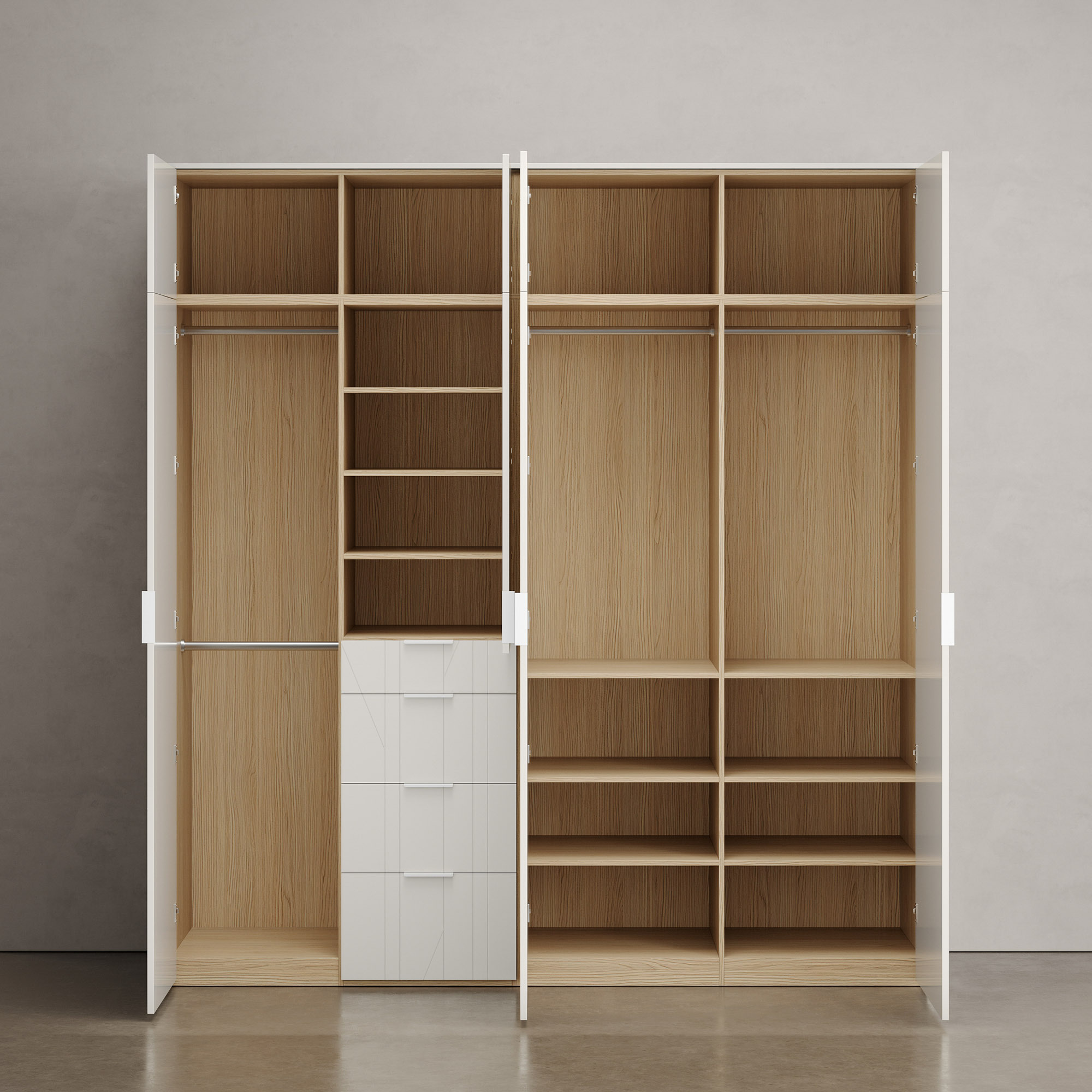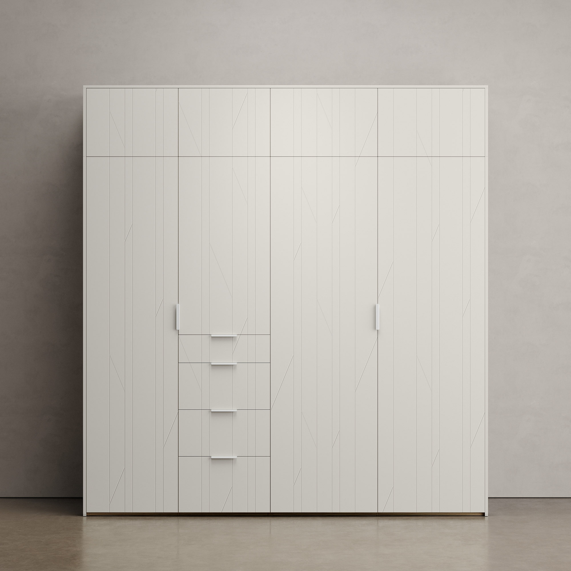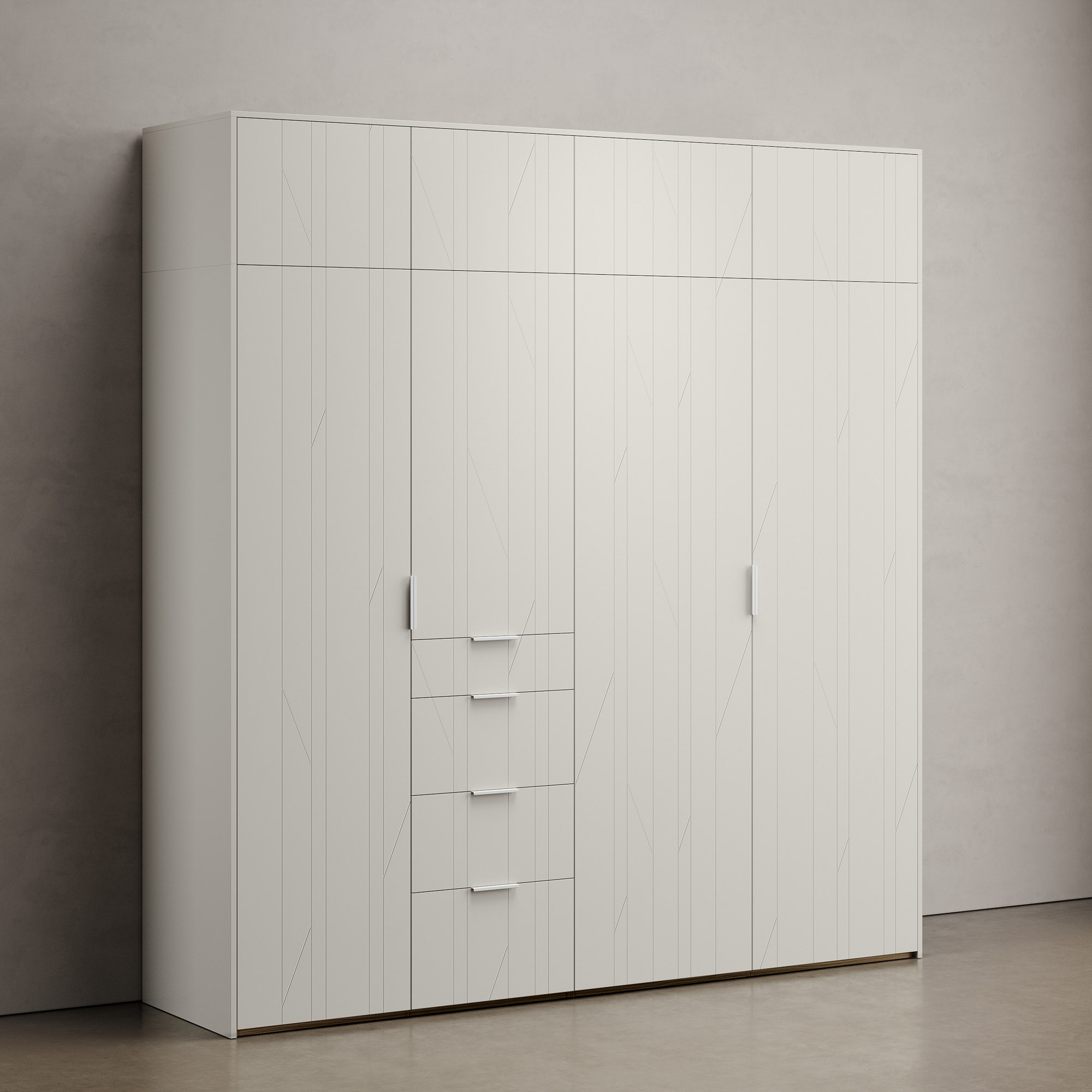 Модульная гардеробная система GARDA — стильное и функциональное решение для вашего дома. Продуманная конструкция изделия позволит систематизировать гардероб и навести порядок в доме. Шкаф состоит из отдельных модулей, которые легко комбинировать между собой — выбирайте нужное наполнение, размеры и меняйте их расположение в зависимости от потребностей. Лаконичный дизайн, обширная цветовая палитра и фасады, декорированные гравировкой, помогут изделию достойно вписаться в современный интерьер, не привлекая к себе лишнего внимания. Высокое качество и удобство пользования сделают шкаф незаменимым элементом вашего дома. Особенности коллекции: – Большой размерный ряд модулей, разнообразное внутреннее наполнение секций (полки, штанги, внутренние и внешние выдвижные ящики); – Необходимая высота гардеробной системы достигается с помощью модулей- антресолей, оснащенных функцией Push-to-Open (открывание с помощью нажатия); – По запросу возможно изменение стандартных модульных размеров (для получения нужной величины гардеробной системы); – Корпус модулей и внутреннее наполнение выполнены из ЛДСП EGGER c текстурой дерева (3 цвета) или без текстуры (2 цвета); – Фасады выполнены из МДФ и доступны в отделке эмалью (30 цветов) с гравировкой или без нее, а так же в отделке натуральным шпоном дуба в тонировке; – Декоративные Крышка и Боковые стенки выполнены из МДФ в той же отделке, что и фасады. Такие декоративные детали могут применяться для обрамления изделия (всех сторон либо частично, в зависимости от задачи); – Все фасады регулируются в трех плоскостях для выравнивания узора гравировки; – Удлиненные ручки-профили выполнены из алюминия и доступны в семи отделках; – Немецкие петли и бесшумные направляющие скрытого монтажа с доводчиками от Hettich; – Предусмотрено крепление к стене.