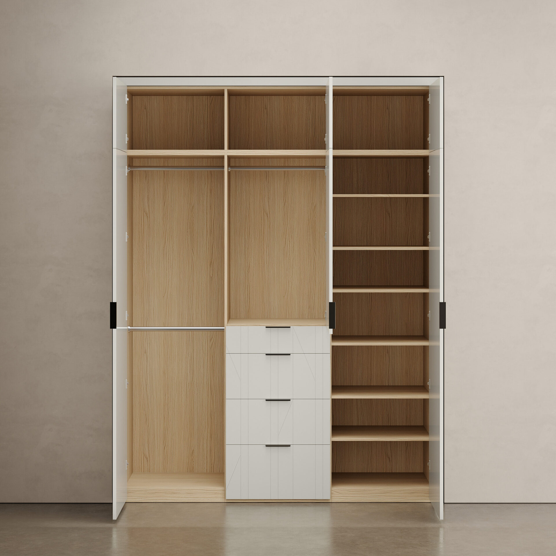 Модульная гардеробная система GARDA с декоративными доборами— стильное и функциональное решение для ниши. Продуманная конструкция изделия позволит систематизировать гардероб и навести порядок в доме. Шкаф состоит из отдельных модулей, которые легко комбинировать между собой — выбирайте нужное наполнение, размеры и меняйте их расположение в зависимости от потребностей. Лаконичный дизайн, обширная цветовая палитра и фасады, декорированные гравировкой, помогут изделию достойно вписаться в современный интерьер, не привлекая к себе лишнего внимания. Высокое качество и удобство пользования сделают шкаф незаменимым элементом вашего дома. Особенности коллекции: – Большой размерный ряд модулей, разнообразное внутреннее наполнение секций (полки, штанги, внутренние и внешние выдвижные ящики); – Необходимая высота гардеробной системы достигается с помощью модулей- антресолей, оснащенных функцией Push-to-Open (открывание с помощью нажатия); – По запросу возможно изменение стандартных модульных размеров (для получения нужной величины гардеробной системы); – Корпус модулей и внутреннее наполнение выполнены из ЛДСП EGGER c текстурой дерева (3 цвета) или без текстуры (2 цвета); – Фасады выполнены из МДФ и доступны в отделке эмалью (30 цветов) с гравировкой или без нее, а так же в отделке натуральным шпоном дуба в тонировке; – Декоративные доборы выполнены из МДФ в той же отделке, что и фасады. Такие декоративные детали применяются при установке изделия в нише или ограниченном пространстве (всех сторон либо частично, в зависимости от задачи); – Все фасады регулируются в трех плоскостях для выравнивания узора гравировки; – Удлиненные ручки-профили выполнены из алюминия и доступны в семи отделках; – Немецкие петли и бесшумные направляющие скрытого монтажа с доводчиками от Hettich; – Предусмотрено крепление к стене.