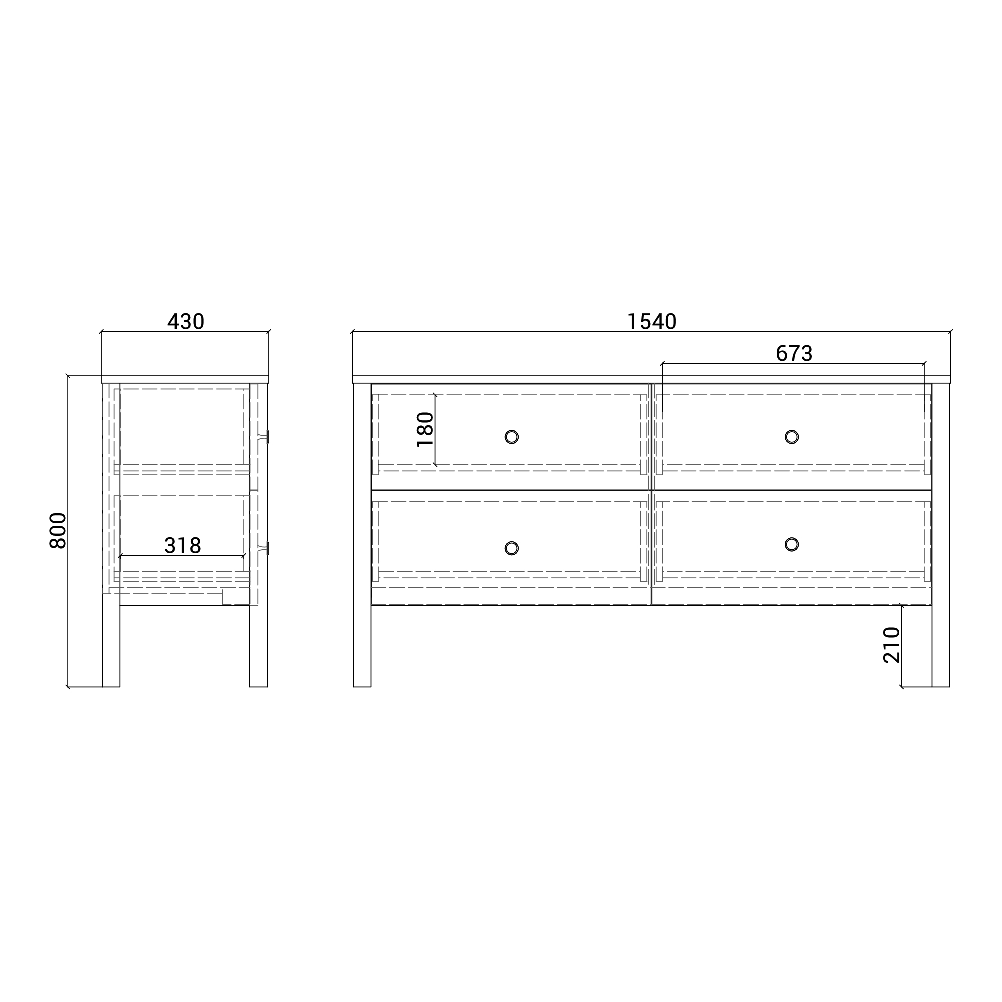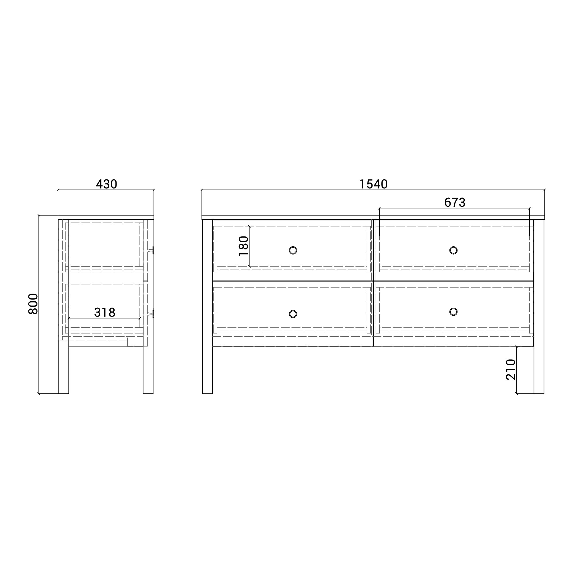 Четыре вместительных ящика создают универсальную систему для хранения одежды, аксессуаров и домашних мелочей. Усиленные каркасы выдерживают до 25 кг, а доводчики Hettich обеспечивают плавное и бесшумное закрывание.