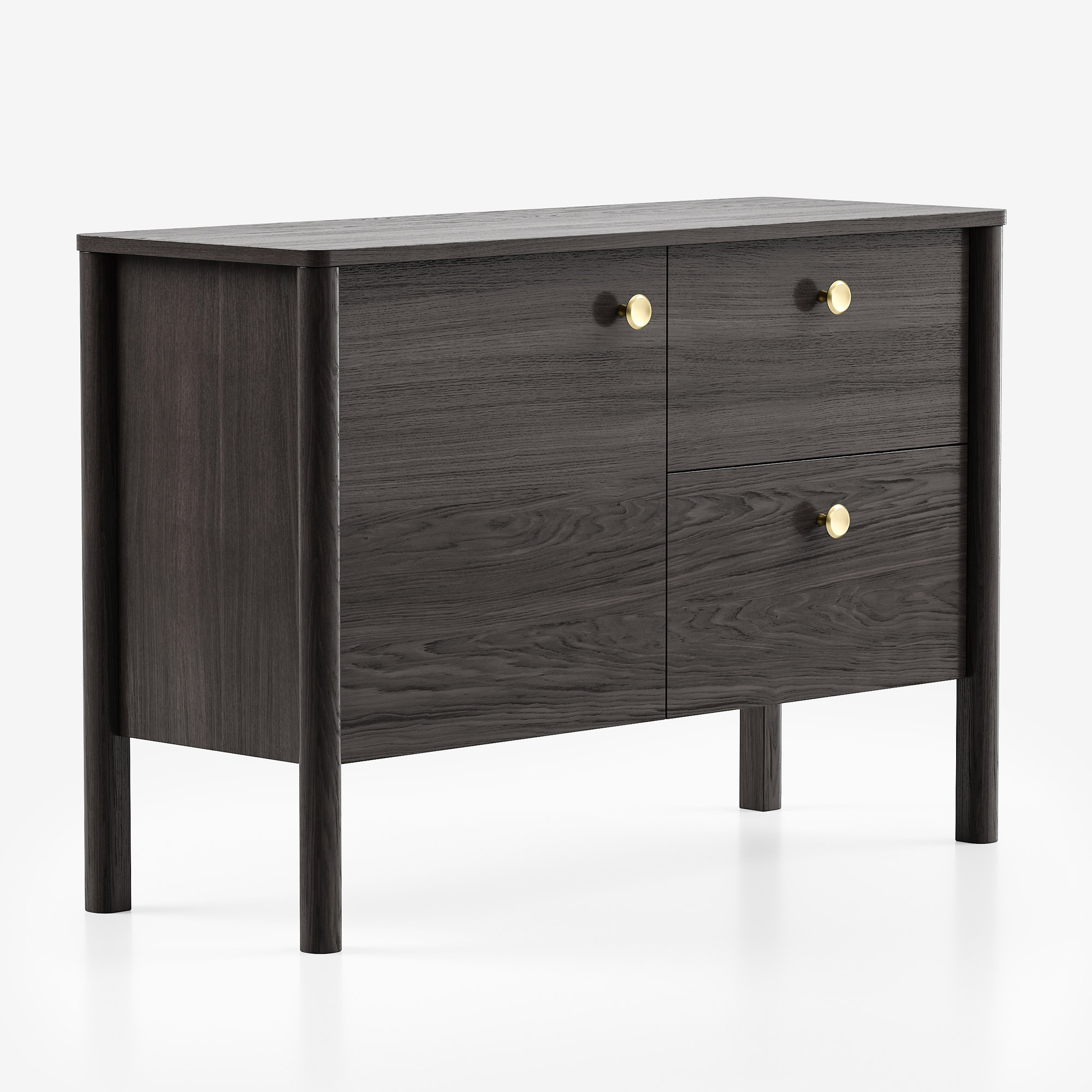Сочетание двух вместительных ящиков и секции с дверцами создает многоуровневую систему хранения. Разместите аксессуары в ящиках, а объемные вещи — на полках за дверцами. Плавные доводчики Hettich гарантируют бесшумную работу.