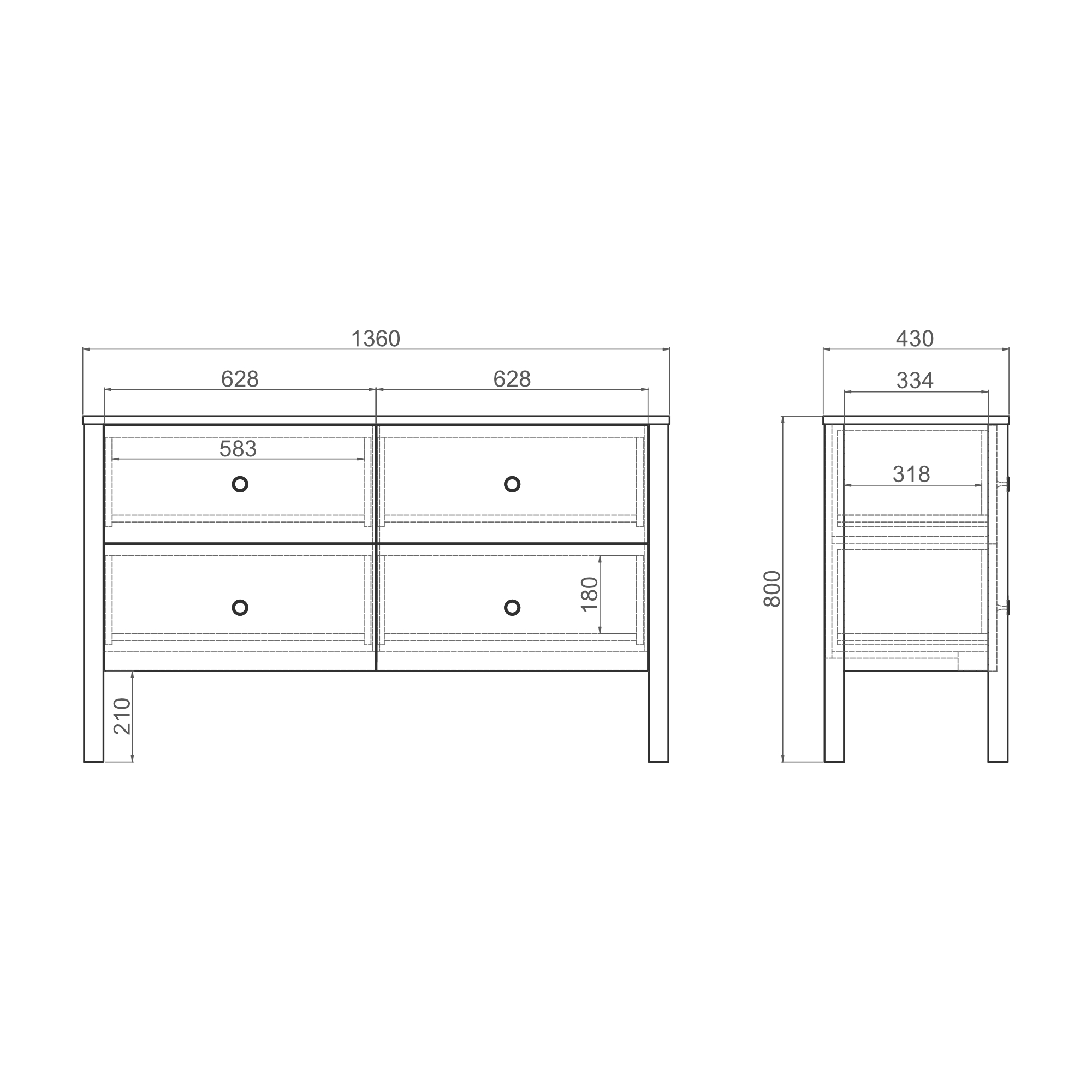 Настройте комод в соответствии с вашим вкусом и интерьером. Выбирайте исполнение из ассортимента отделок и цветов.