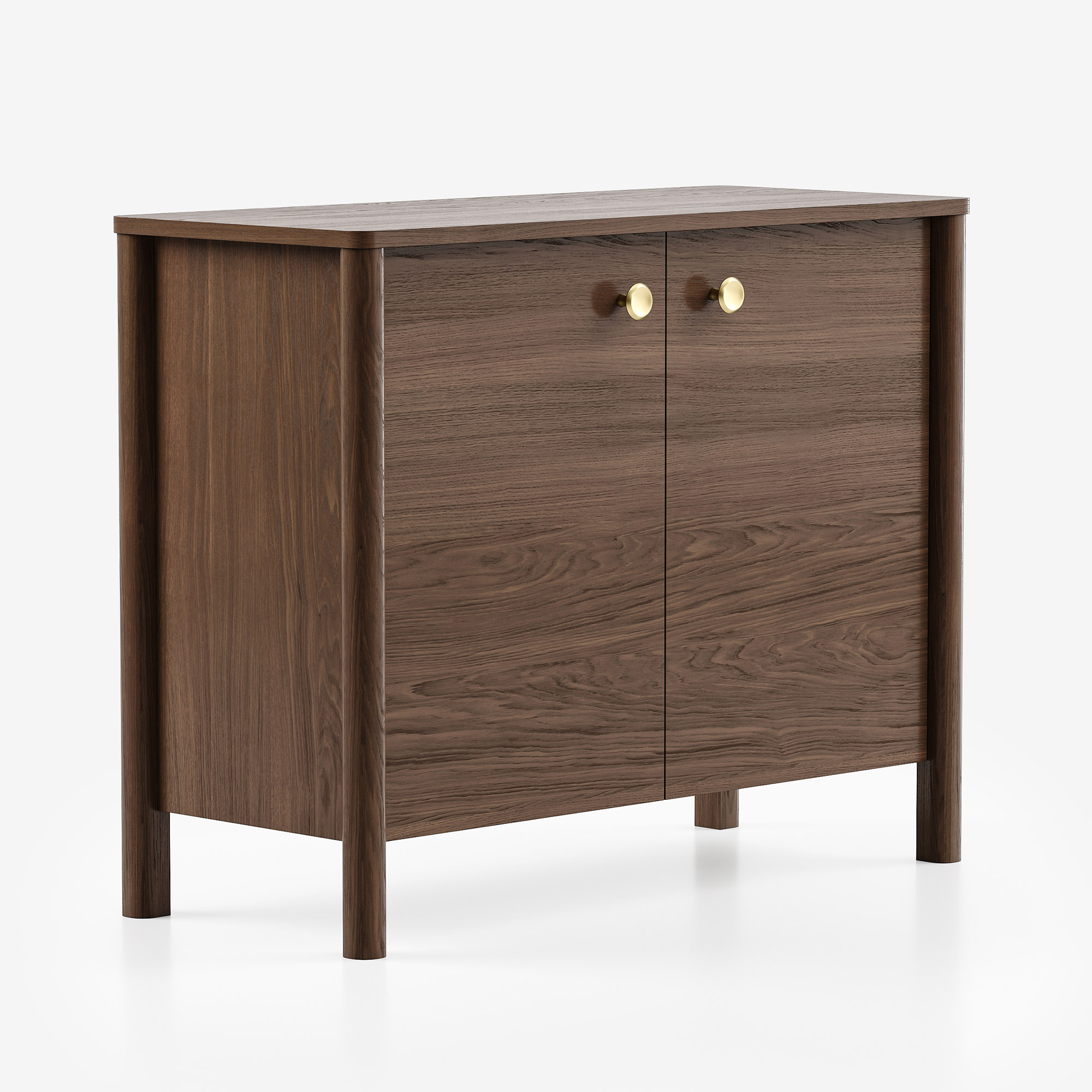 Детали: ручки в разных отделках, скругленные края столешницы.