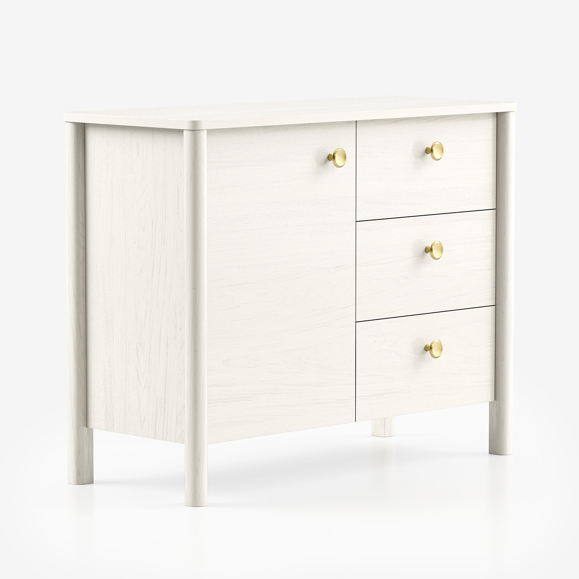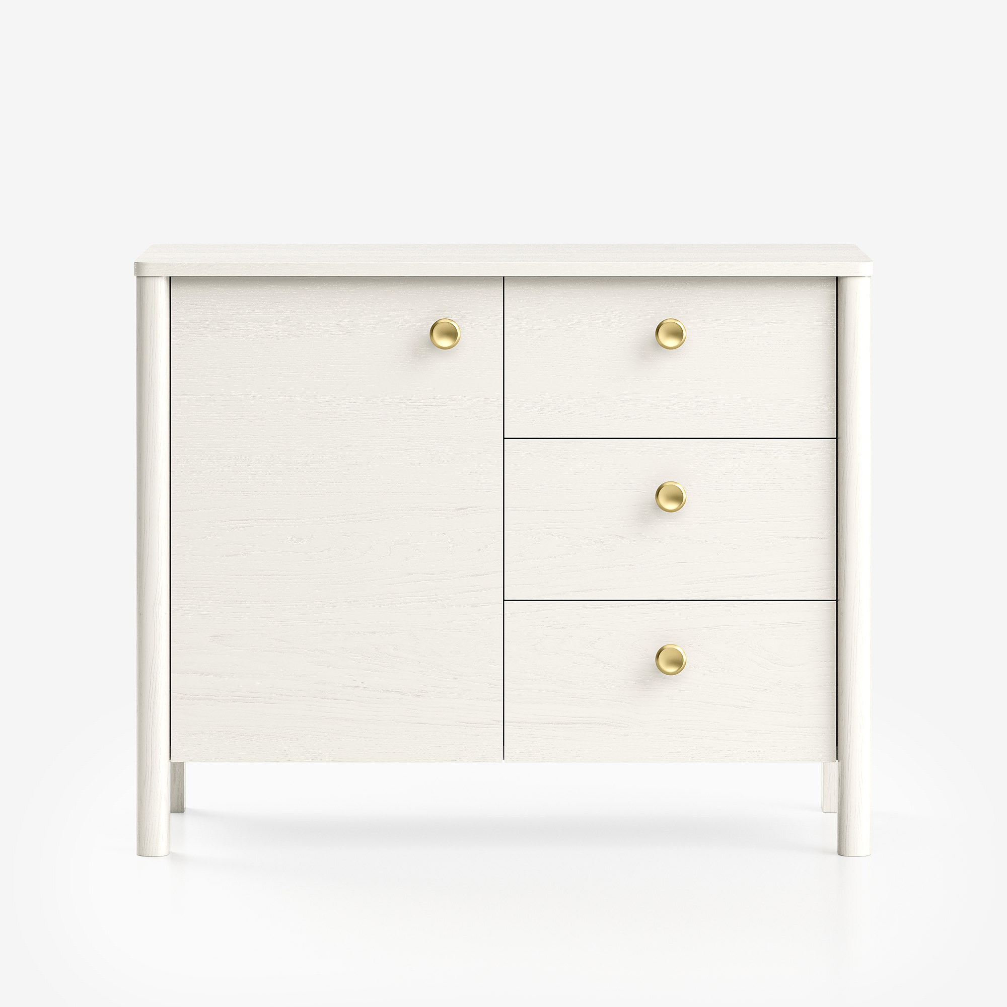 Сочетание трех вместительных ящиков и секции с дверцами создает многоуровневую систему хранения. Разместите аксессуары в ящиках, а объемные вещи — на полках за дверцами. Плавные доводчики Hettich гарантируют бесшумную работу.